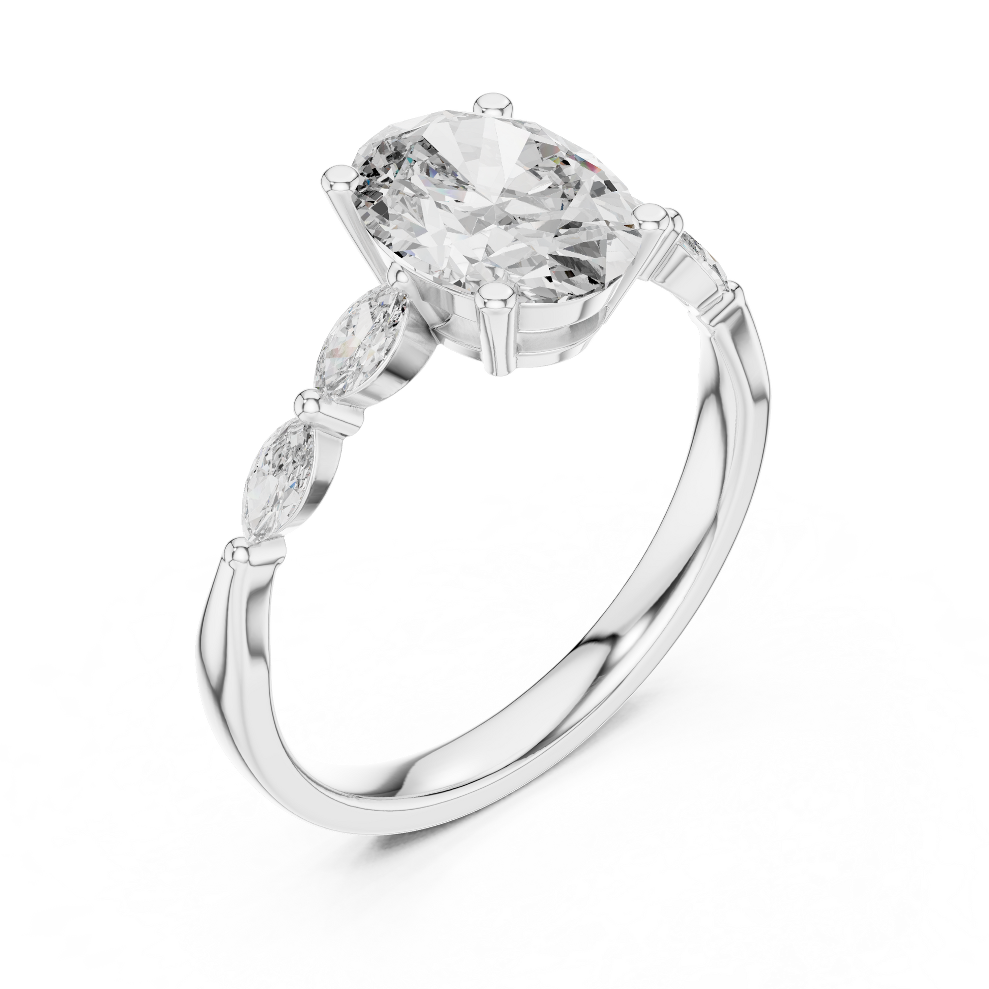 1.00Ct Exclusive Oval Engagement Ring – Marquise Side Stone Features – Designer Luxury Bridal Piece