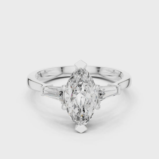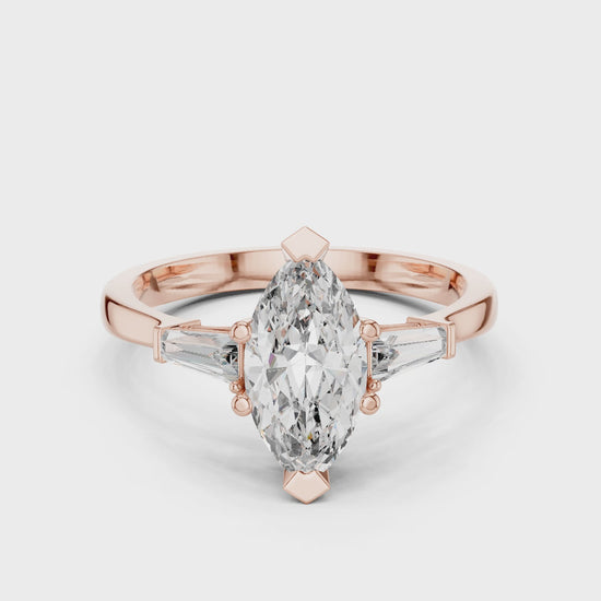 ✧ Ring Type: 1.00CT Pear Cut Ring With Trillion Side Diamonds – Three Stone Ring