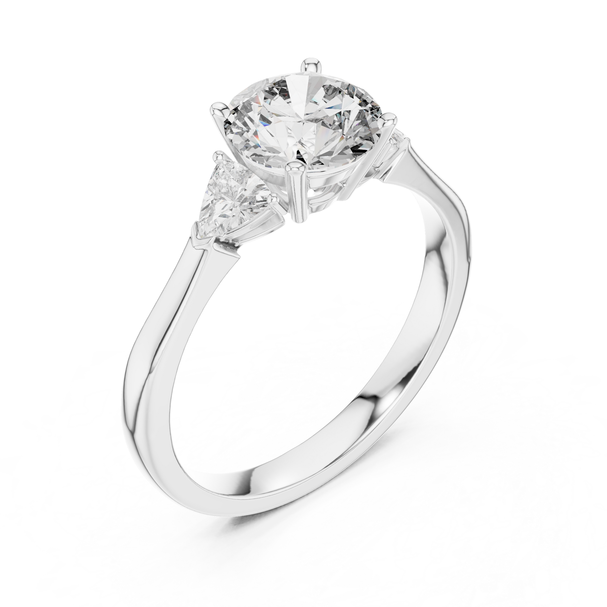 ✧ Ring Type: 1.00CT Round Cut Ring With Trillion Side Diamonds – Three Stone Ring