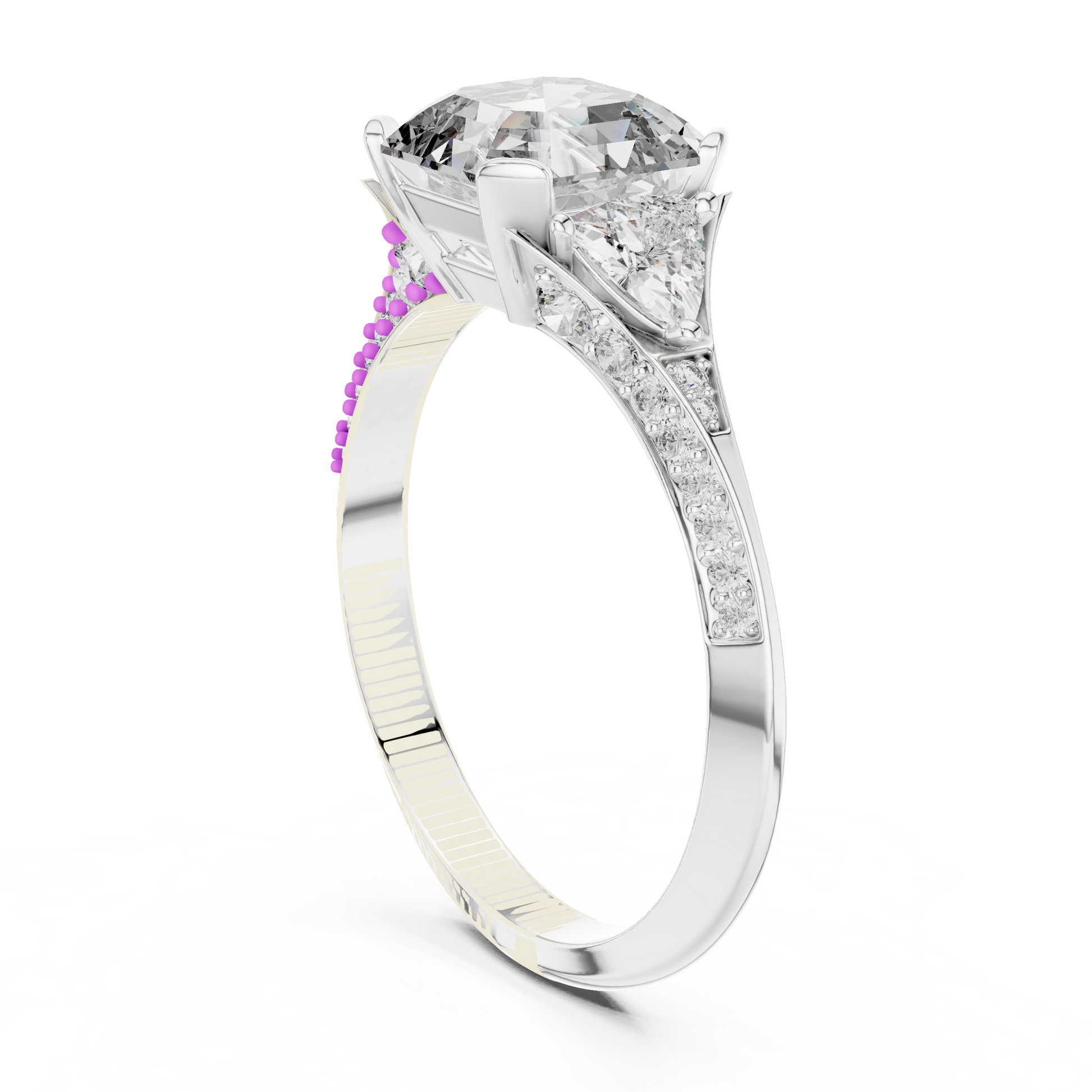 1.20Ct Contemporary Cushion Ring | Sparkling Diamond Shank | Timeless Bridal Jewelry - Trillion Side Sparkle