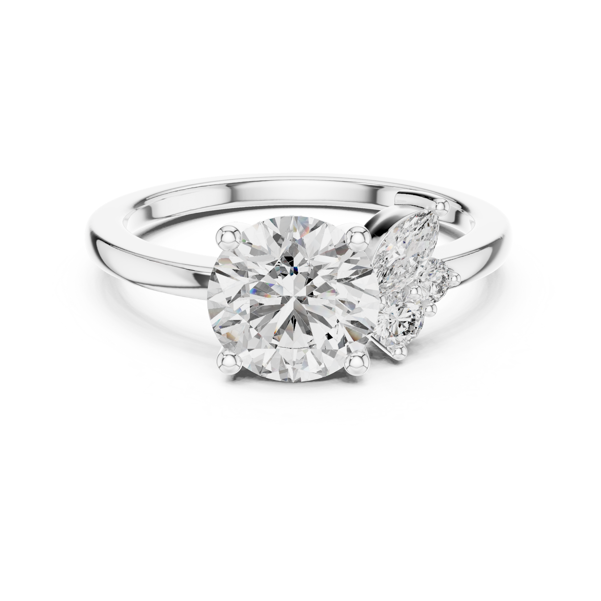✧ Ring Type: 1.50Ct Round Brilliant Cut with Marquise Side Diamond Ring