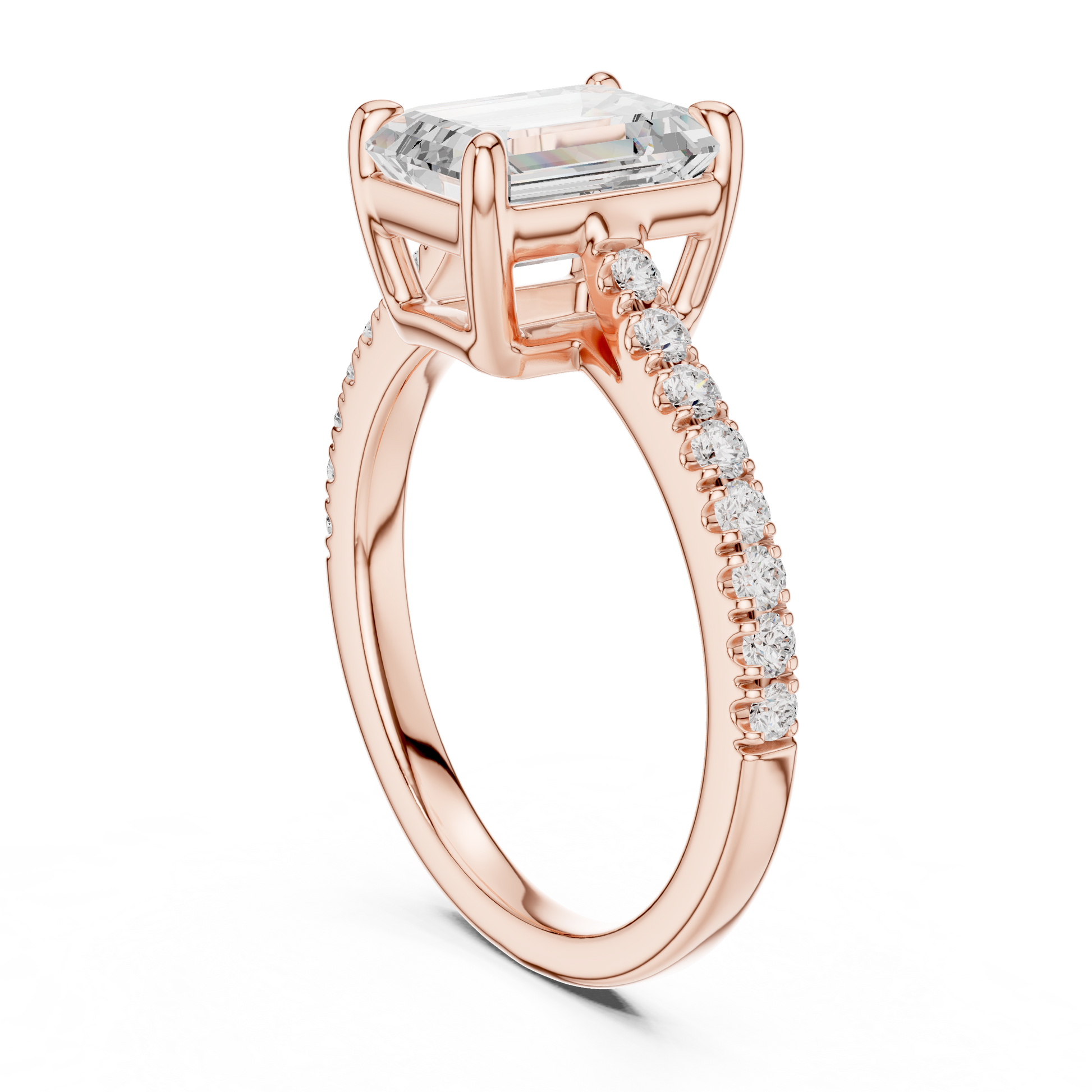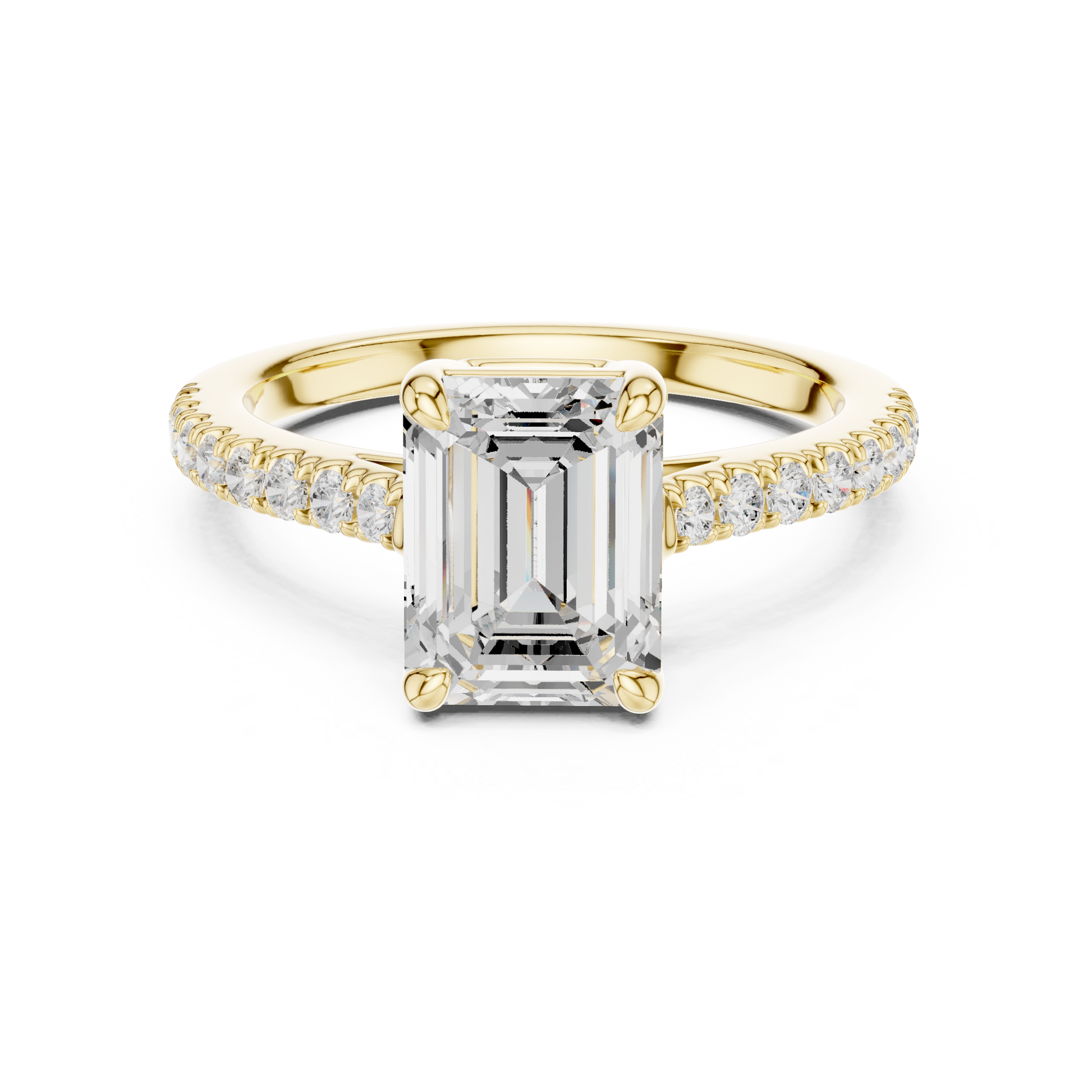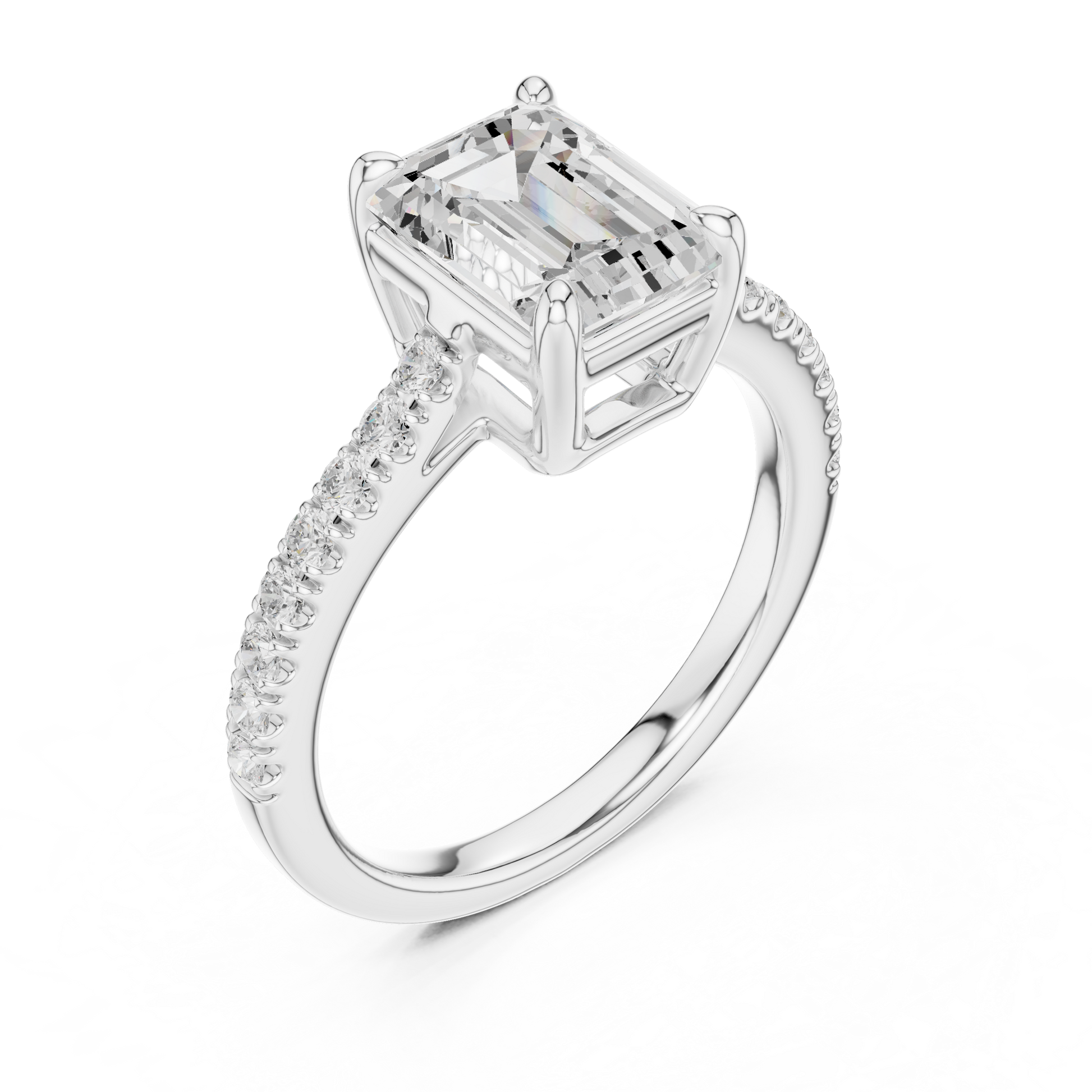✧ Ring Type: 2.00 Ct Emerald Cut Solitaire Engagement Ring — Pave Diamond Band
