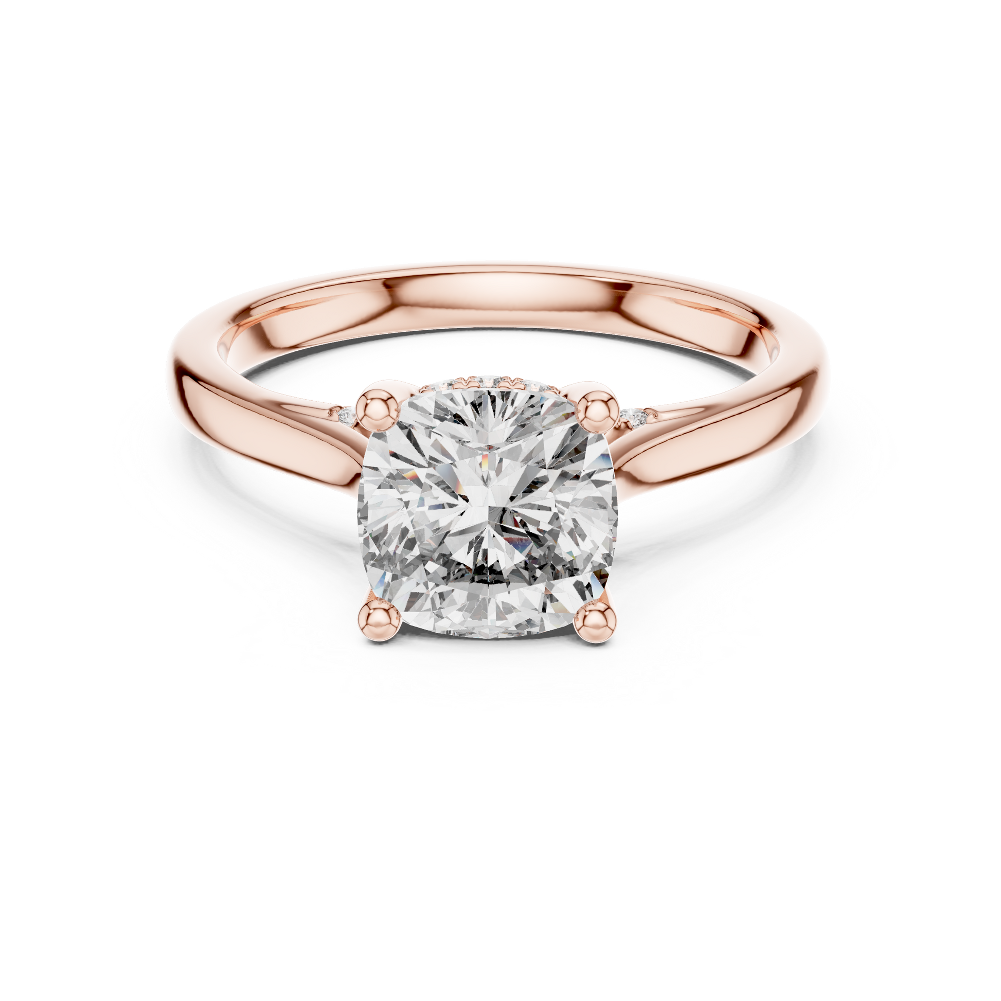Capture the moment forever with a ring that speaks the language of love. This exquisite Cushion Cut Solitaire is the definition of timeless elegance. Designed for the modern bride who appreciates classic beauty with a hidden touch of sparkle. Expertly handcrafted, this ring features a brilliant cushion-cut center stone held securely by four graceful prongs.