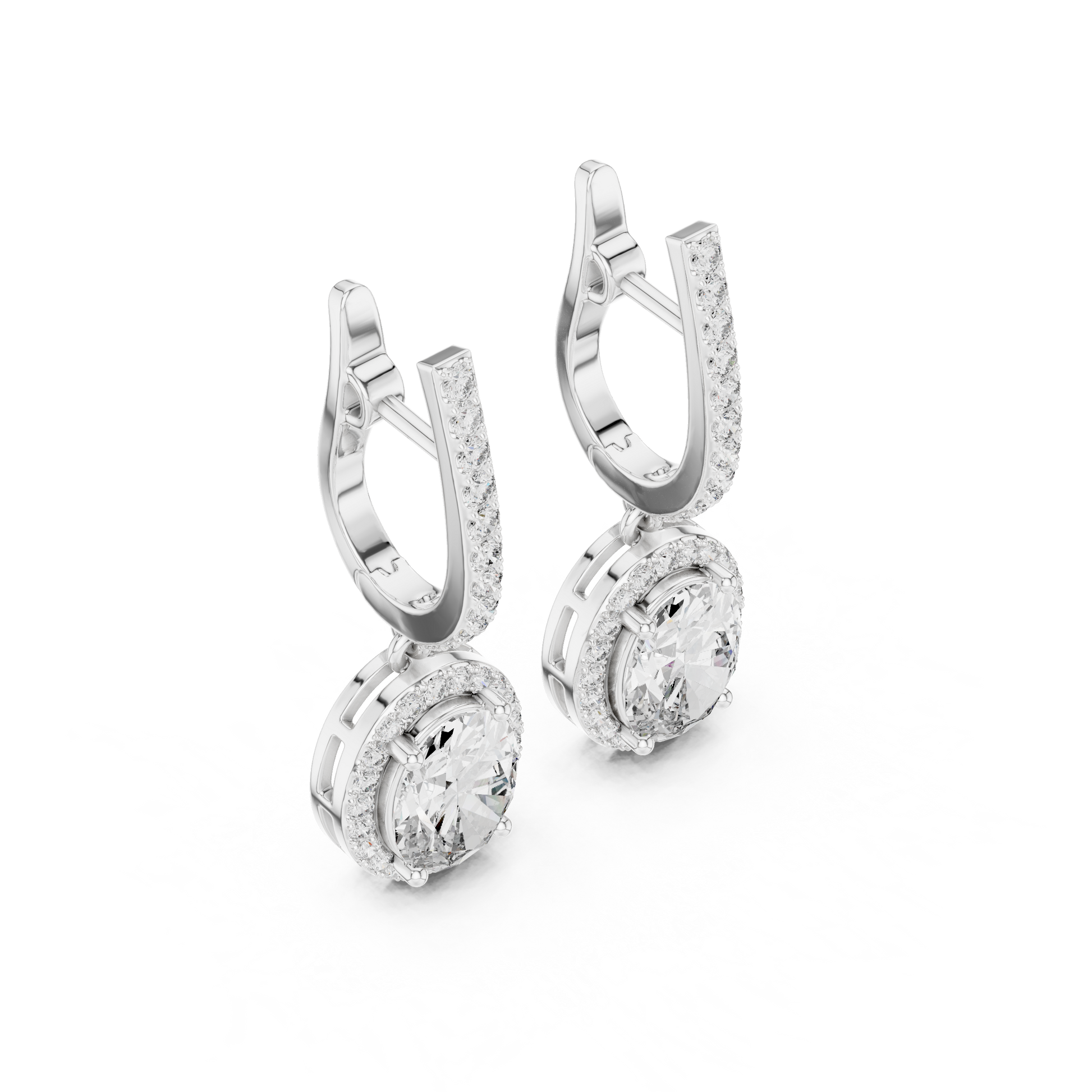 3.34Ct Delicate Oval Halo Drops • Diamond Gold Earrings • Romantic Bridal Jewelry • Elegant Everyday Wear