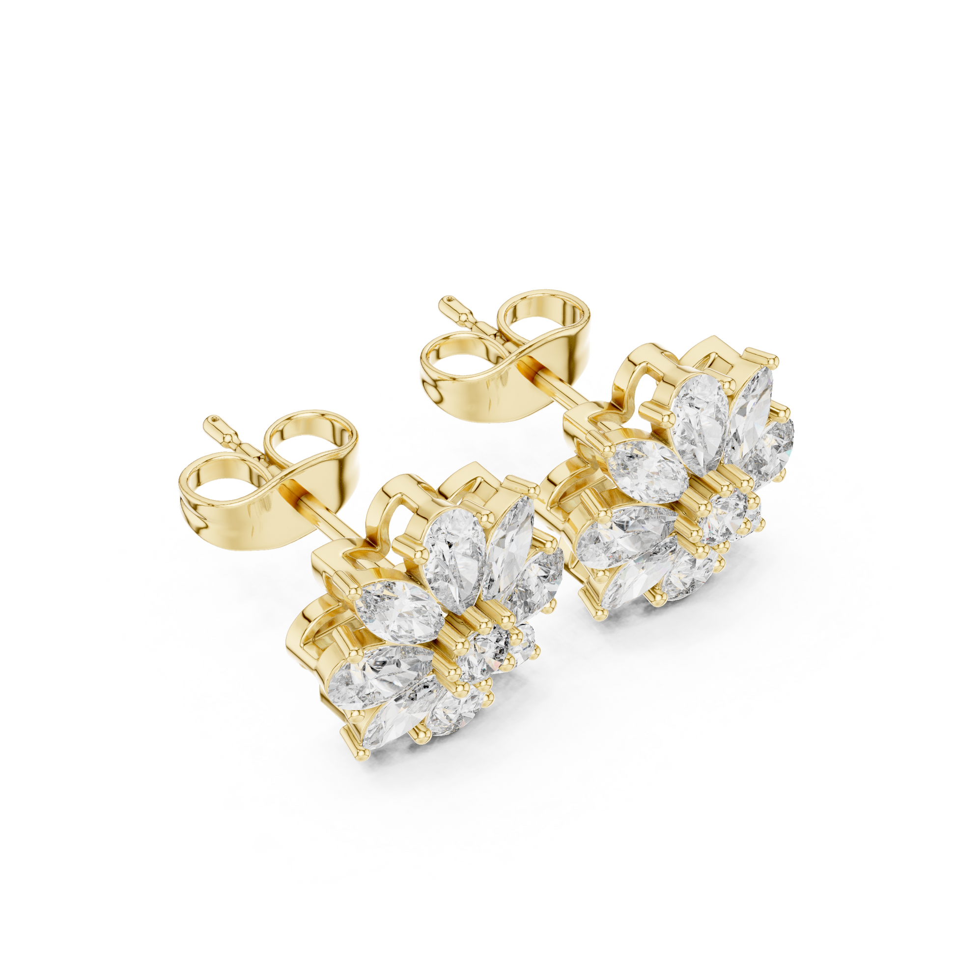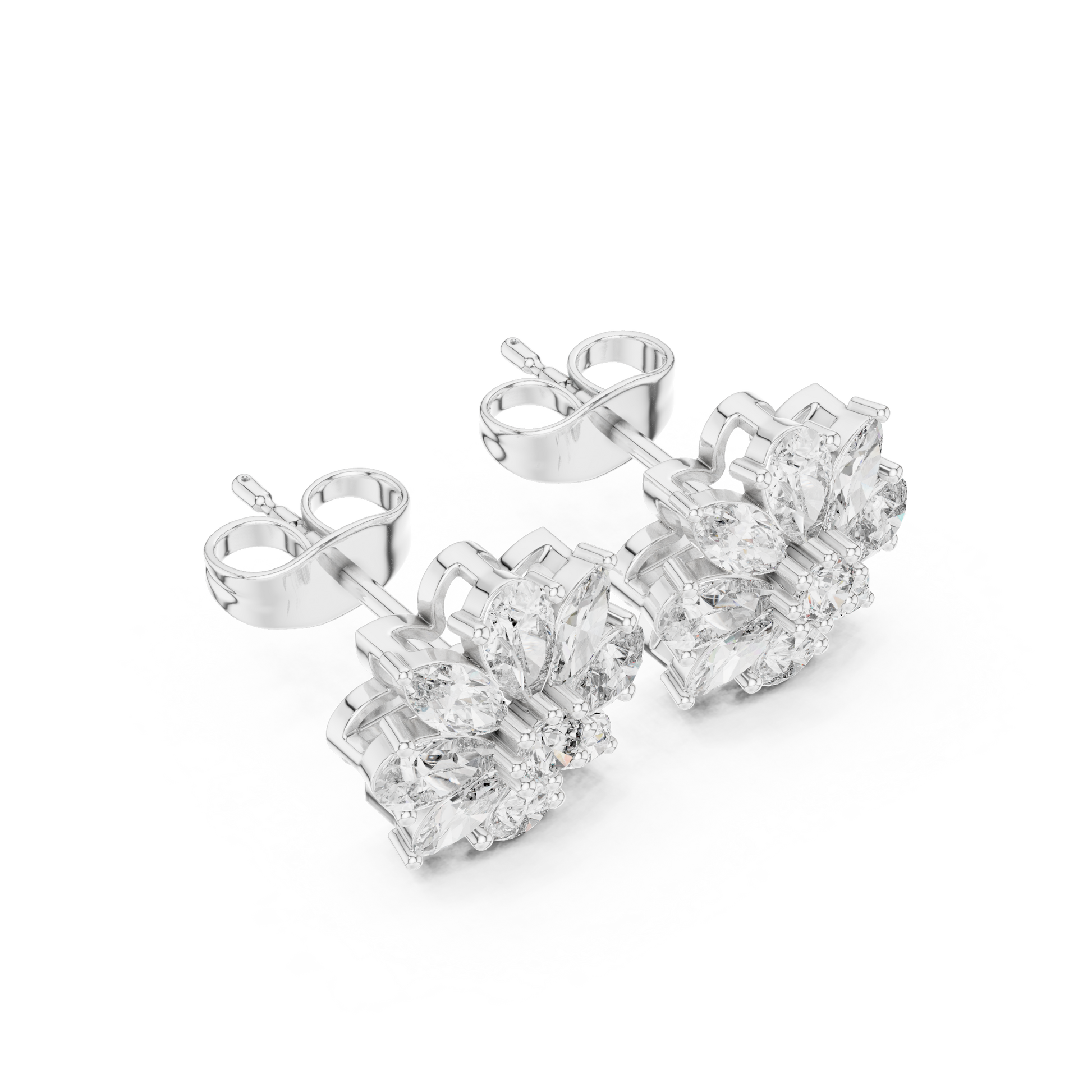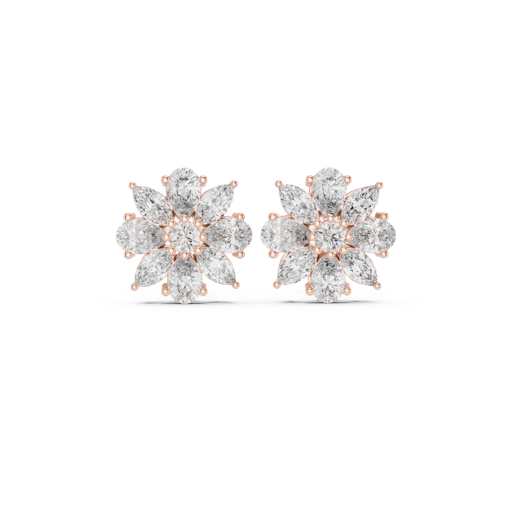 8-Petal Diamond Flower Studs – Marquise Stone Cluster Earrings –Anniversary Gift for Her