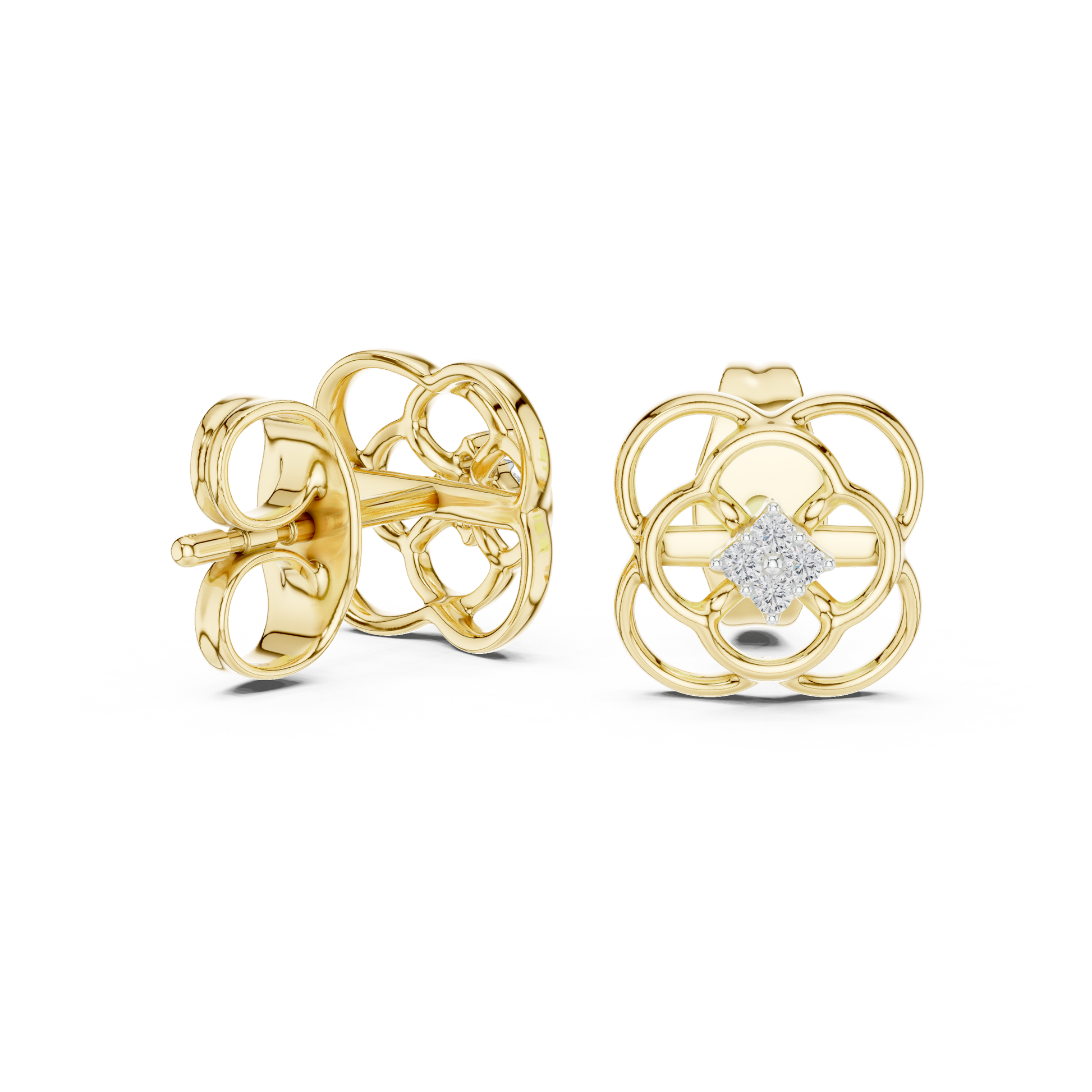 Quatrefoil Diamond Stud Earrings in Solid Gold | Minimal Floral Luxury Earrings | Bridal & Everyday Fine Jewelry