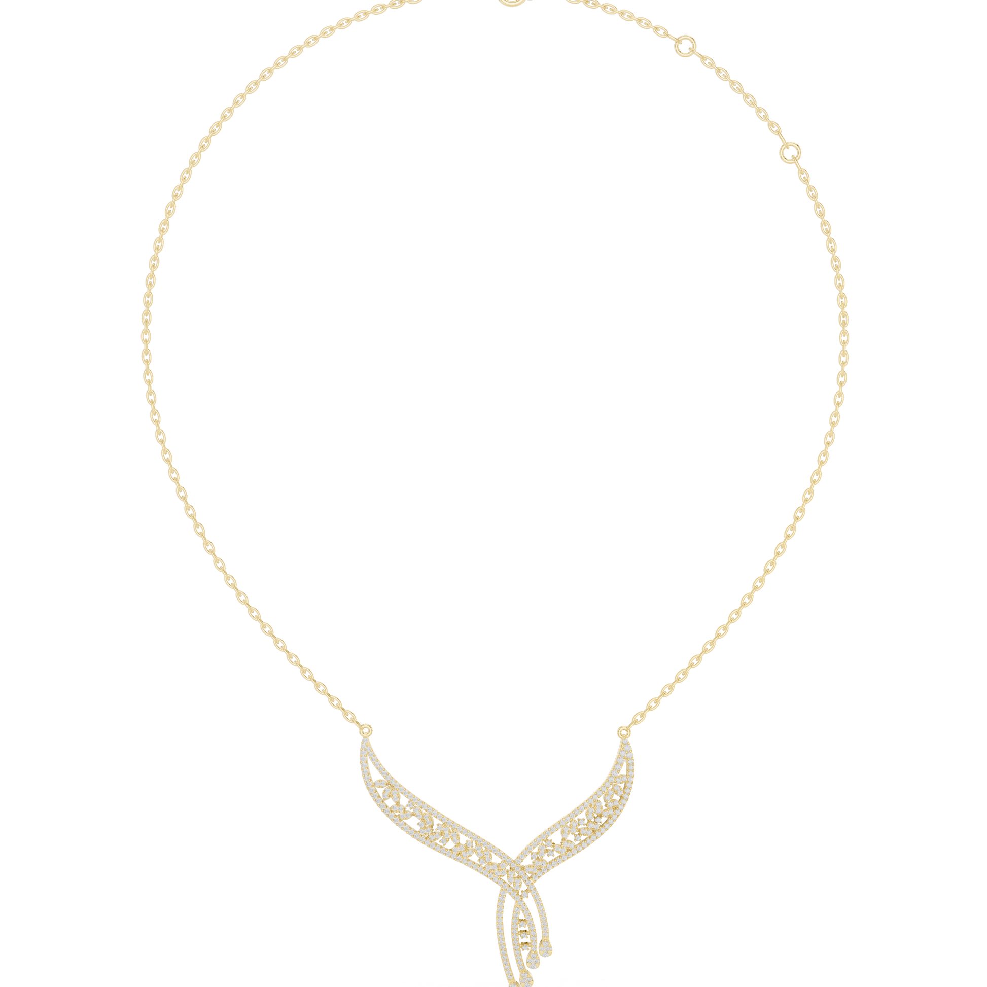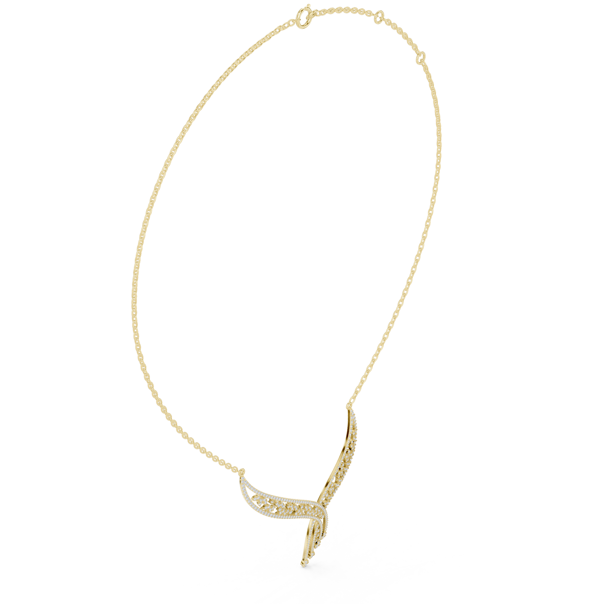 Abstract Wave Diamond Necklace - White Yellow Rose Silver Plated- High Fashion Minimal Jewelry Design