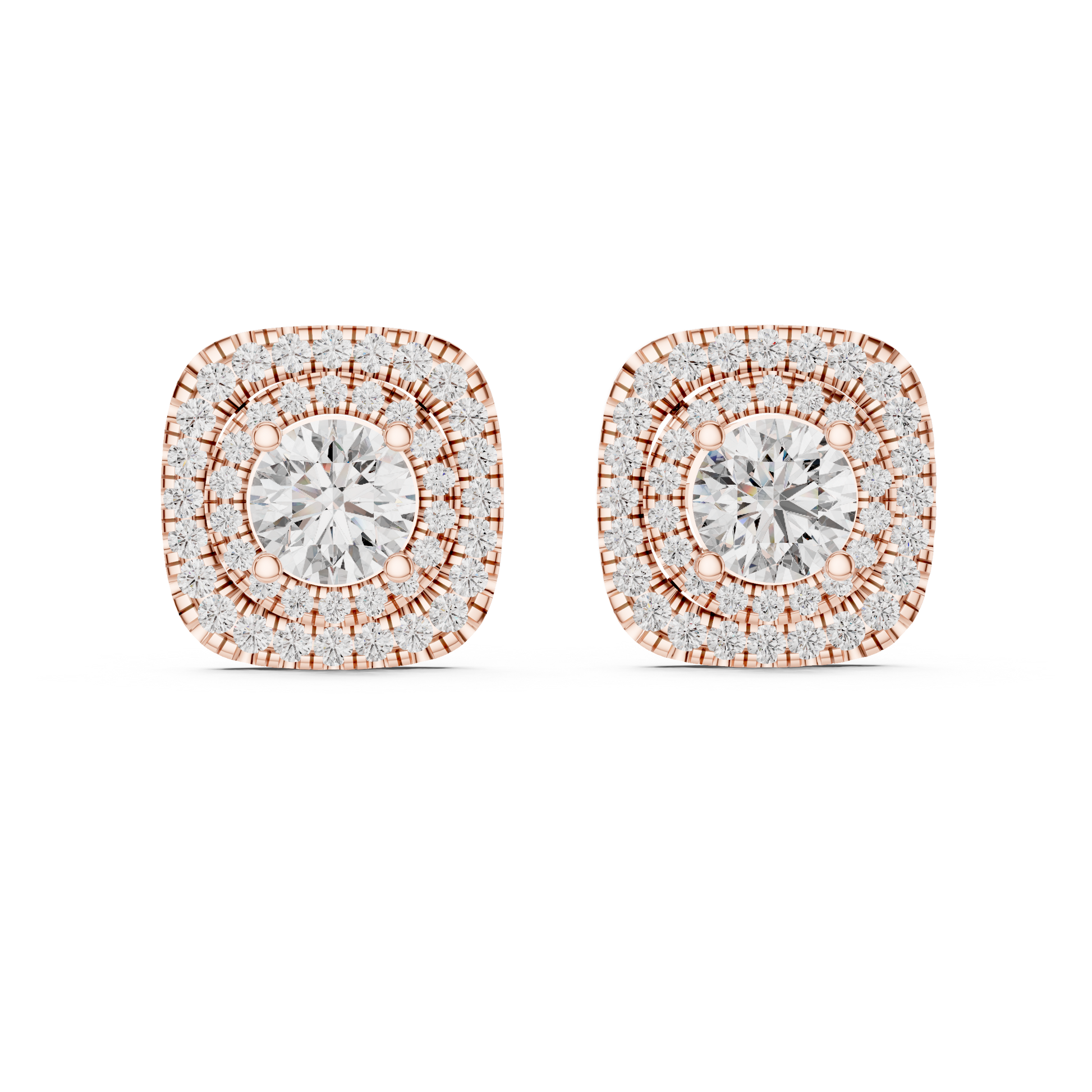| Product Style | Round Center Diamond with Double Halo Cushion Frame Studs |