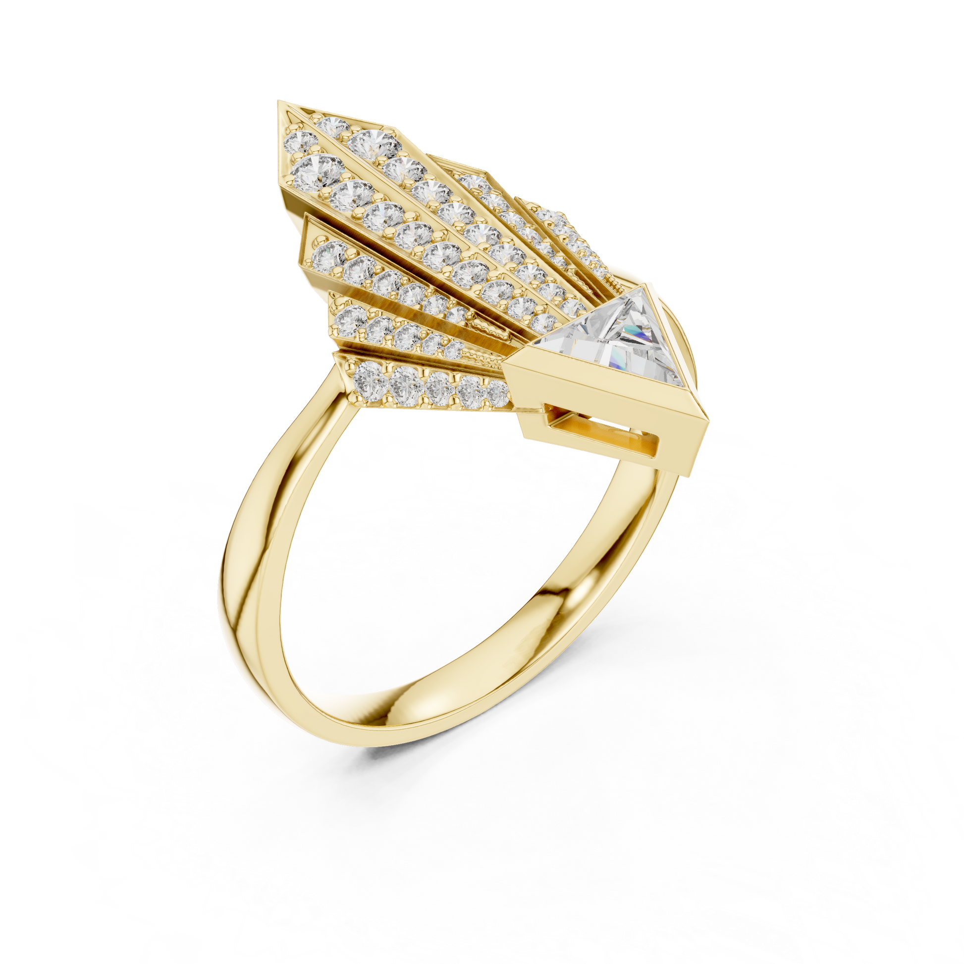Bold Geometric Royal Ring | Triangle Diamond High Jewelry | Yellow Rose White Gold Glamour