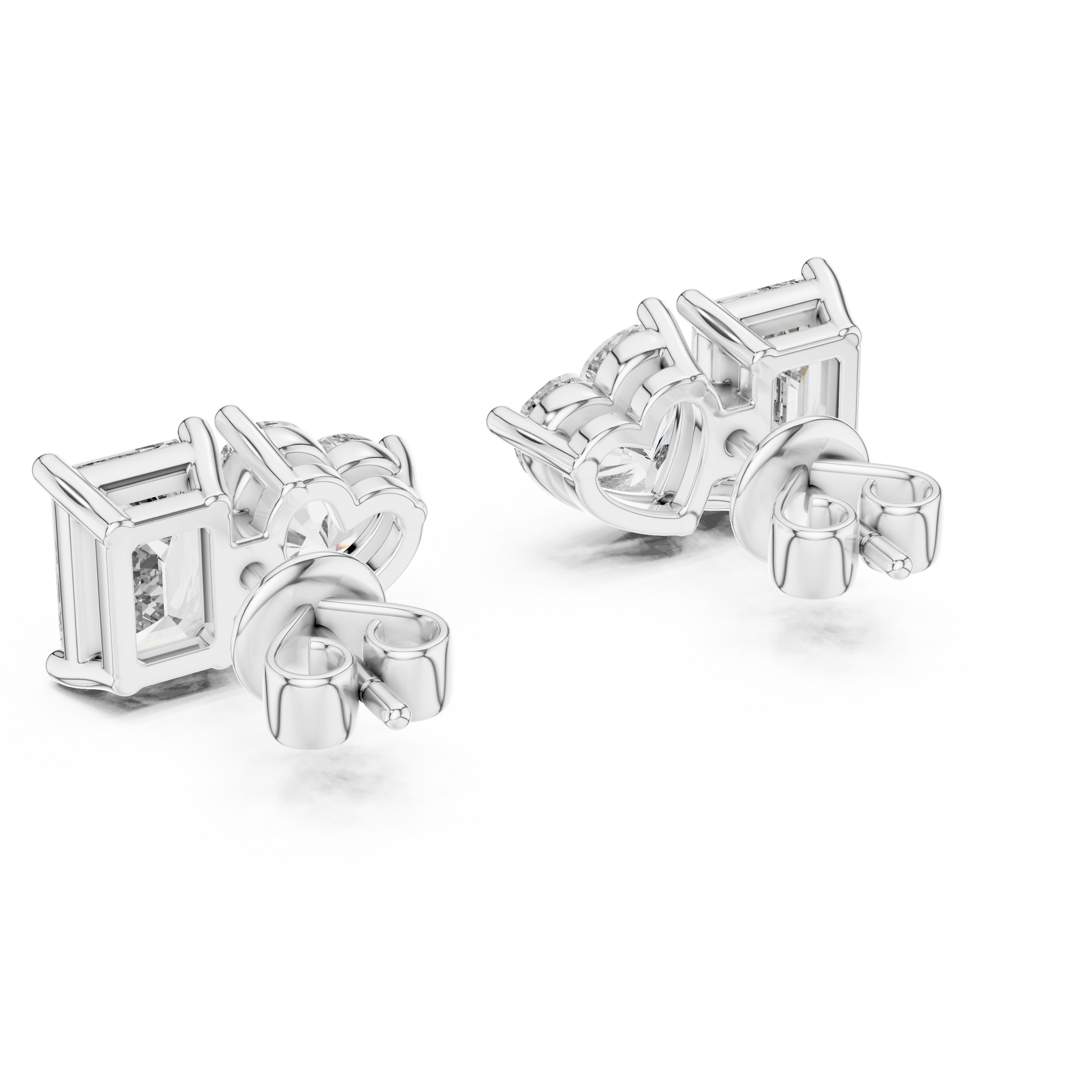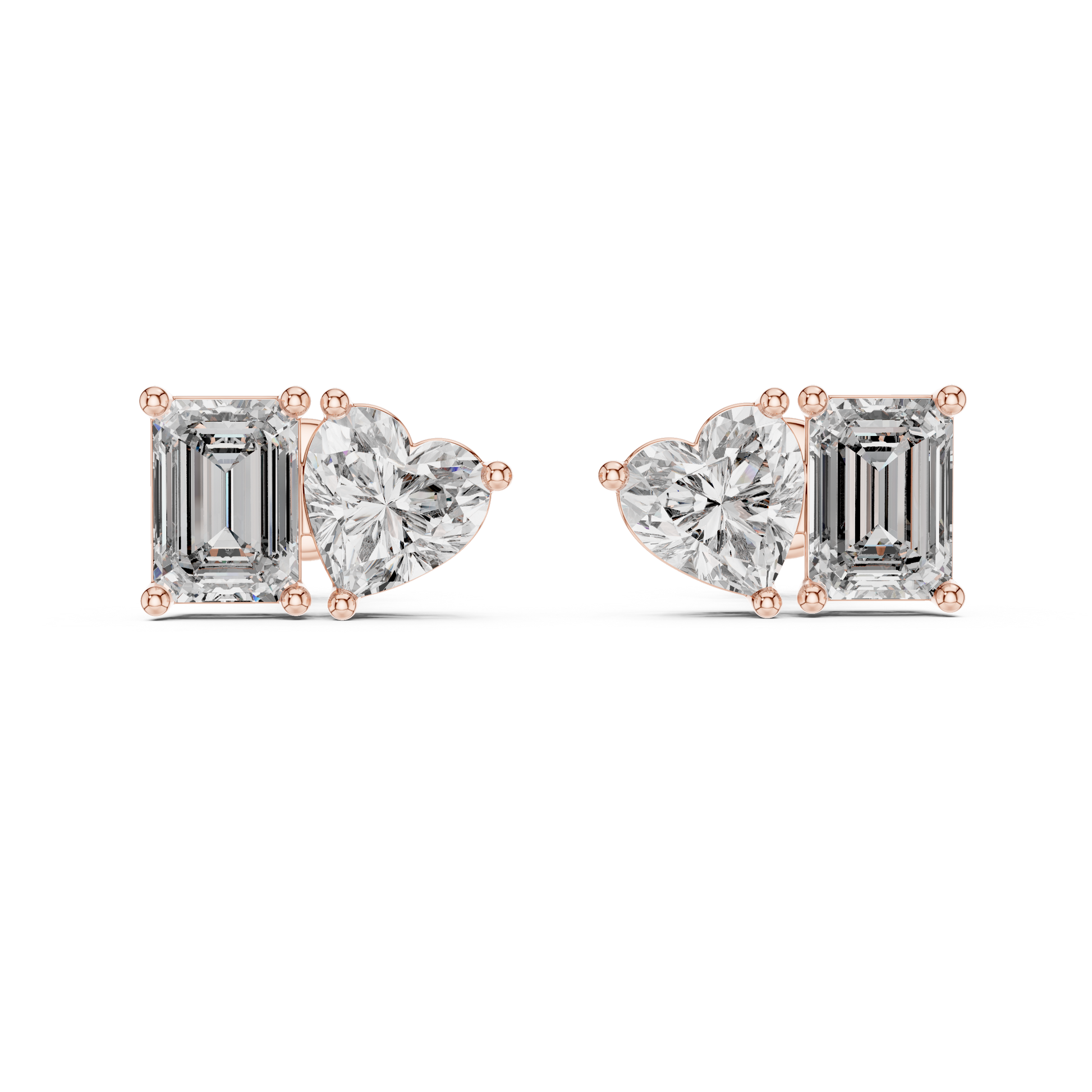 ✧ Concept: We have paired a romantic Heart cut with a sophisticated Emerald cut, creating a modern yet timeless look that stands out from standard studs.