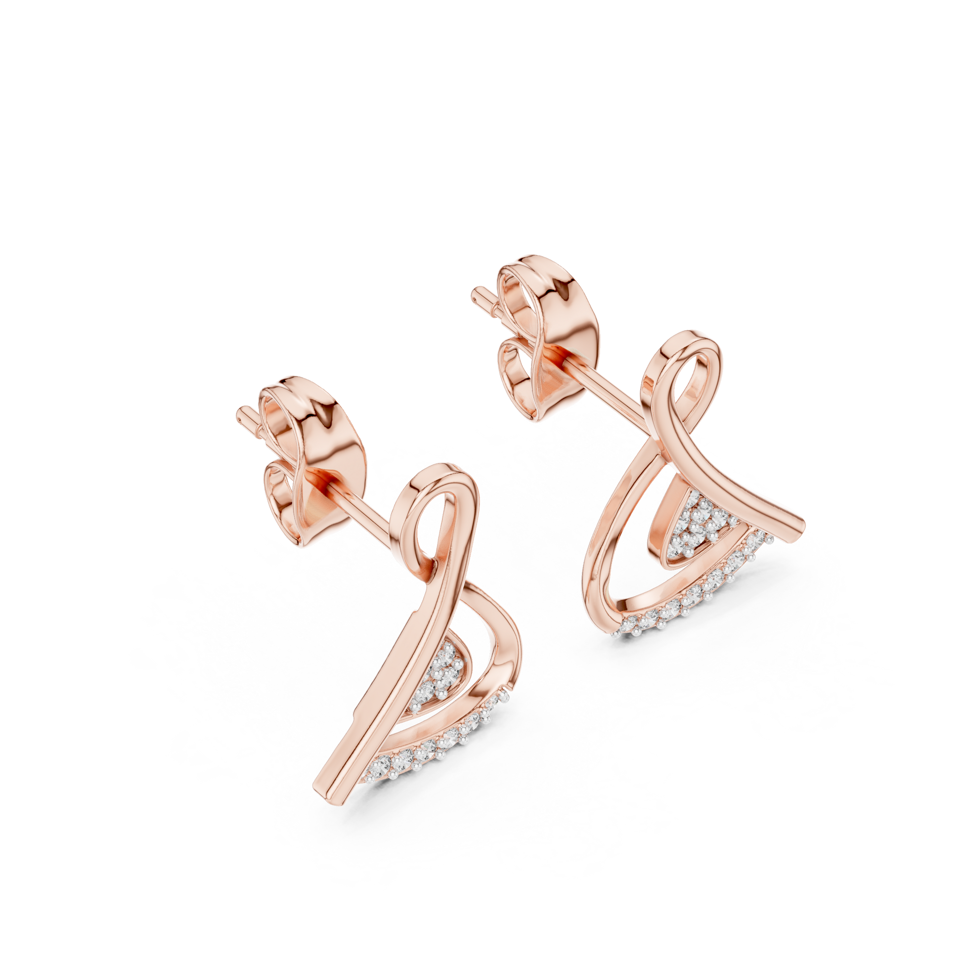 Redefine your everyday style with these Geometric Ribbon Loop Earrings. A masterclass in modern minimalism, this design features a fluid gold ribbon that twists elegantly to form a structured triangle at the base. The contrast is striking: the upper loop offers smooth, mirror-polished gold, while the lower triangle is densely packed with pave-set stones. It is the perfect balance of soft curves and sharp angles—designed for the woman who loves jewelry that is as dynamic and multifaceted as she is.