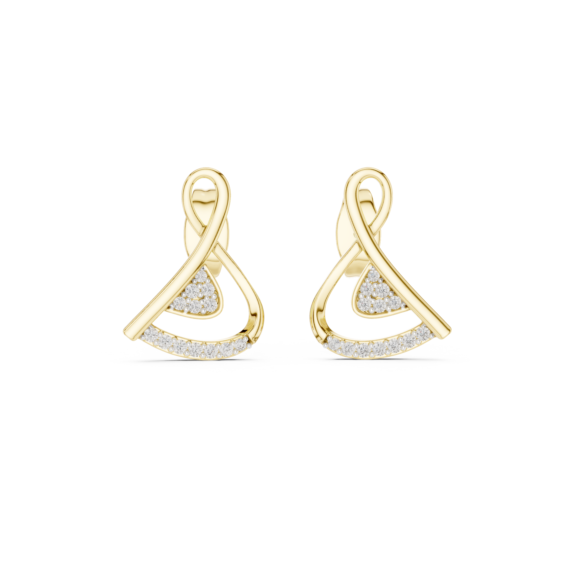 ✧ Earring Type: Geometric Ribbon Loop Diamond Earrings • Gold Triangle Cluster Studs • Modern Abstract Openwork Jewelry • Minimalist Daily Wear • Unique Gift for Her