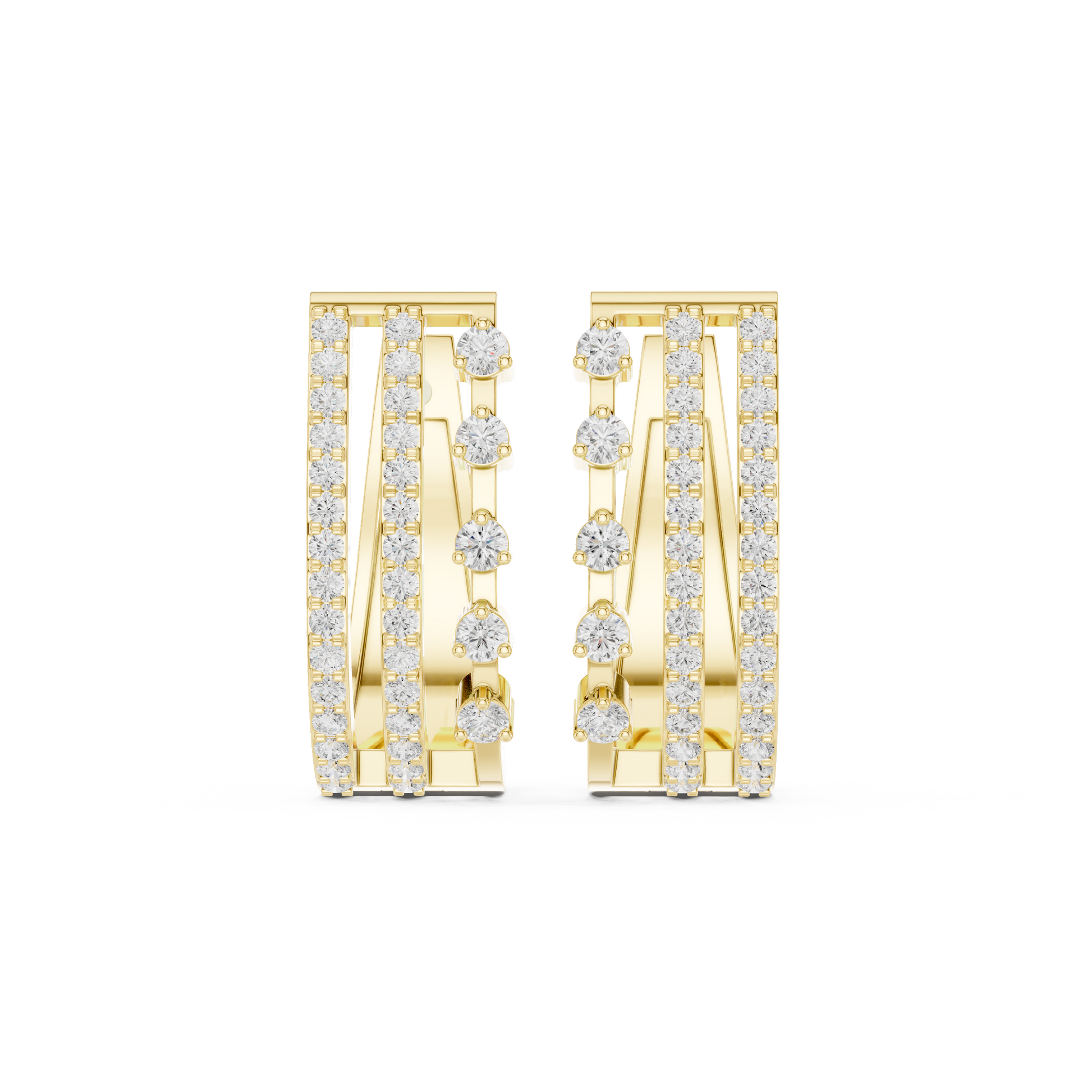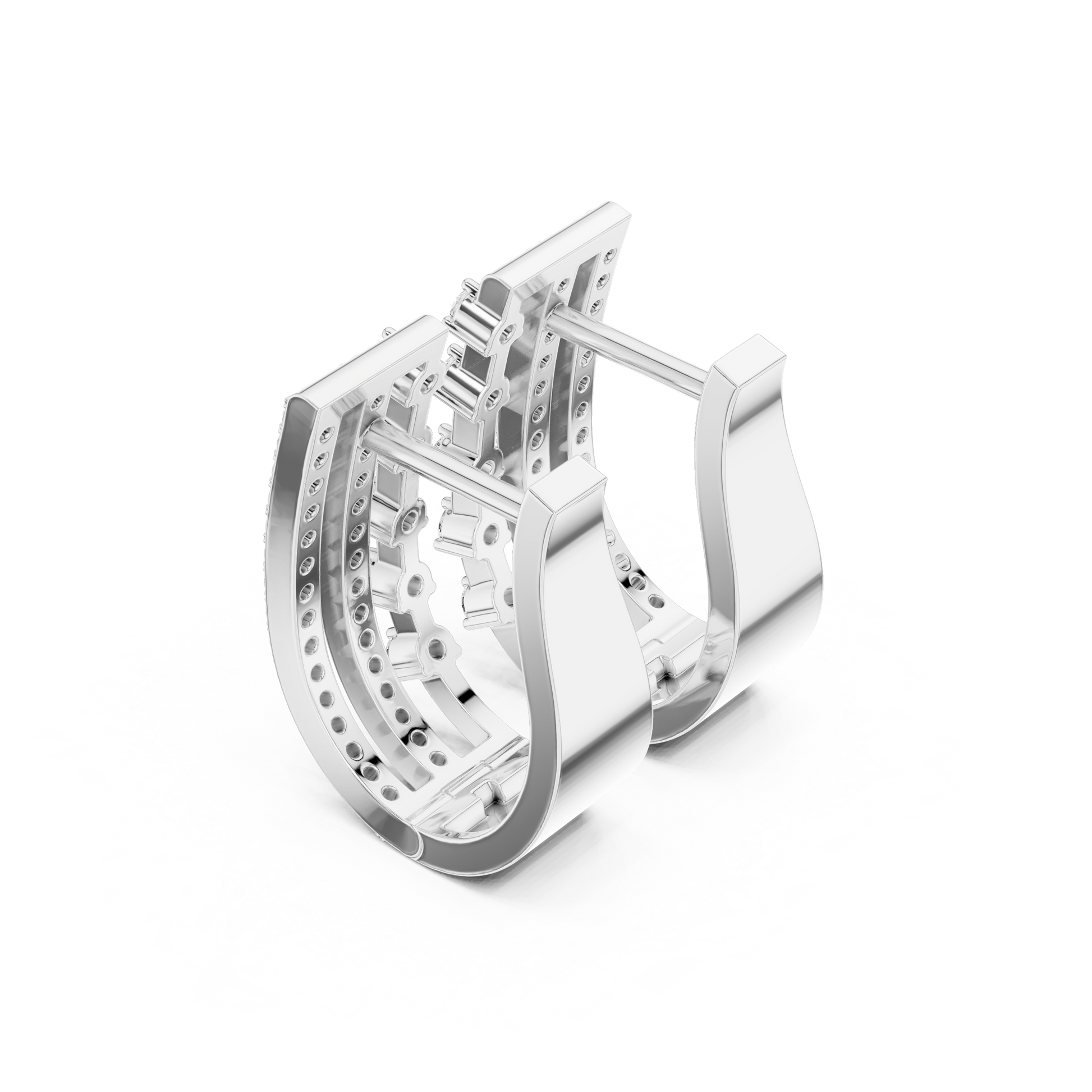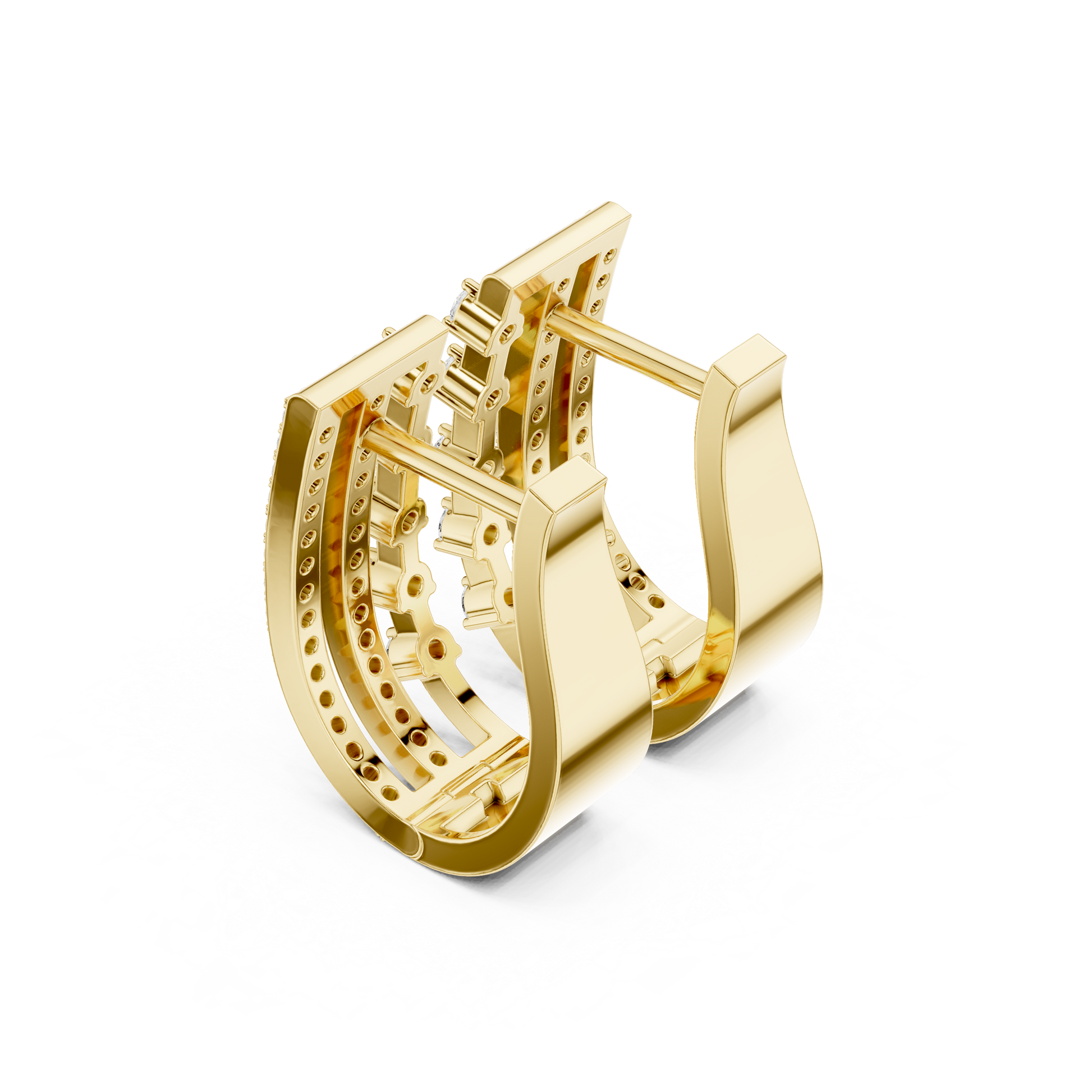 Make a bold statement without saying a word. These Architectural Ladder Huggie Hoops are designed for the modern woman who loves structure and symmetry. Moving away from delicate florals, this design embraces a confident "Grid" silhouette. Rows of brilliant stones are held in place by strong horizontal gold bars, creating a mesmerizing ladder effect that allows light to pour through the negative space. Substantial in weight yet engineered for comfort, these hoops wrap the earlobe in pure luxury, offering a look that is both industrial-chic and timelessly elegant.