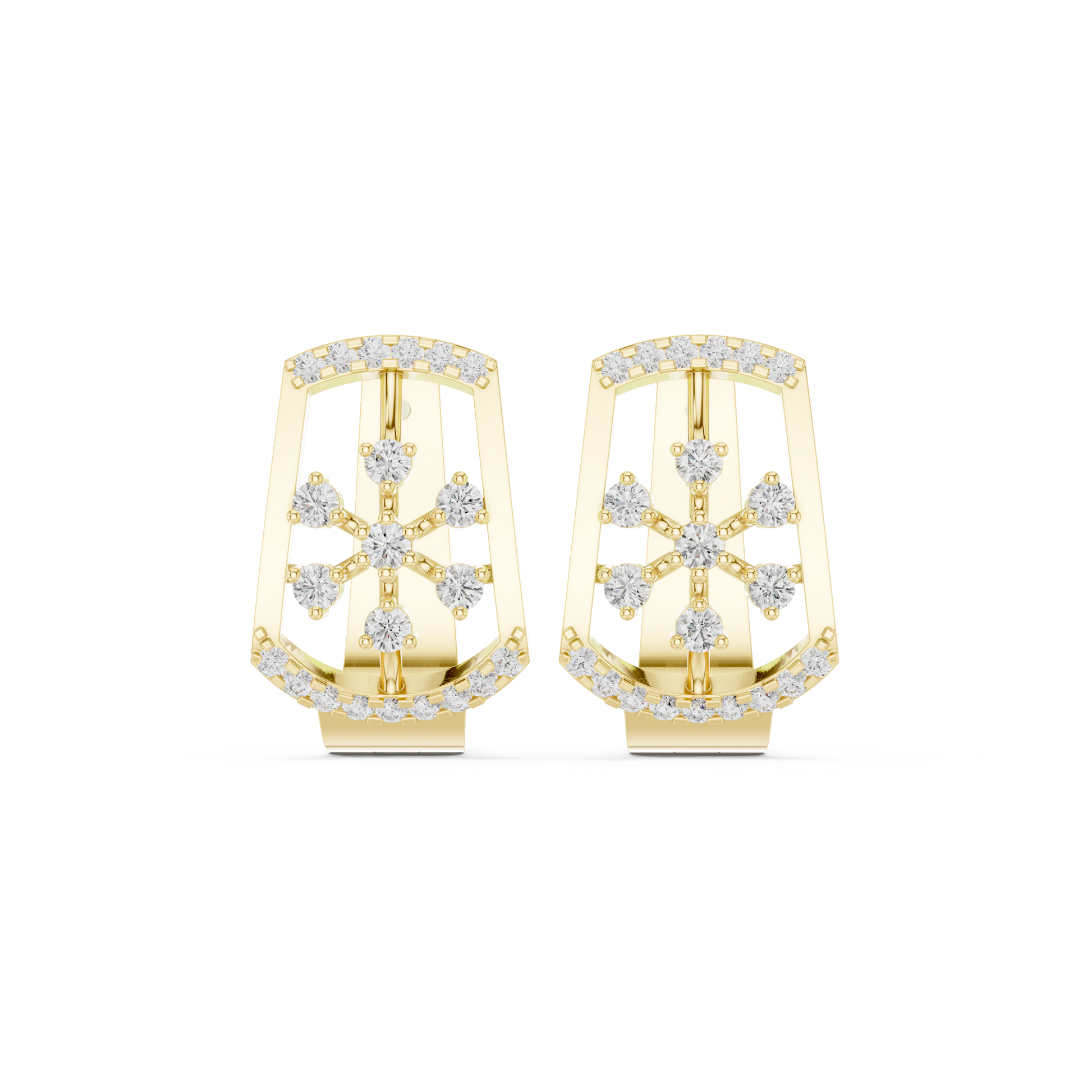 Iconic Diamond Shield Stud Earrings | Premium Designer Gold Jewelry | Diamond Couture Shield Earrings | High-End Floral Statement Studs