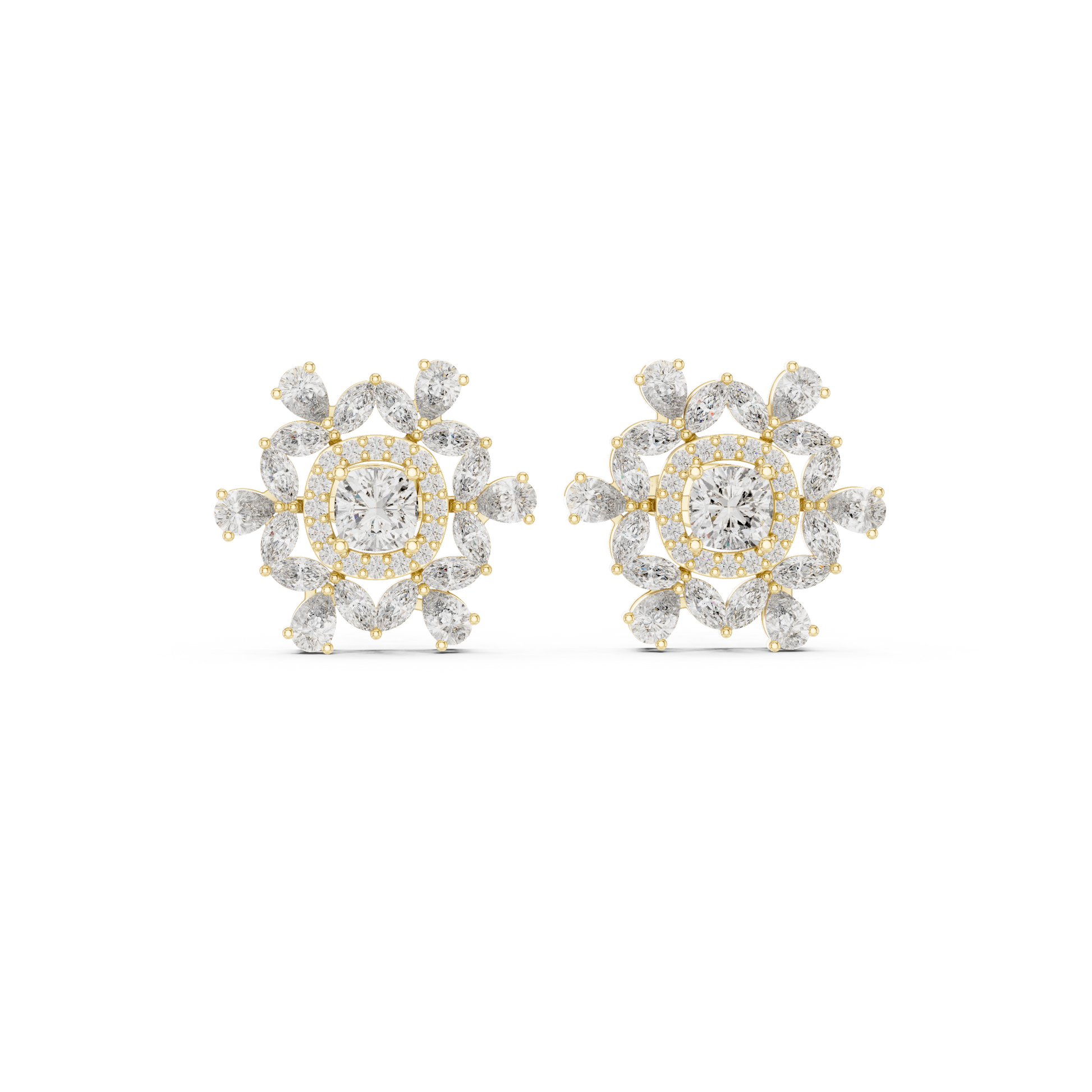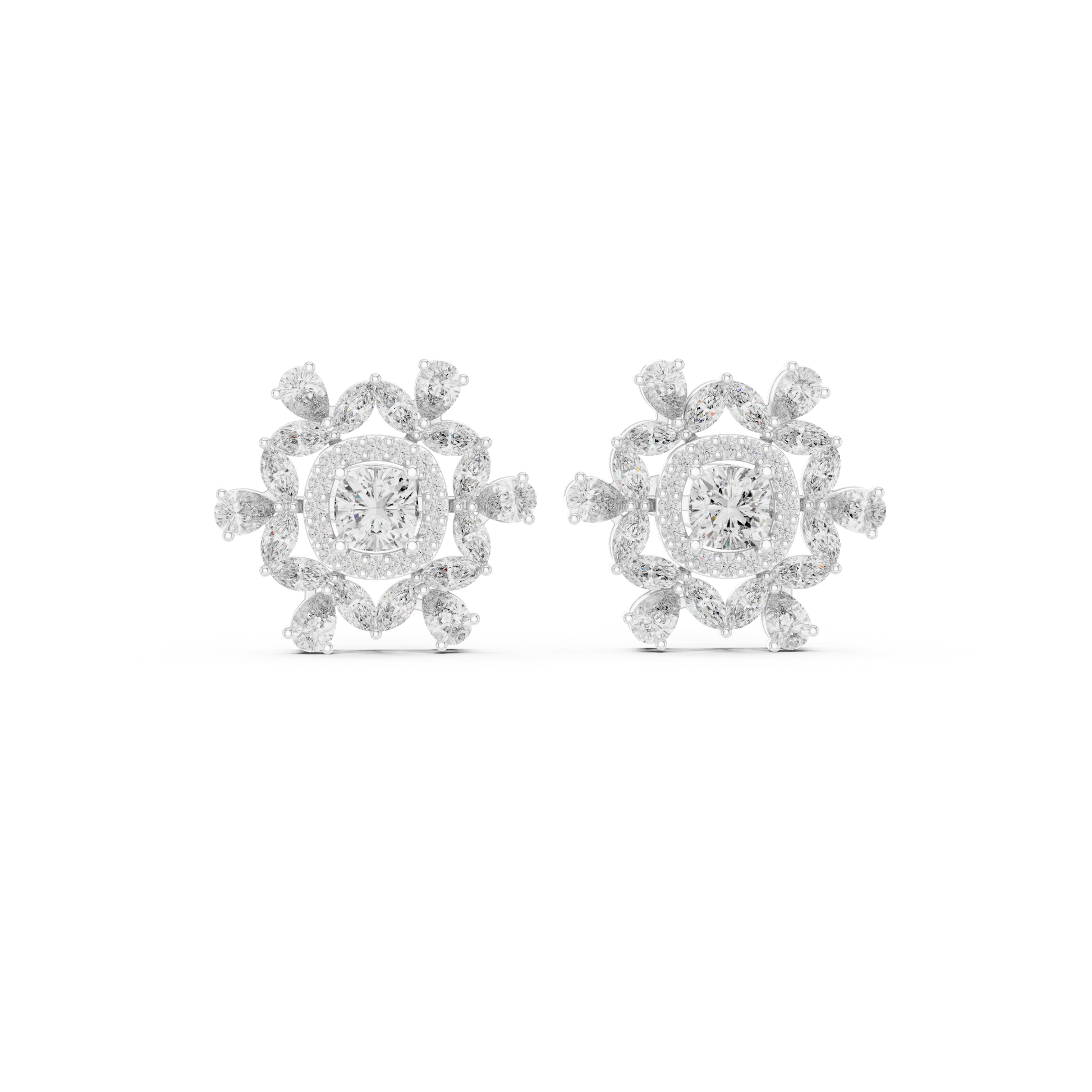 ✧ Cushion Outline: By arranging the stones in a soft square (cushion) shape, these earrings blend the fire of a round diamond with the modern edge of a princess cut.