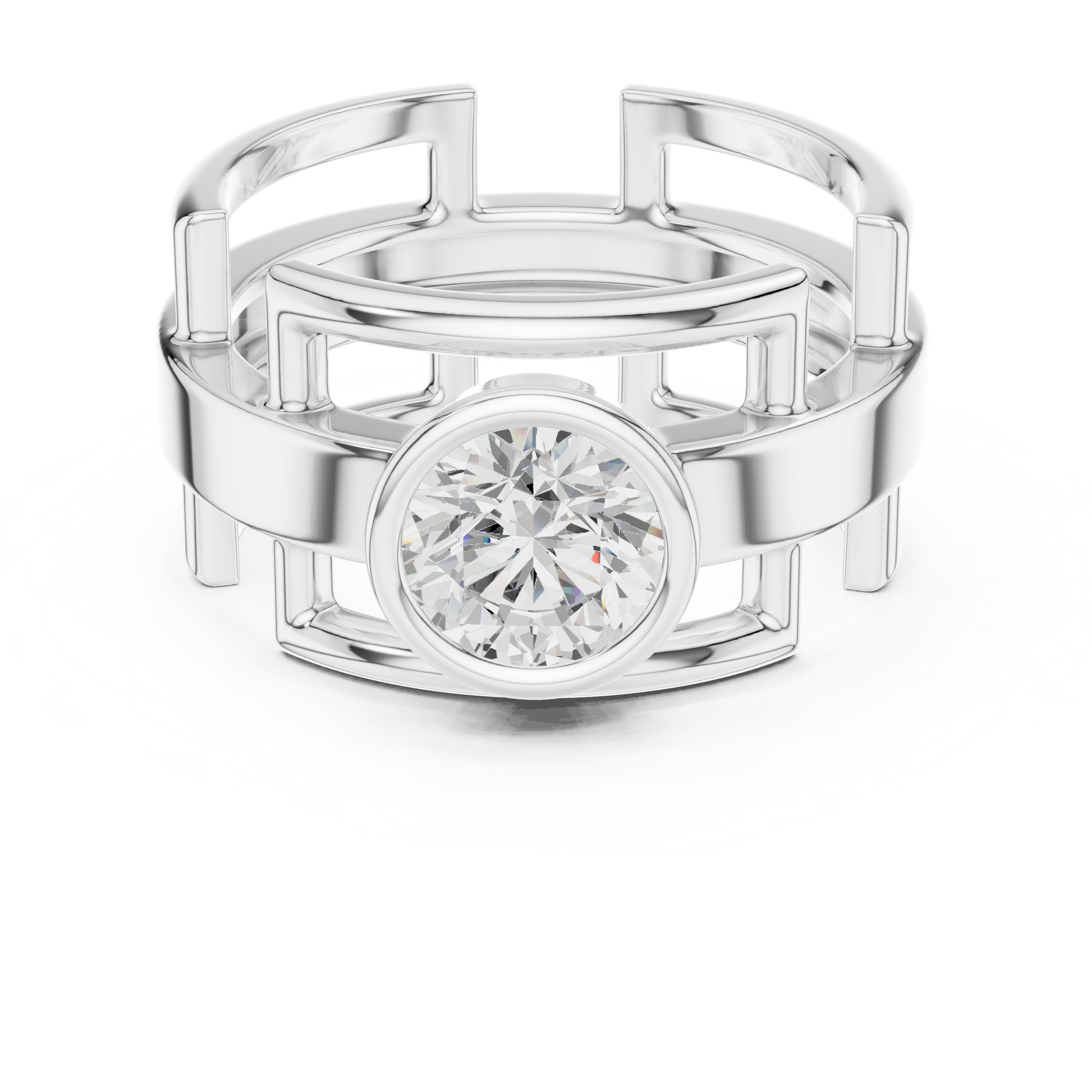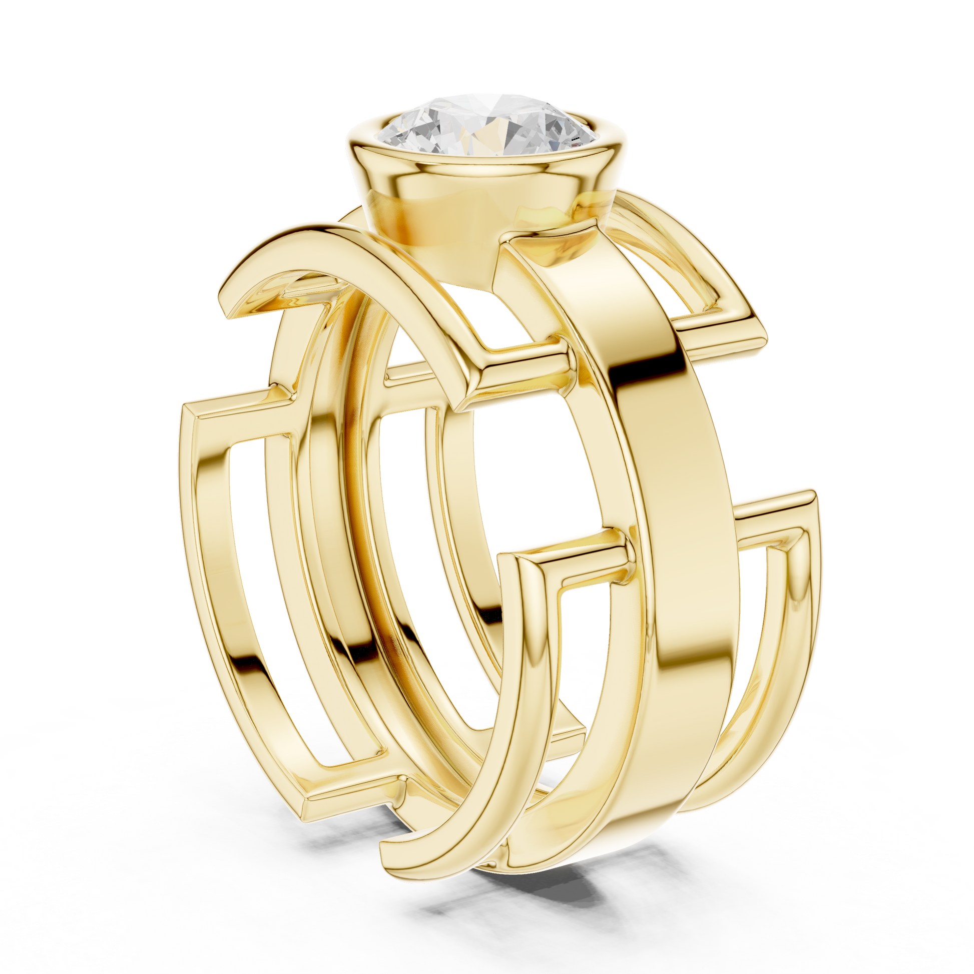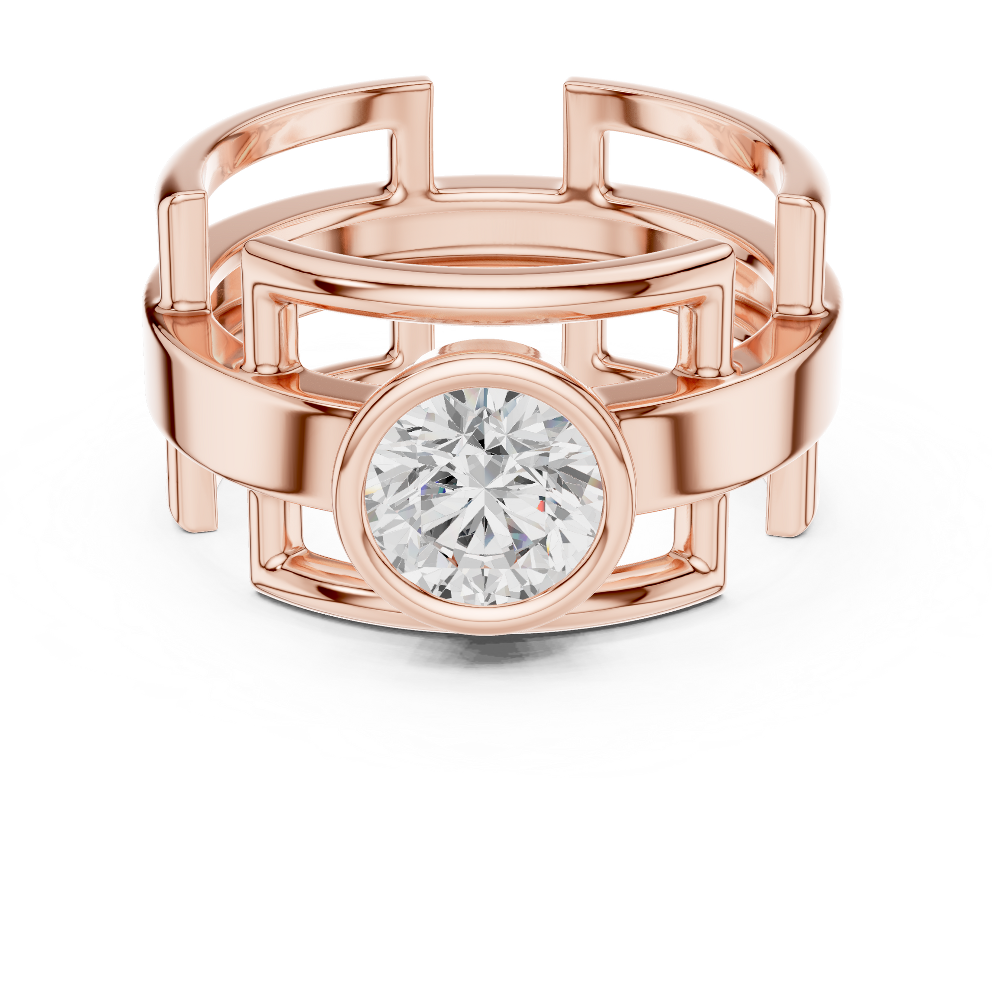 Bold Bezel Solitaire Ring | Architectural Open Band | Rose White Yellow Gold Plated