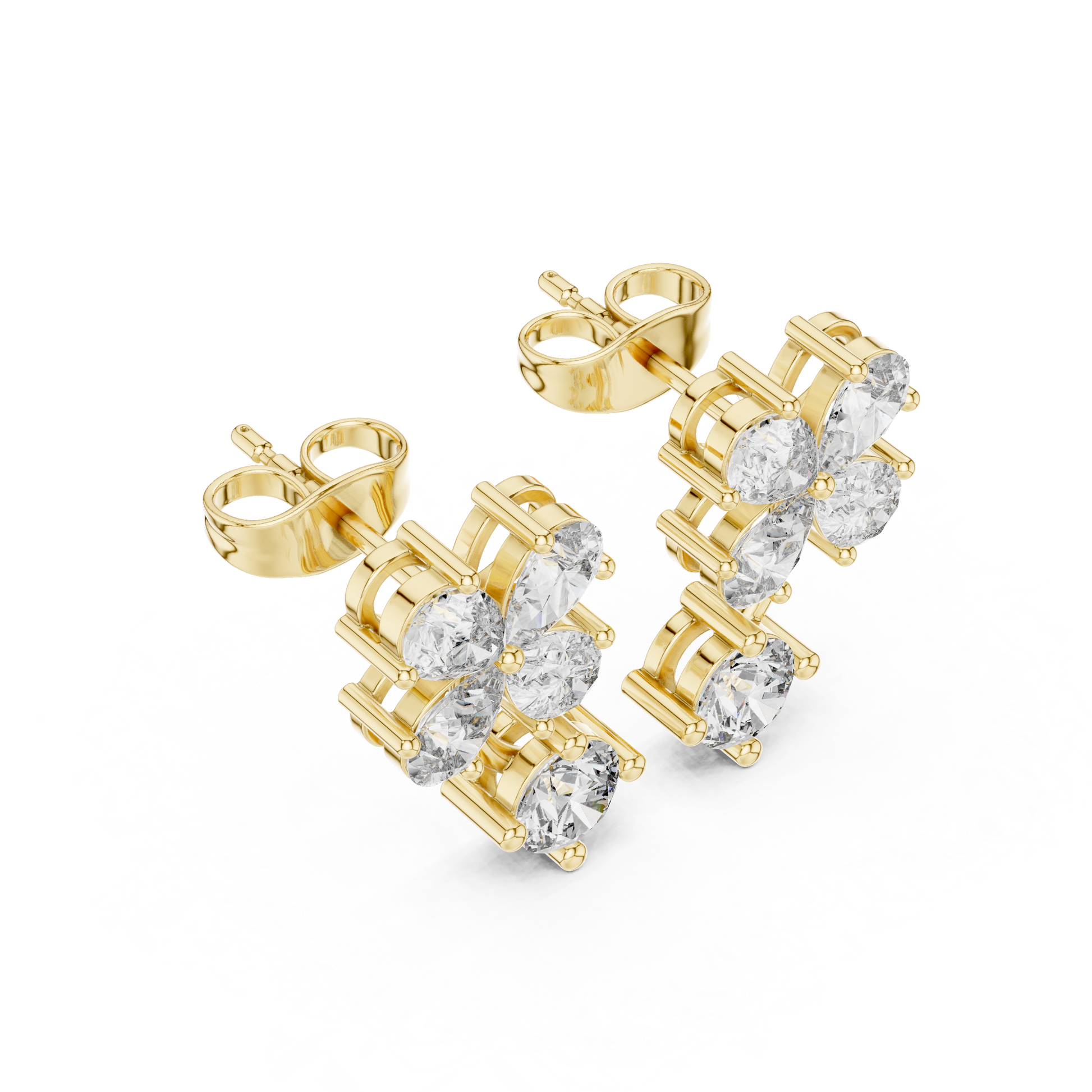 Clover Diamond Drop Stud Earrings in 925 Silver | Luxury Floral Moissanite Earrings for Women