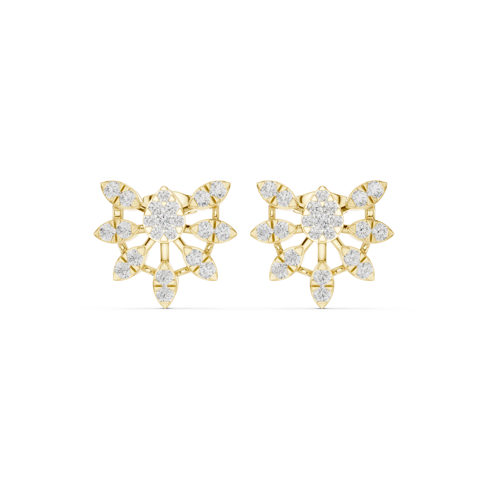 Unveil a look of timeless elegance with these breathtaking Rising Lotus Fan Earrings. Designed to mimic the unfolding petals of a blooming lotus or the rays of a rising sun, these earrings feature a stunning arrangement of marquise and round-cut stones. The unique "fan" silhouette sits beautifully against the earlobe, offering a modern twist on the classic floral stud. Whether you are a bride seeking a symbol of new beginnings or a woman who loves jewelry with a sophisticated edge, these studs are the perfect balance of nature-inspired beauty and Art Deco geometry.