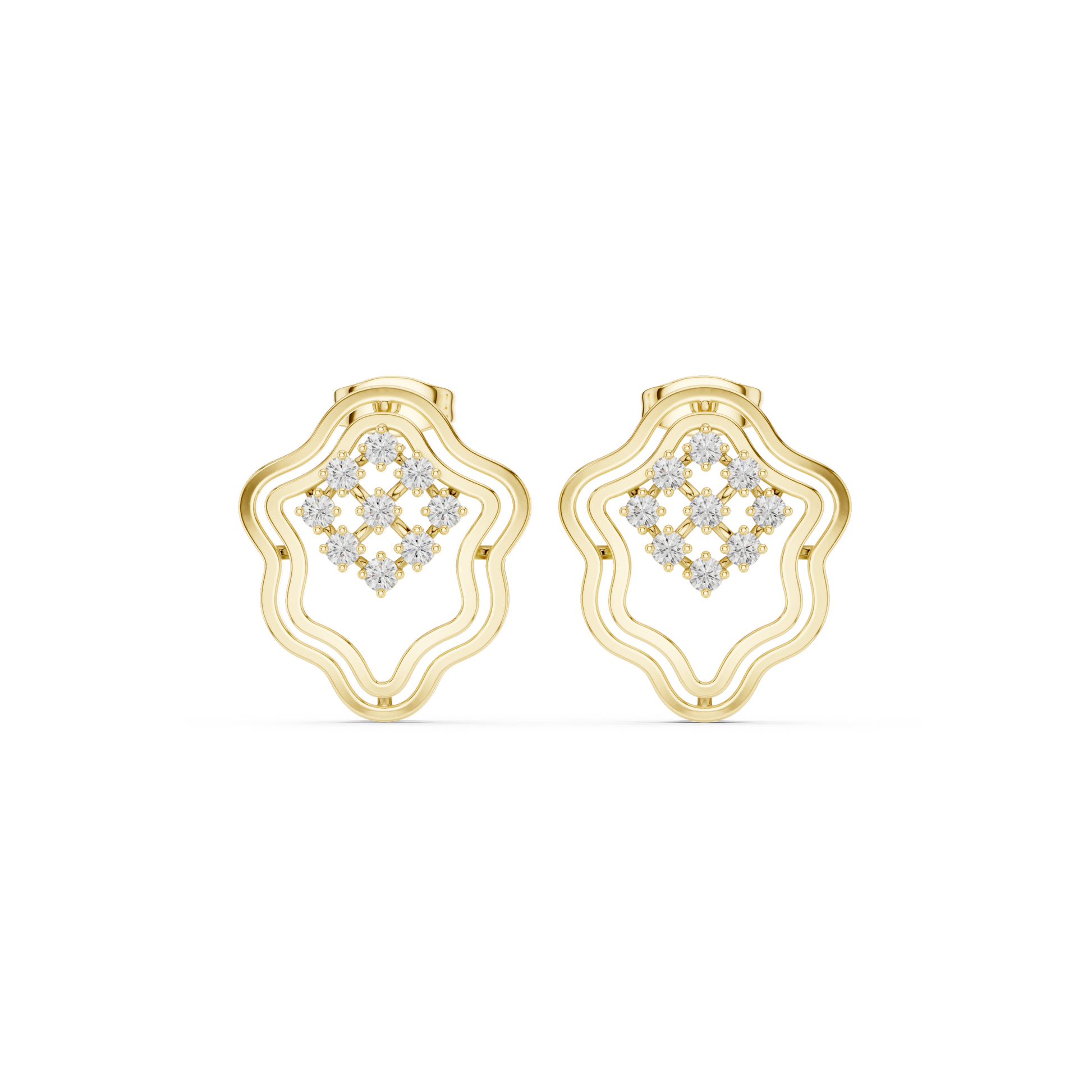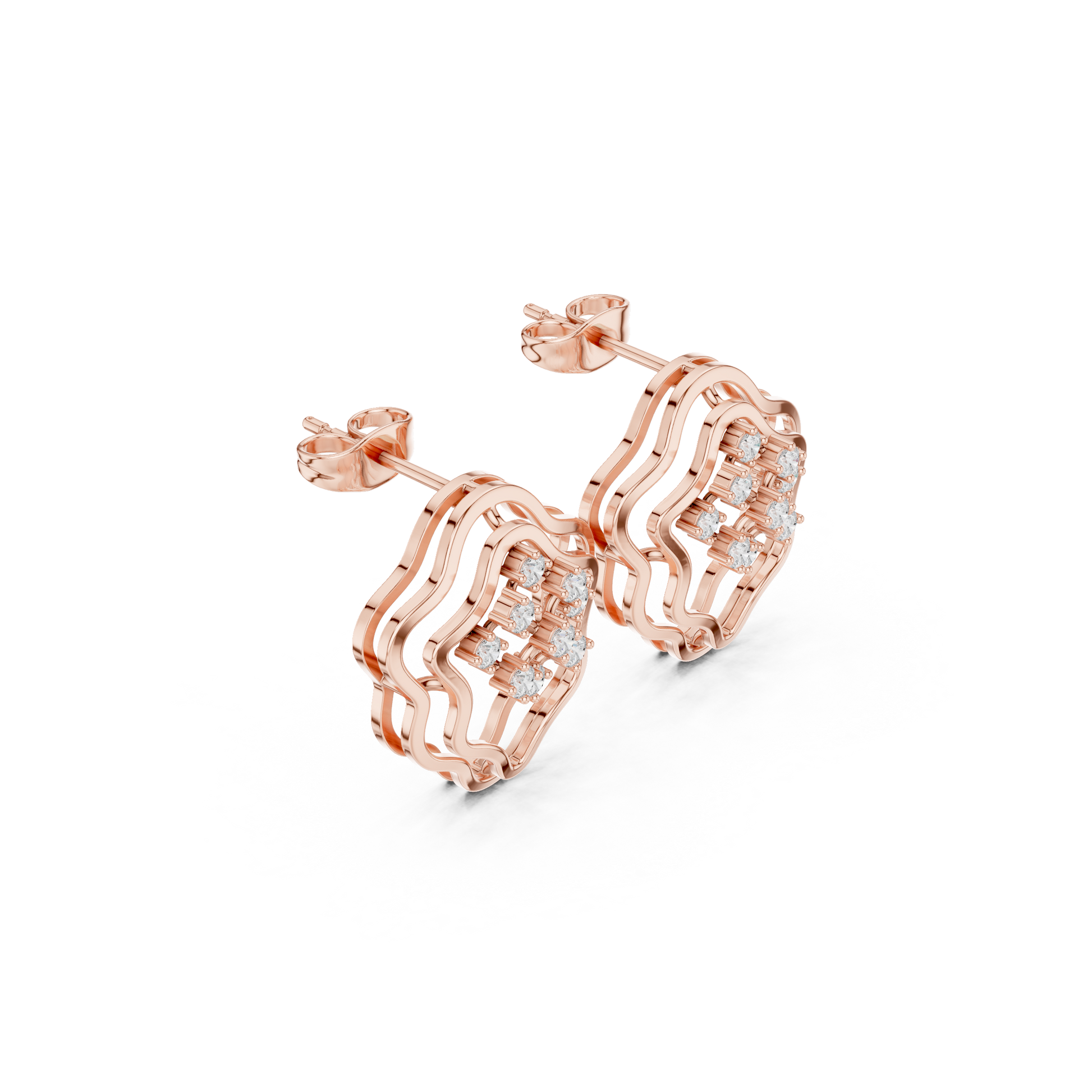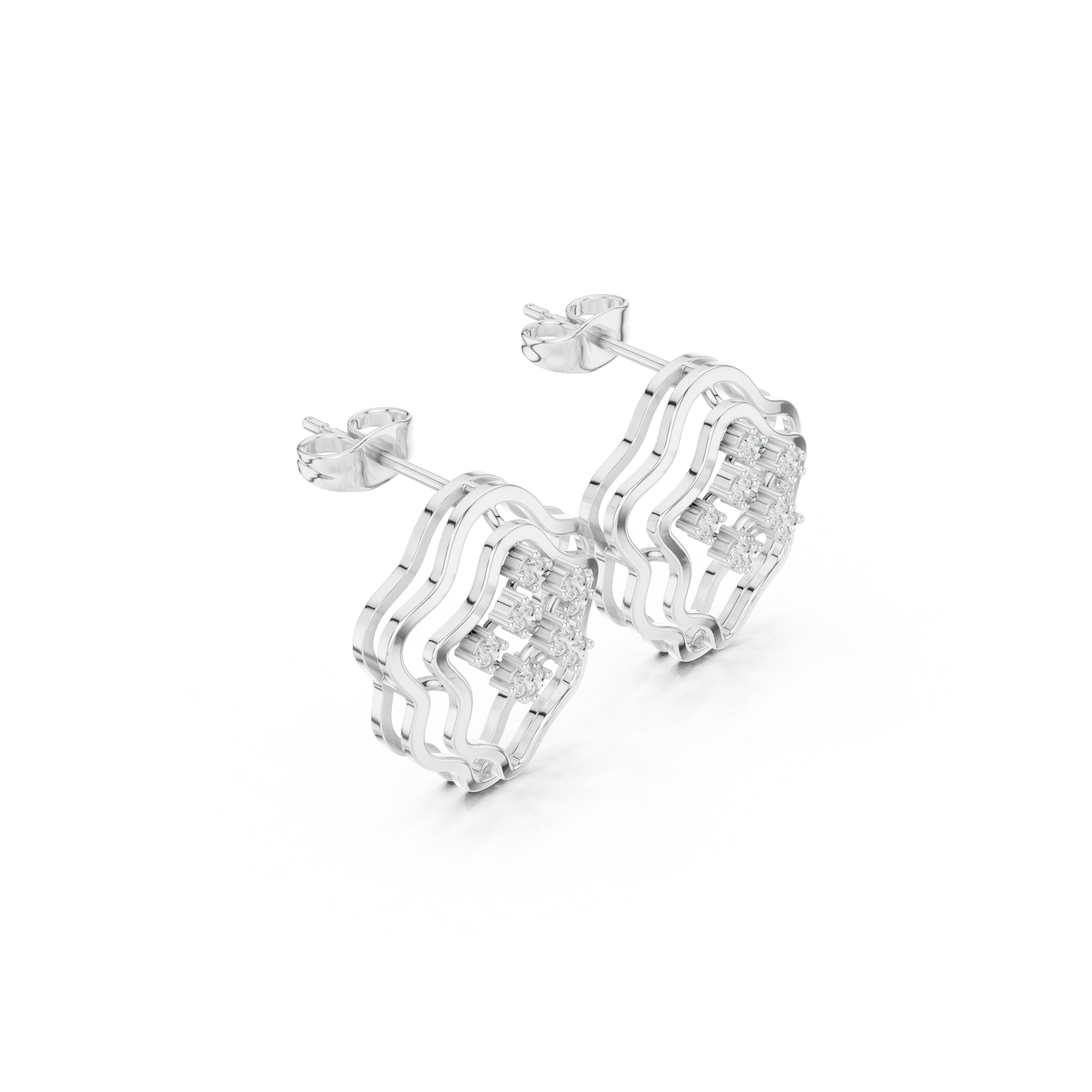 Step into a world of rhythm and elegance with these Abstract Wavy Diamond Stud Earrings. Breaking away from traditional flat designs, these earrings feature a mesmerizing multi-layered structure that mimics the gentle ripples of water or the contours of modern architecture. At the heart of this sculptural gold frame sits a brilliant diamond cluster, offering a focal point of intense sparkle. These are designed for the woman who wants her jewelry to have movement, depth, and a unique story to tell.