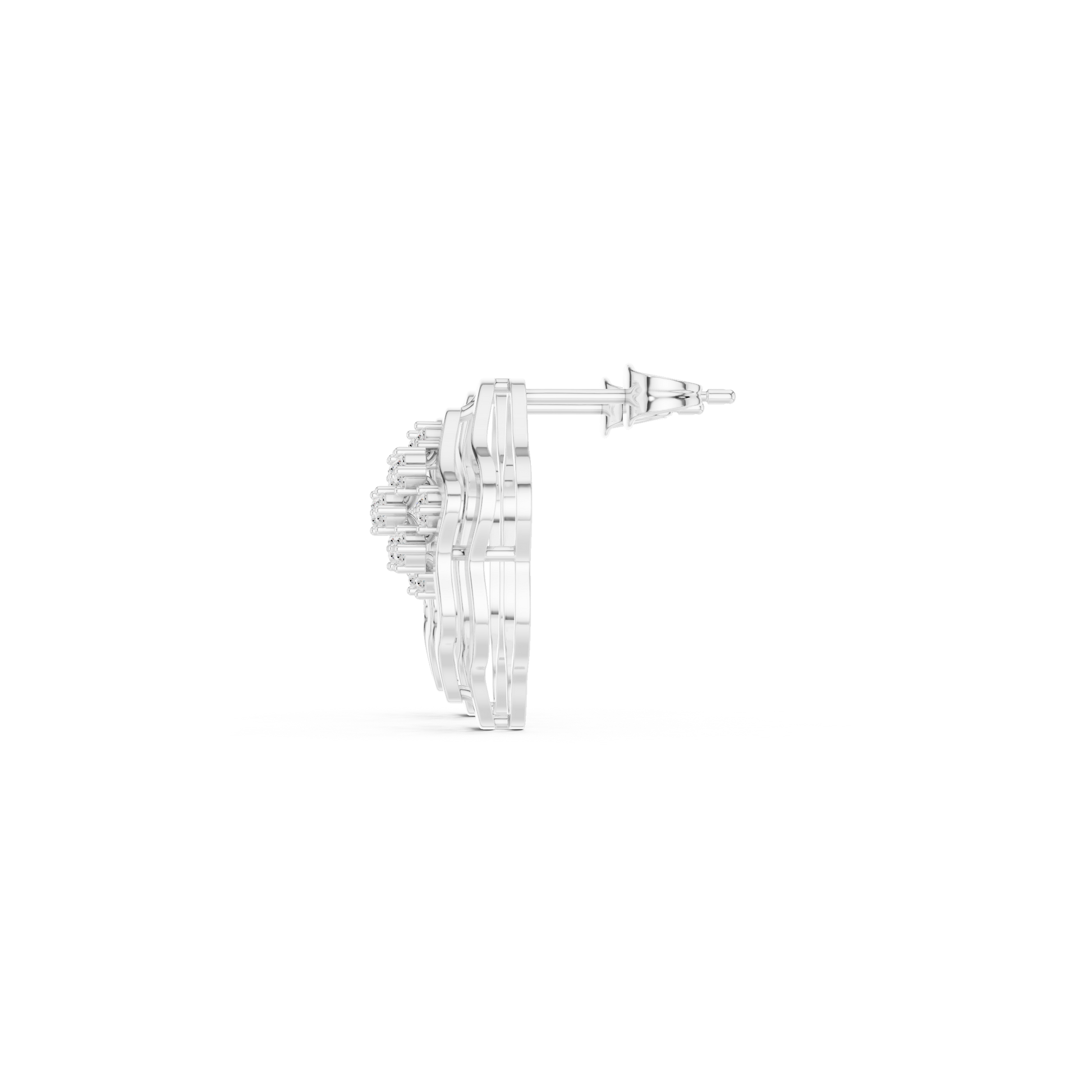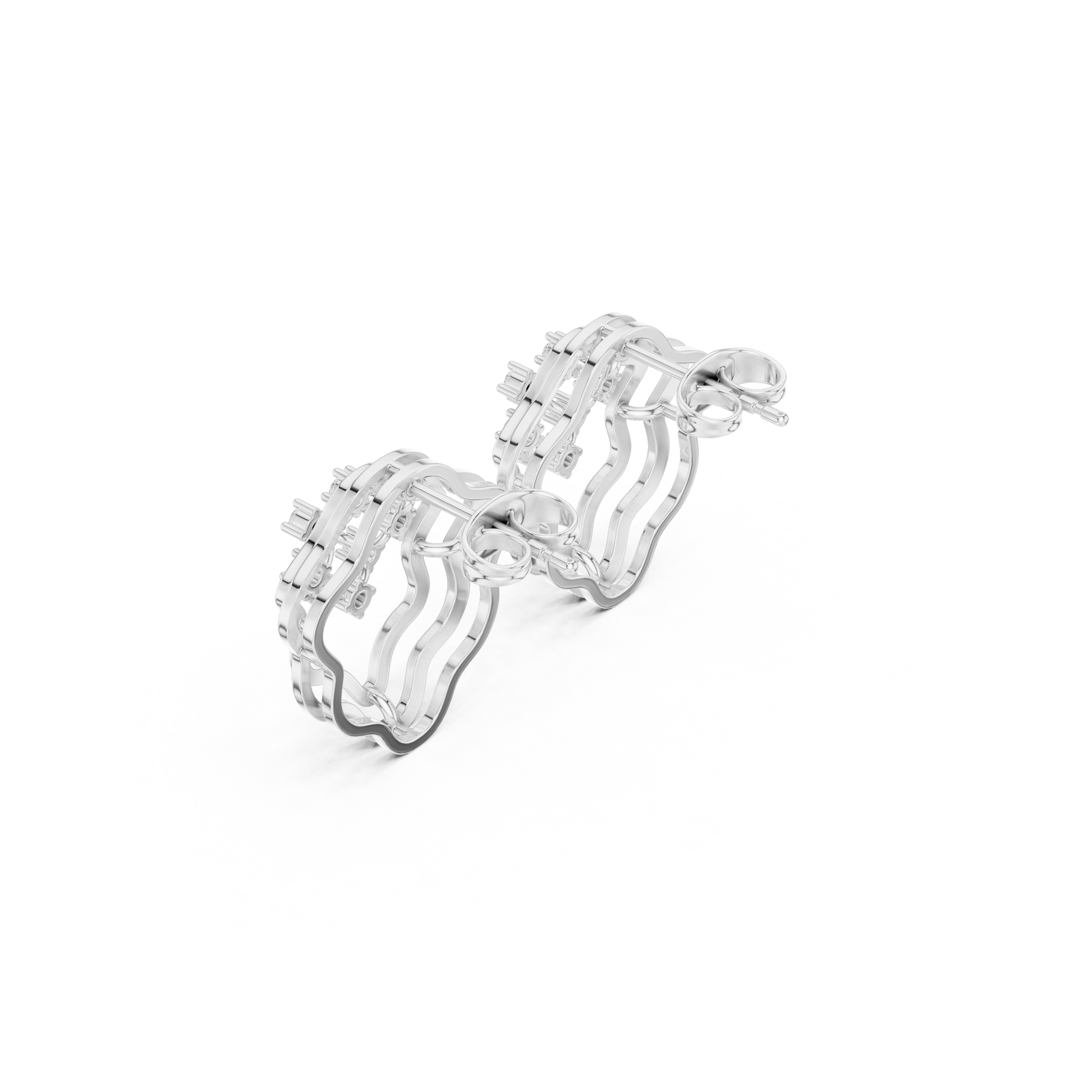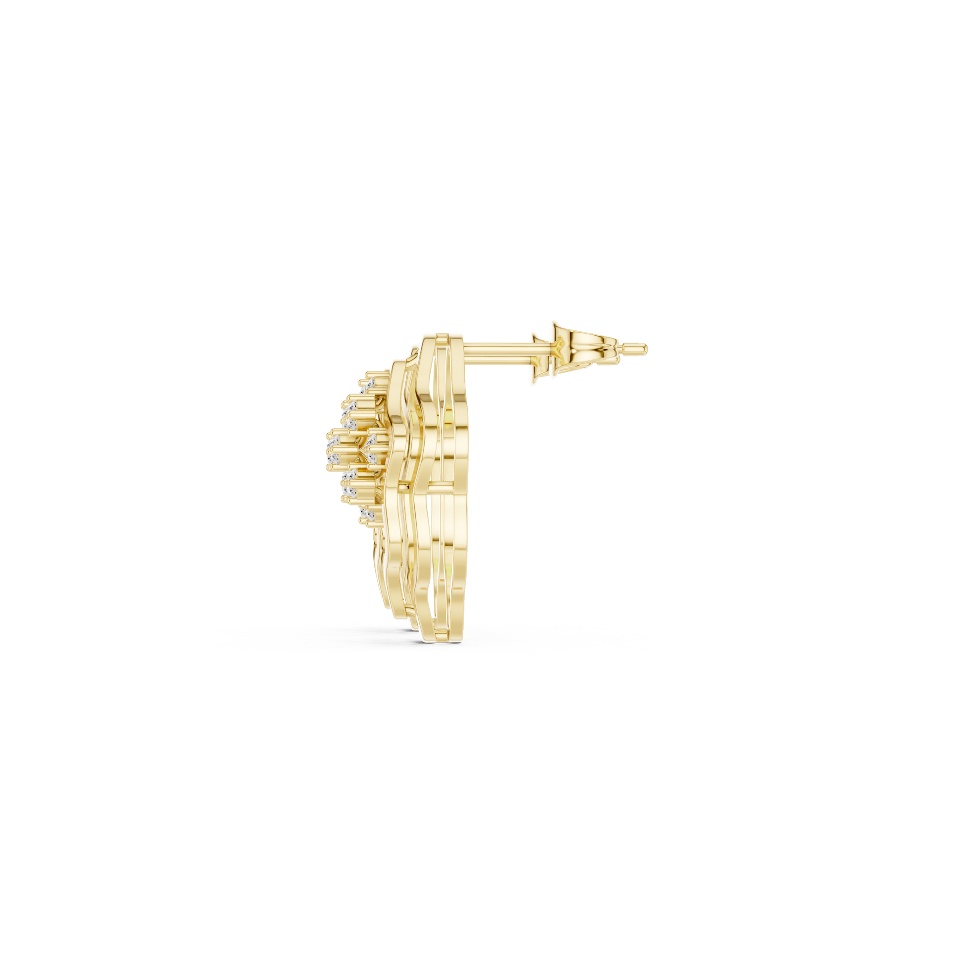 Step into a world of rhythm and elegance with these Abstract Wavy Diamond Stud Earrings. Breaking away from traditional flat designs, these earrings feature a mesmerizing multi-layered structure that mimics the gentle ripples of water or the contours of modern architecture. At the heart of this sculptural gold frame sits a brilliant diamond cluster, offering a focal point of intense sparkle. These are designed for the woman who wants her jewelry to have movement, depth, and a unique story to tell.