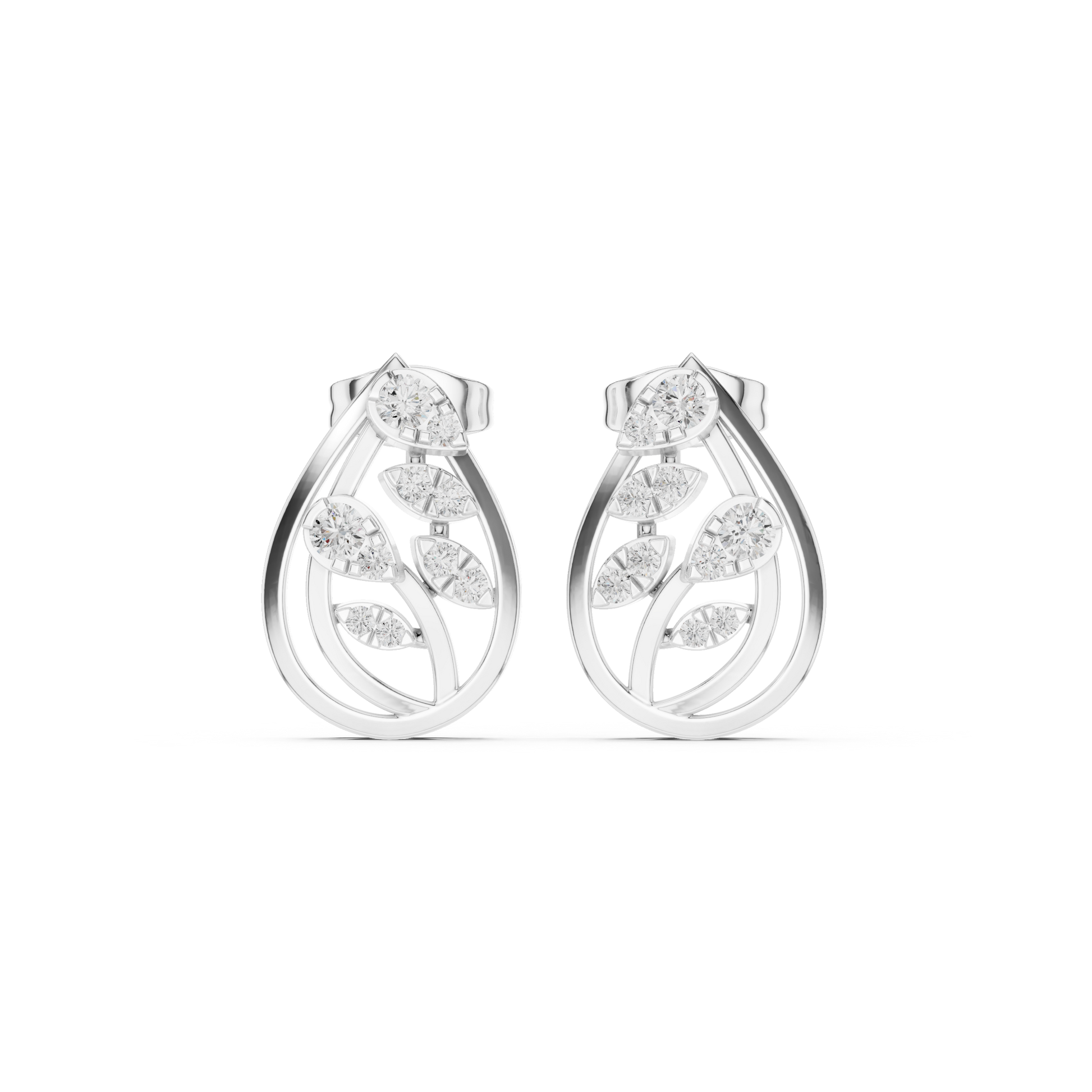 ✧ Earring Type: Romantic Teardrop Vine Diamond Earrings – Open-Work Bridal Leaf Studs