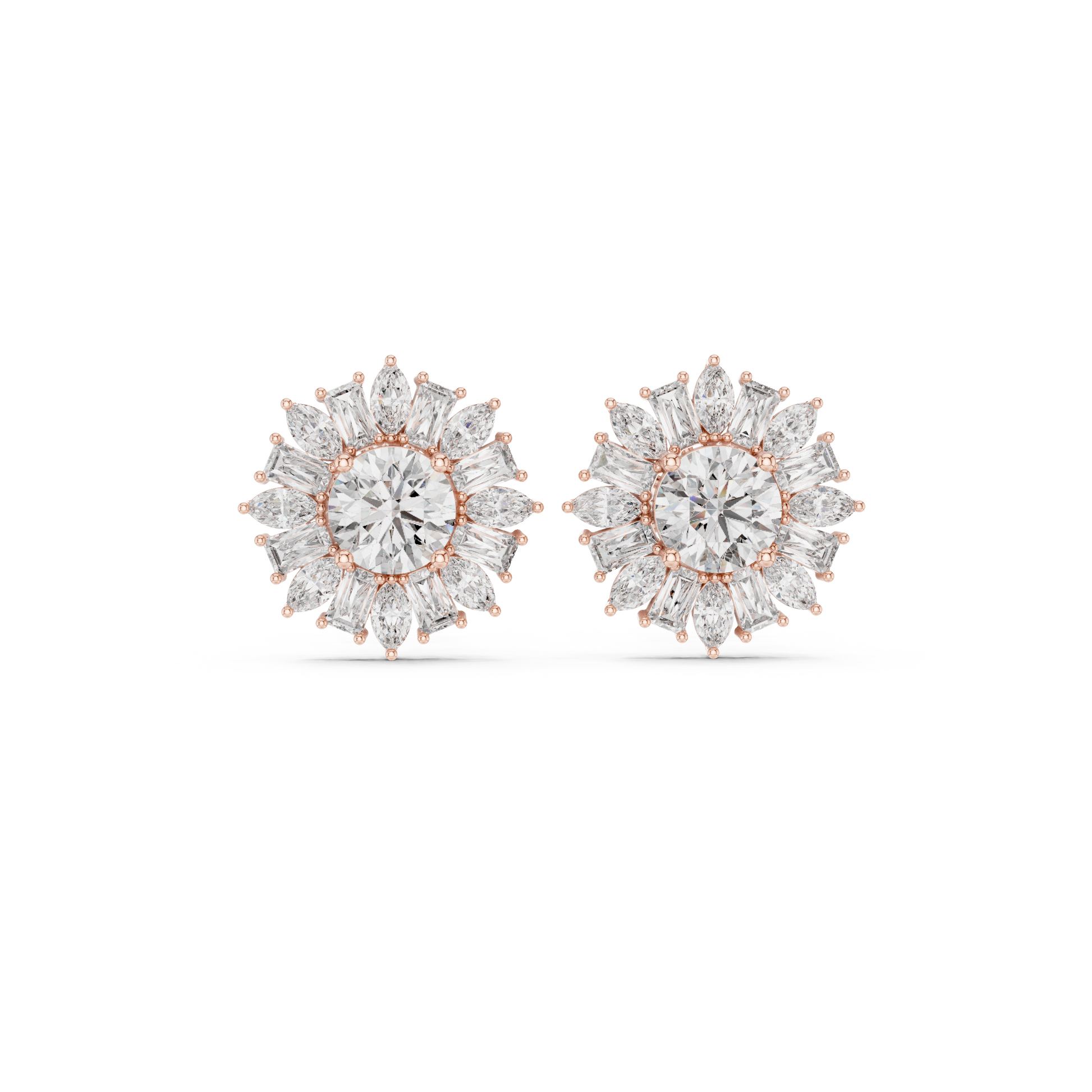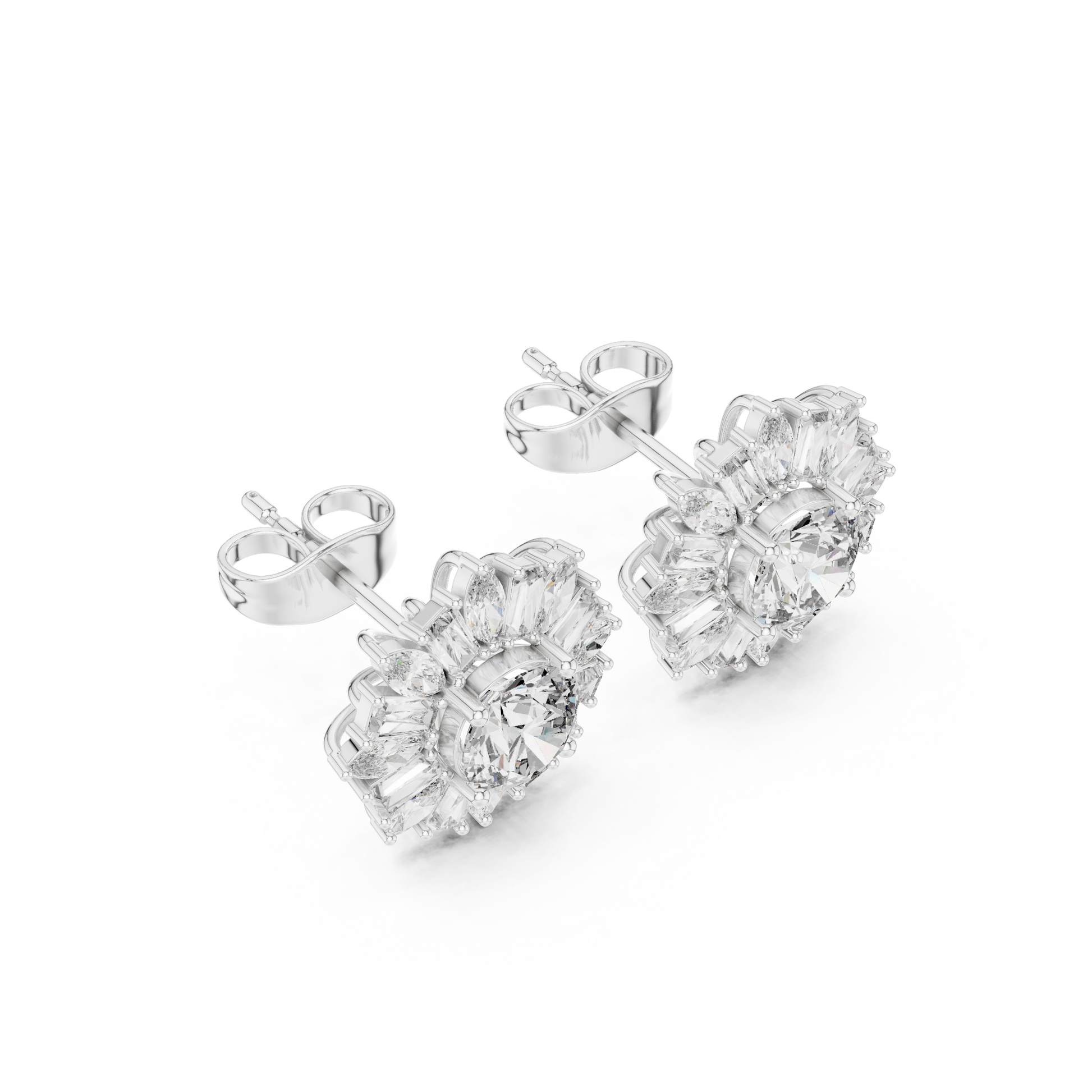 ✧ 1 Pair of Radiant Sunburst Diamond Stud Earrings