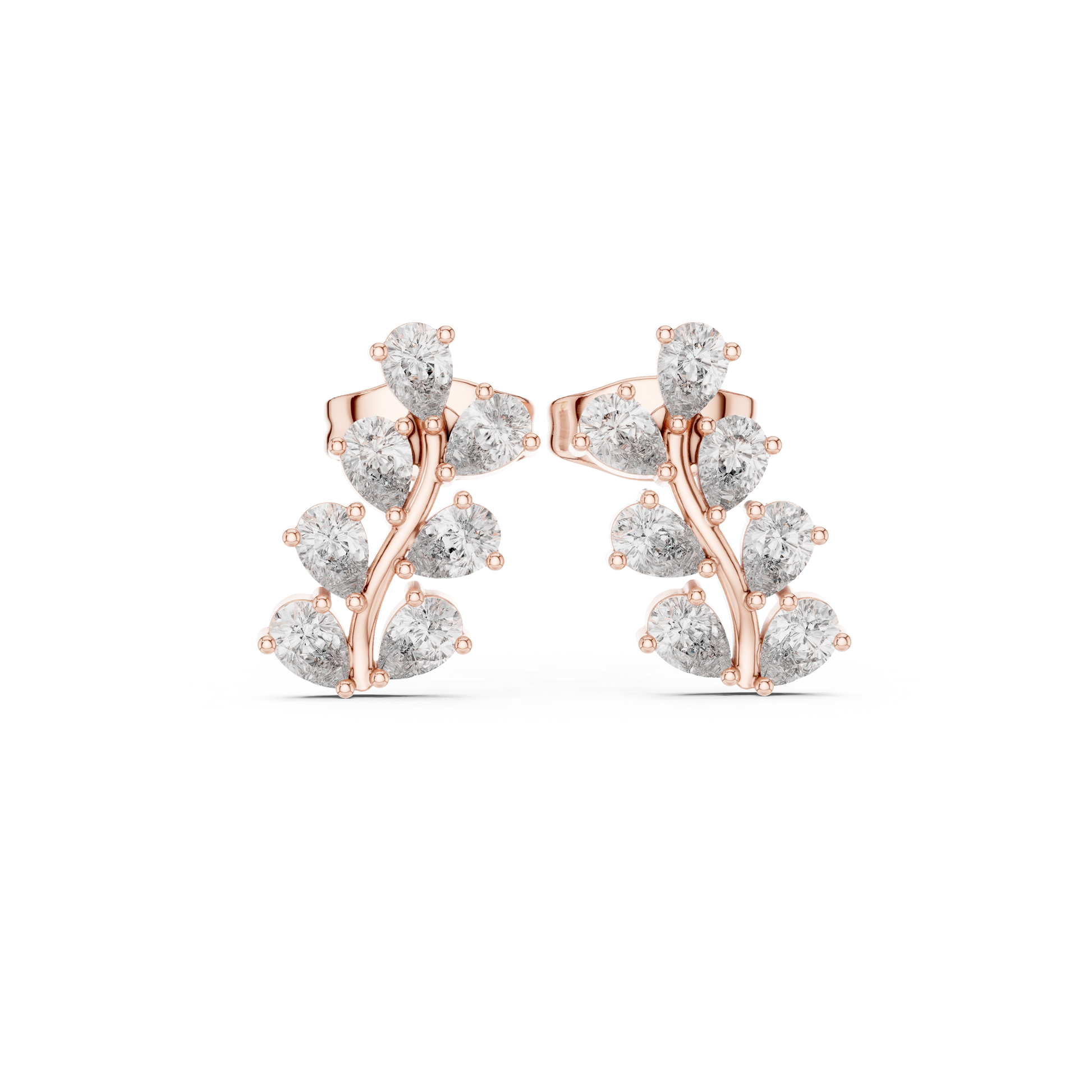 Wrap your ears in the graceful elegance of nature. These Pear Diamond Botanical Climbers are designed to capture the fluid beauty of a growing vine. Composed entirely of graduated pear-cut stones, this design mimics delicate leaves unfurling along a golden stem. Engineered to follow the natural anatomy of your ear, they offer a sophisticated "sweeping" look that creates an illusion of multiple piercings. Whether you are walking down the aisle at a garden wedding or adding a touch of floral sparkle to your daily look, these earrings are a breath of fresh air.