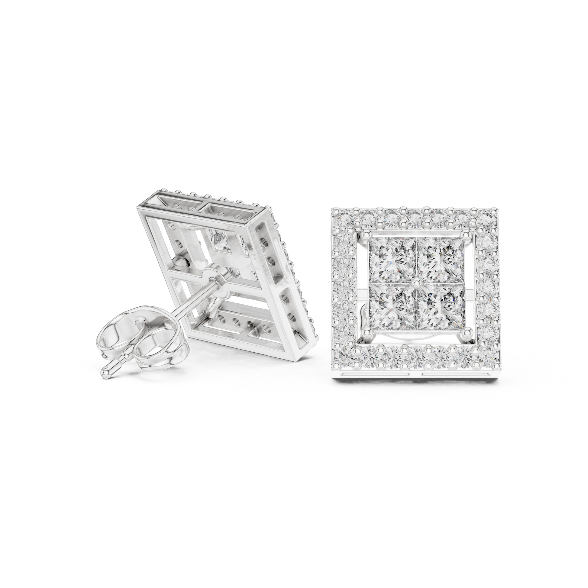 | Product Style | Square Halo Princess Cut Stud Earrings |