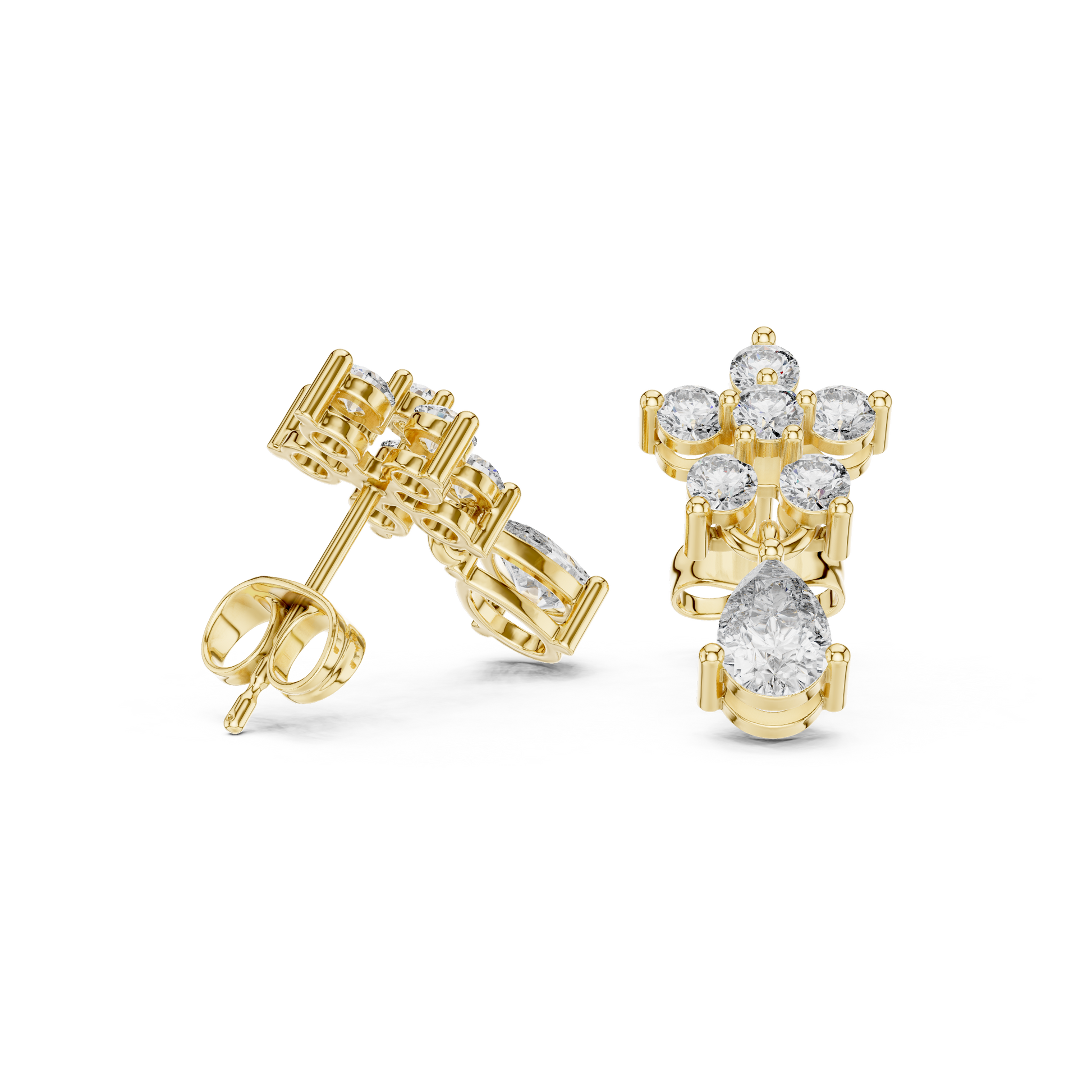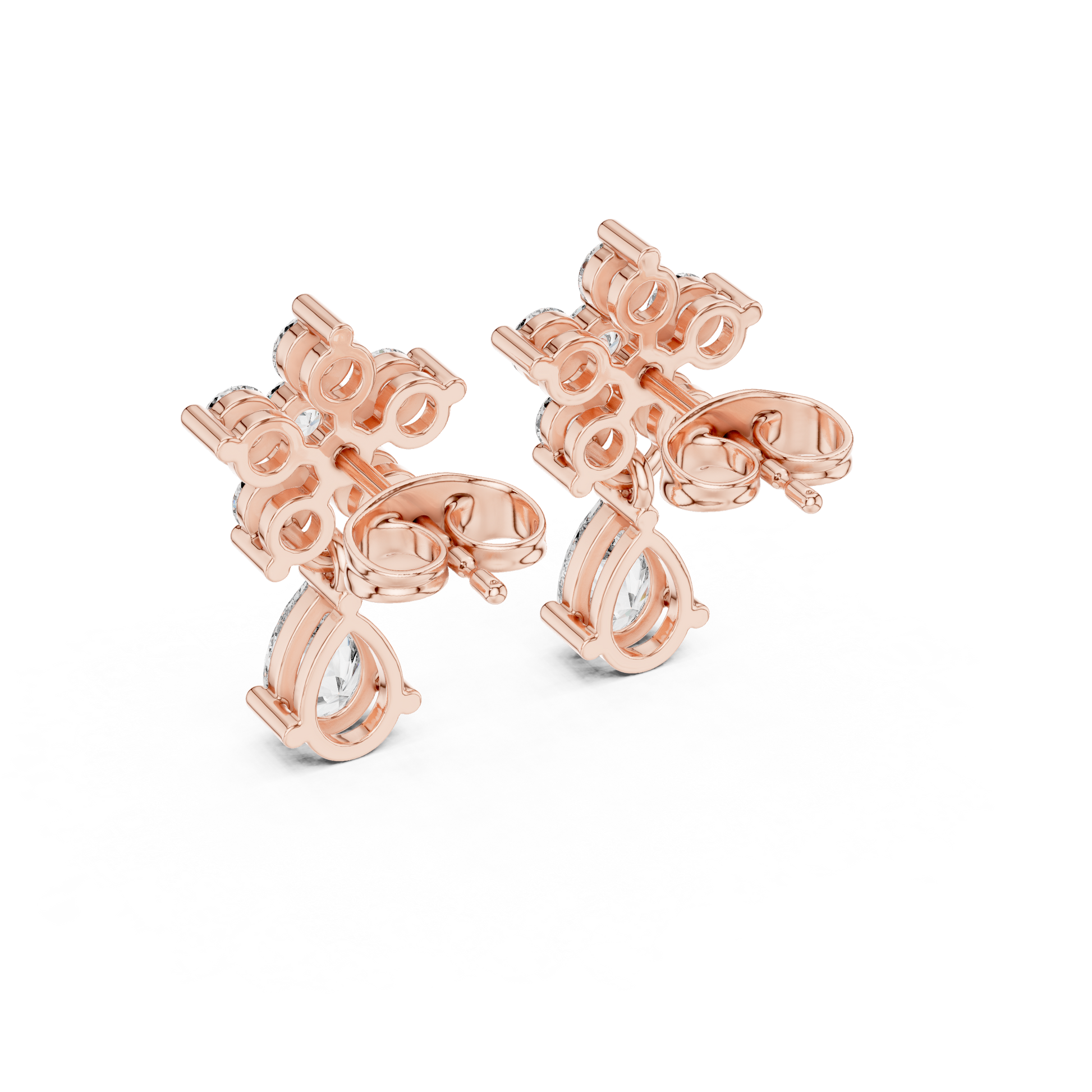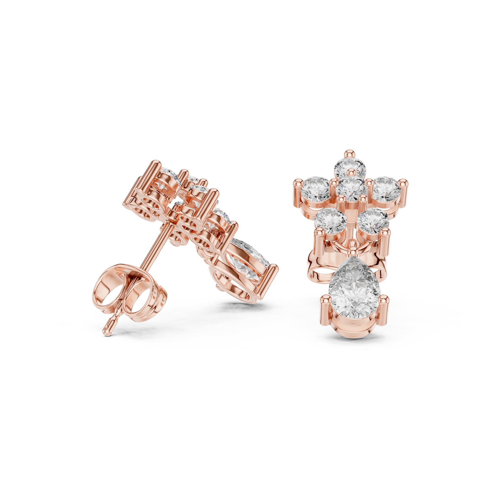 Capture the romance of a spring garden after the rain. These Floral Pear Drop Earrings are a poetic blend of nature and luxury. A delicate six-petal diamond flower rests upon the earlobe, anchoring a glistening pear-shaped teardrop that hangs freely below. The articulated design allows the teardrop to sway gently with your every movement, catching the light and framing your face with a soft, rhythmic sparkle. Timeless and graceful, these are the perfect earrings for a bride, a mother, or anyone who believes in the beauty of classic elegance.