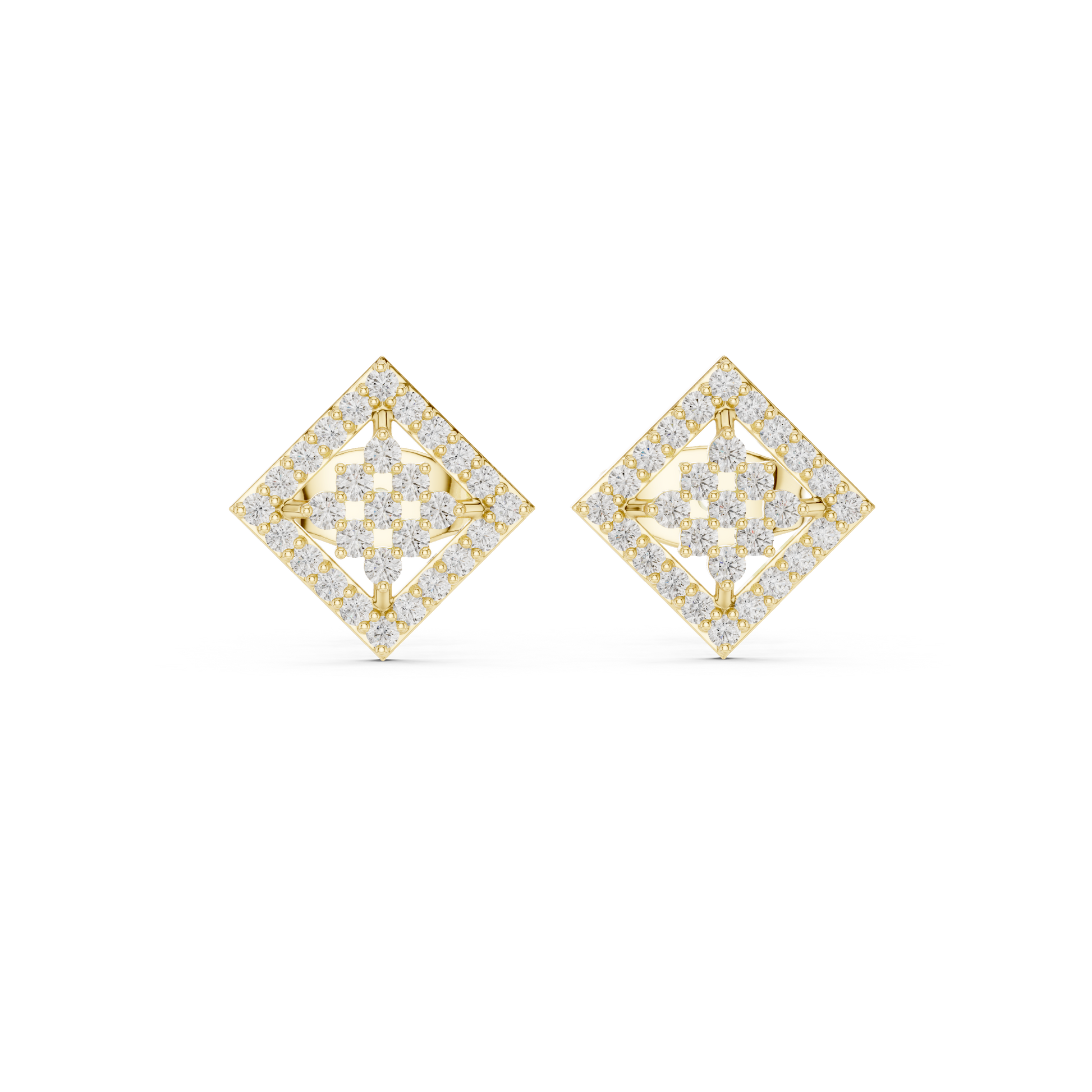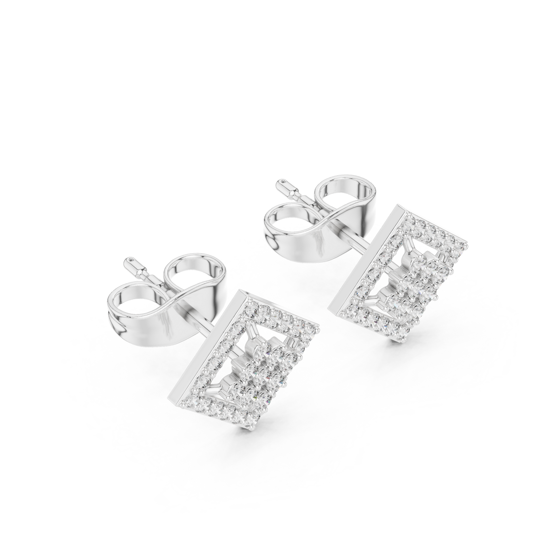 Geometric Diamond Stud Earrings, Modern Luxury Studs, Pave Square Earrings, Birthday Gift for Her