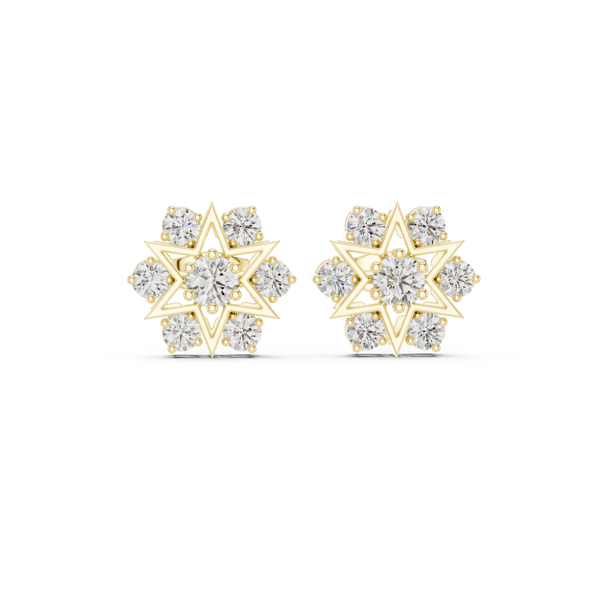 Starburst Diamond Stud Earrings in Solid Gold | Luxury Geometric Bridal Studs | Radiant Star Diamond Stud Earrings | Designer Gold Jewelry