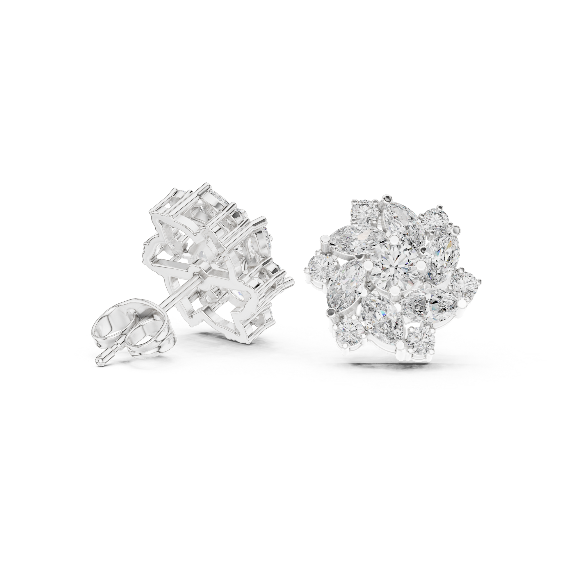 ✧ Earring Type: Marquise Floral Diamond Studs • 14K Gold Starburst Cluster Earrings • Bridal Wedding Jewelry • Elegant Daily Wear • Gift for Her