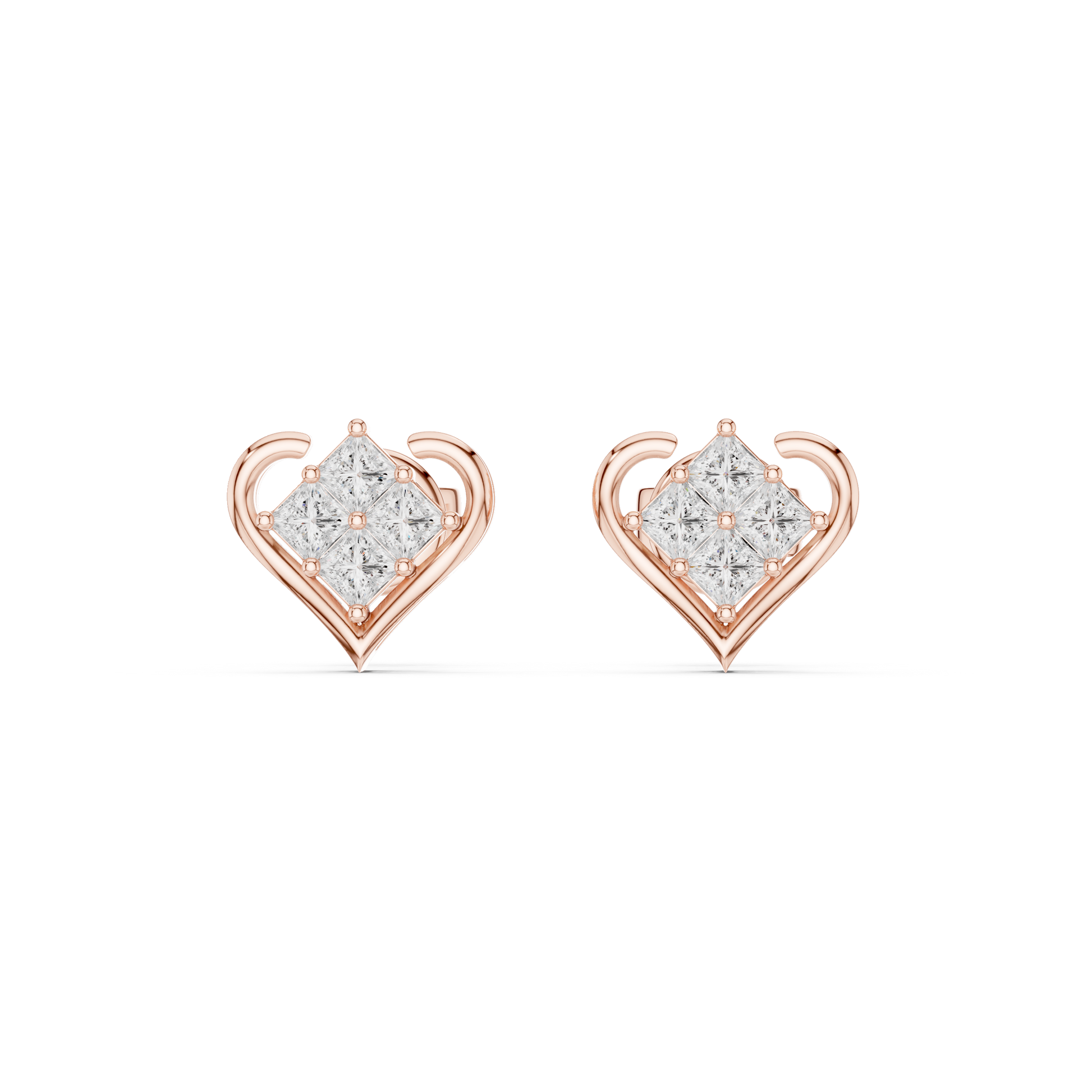 Heart Shape Princess Cut Diamond Stud Earrings in 14K Gold | Minimal Luxury Love Earrings | Princess Cut Cluster Diamond Heart Stud Earrings | Elegant Bridal & Daily Wear