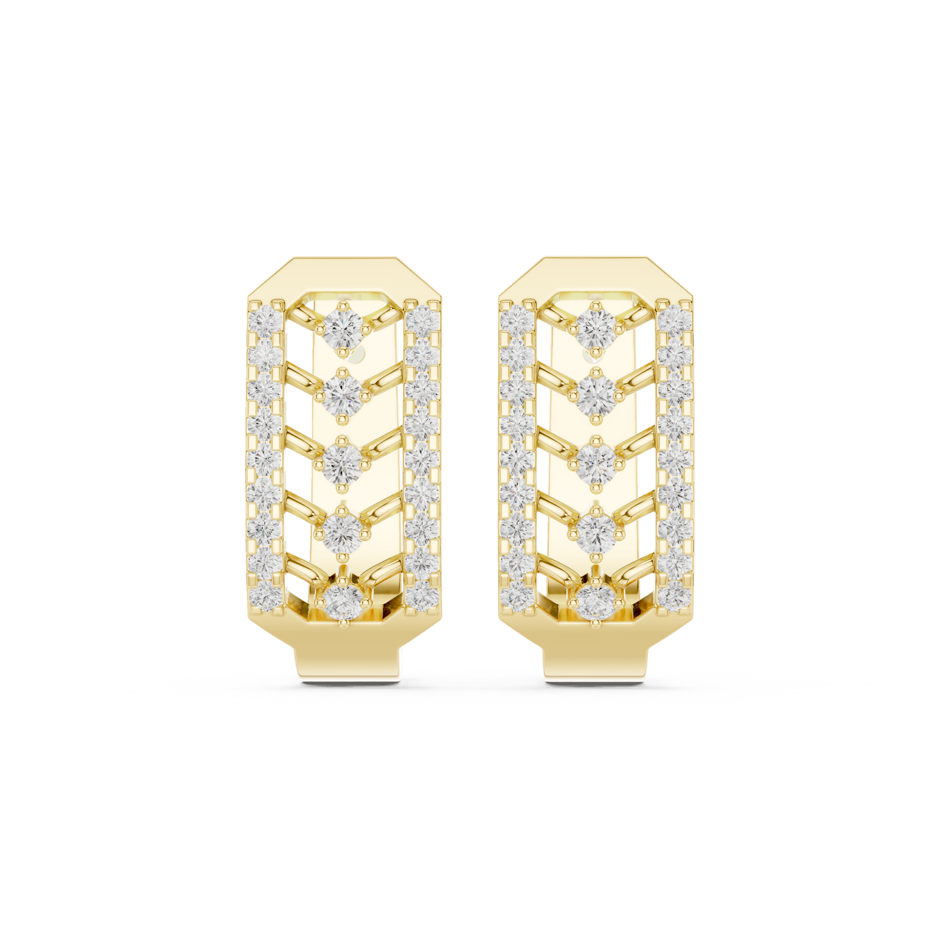 Make a bold statement without saying a word. These Architectural Ladder Huggie Hoops are designed for the modern woman who loves structure and symmetry. Moving away from delicate florals, this design embraces a confident "Grid" silhouette. Rows of brilliant stones are held in place by strong horizontal gold bars, creating a mesmerizing ladder effect that allows light to pour through the negative space. Substantial in weight yet engineered for comfort, these hoops wrap the earlobe in pure luxury, offering a look that is both industrial-chic and timelessly elegant.