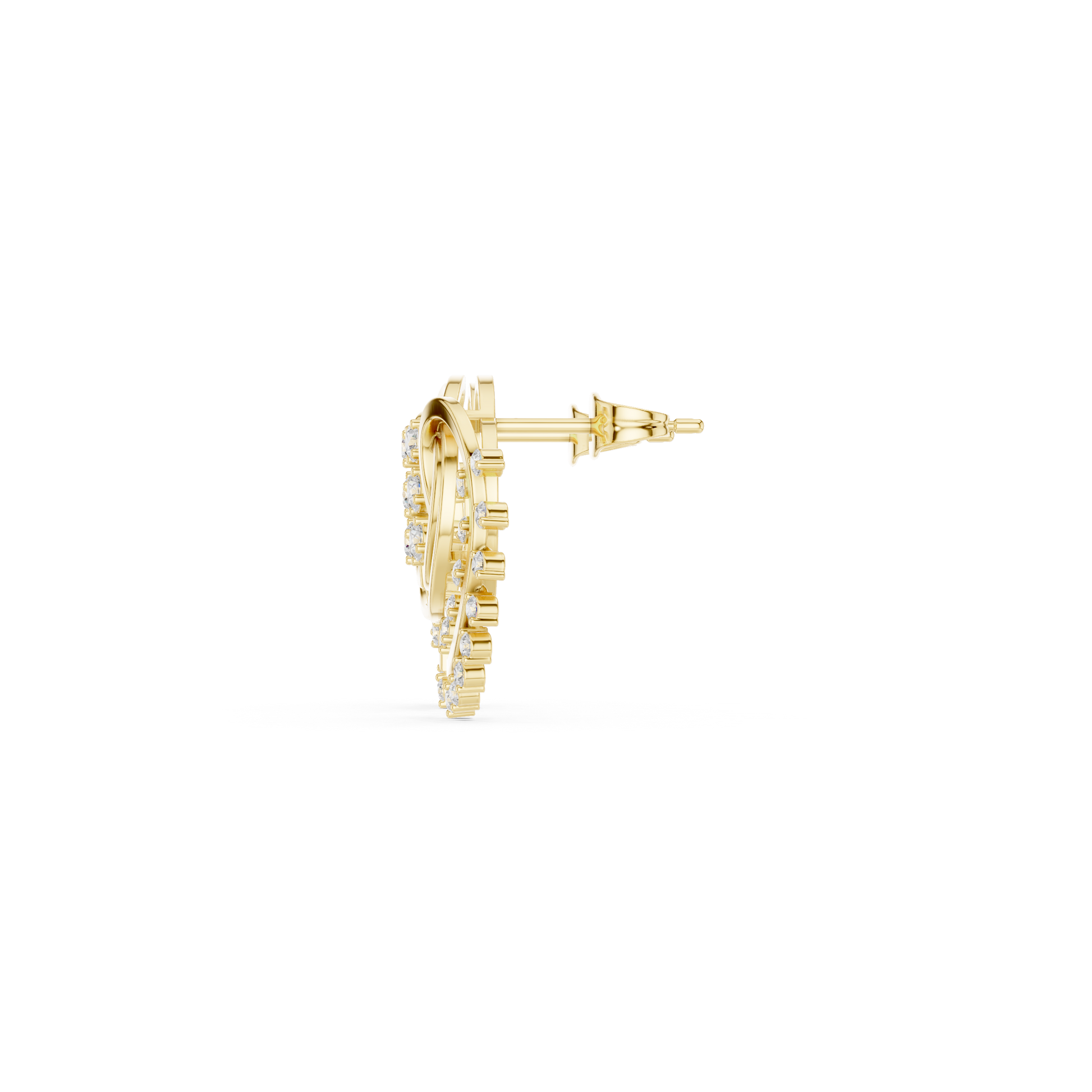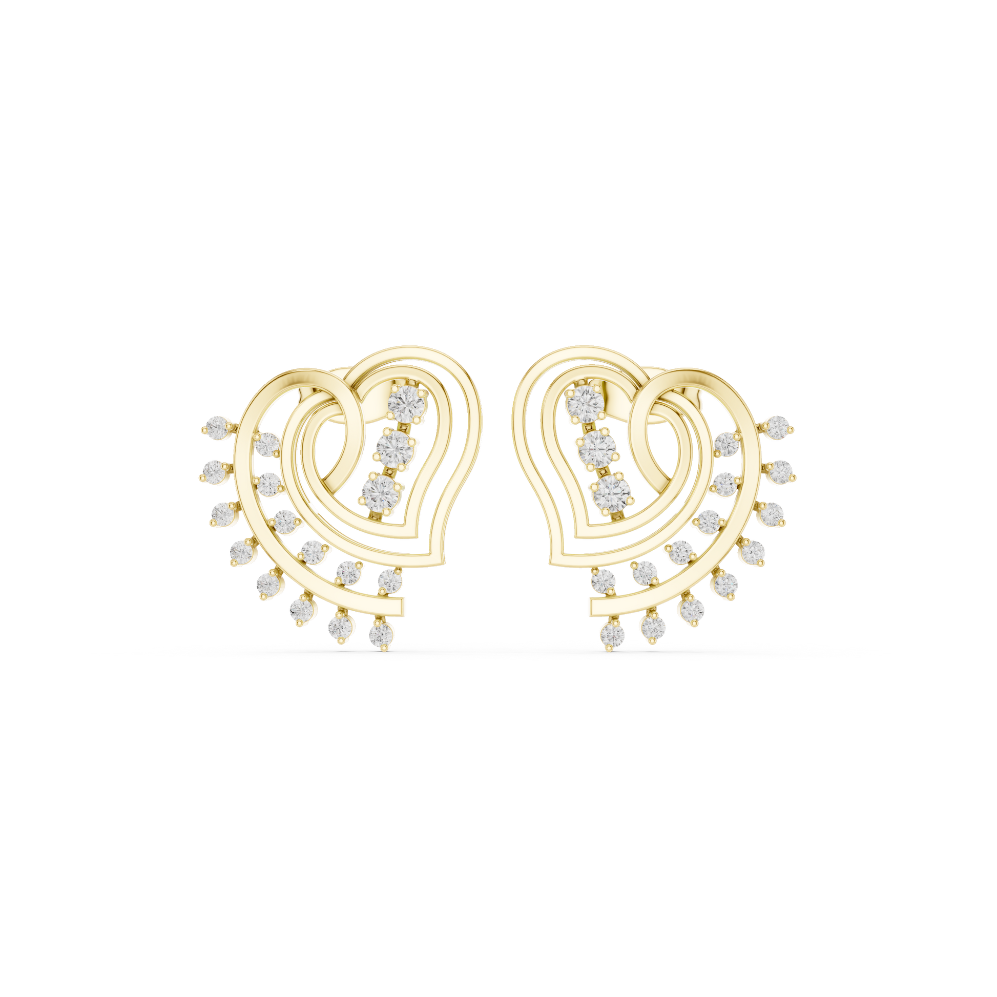 Capture the fluttering feeling of new love with these exquisite Open-Heart Diamond Stud Earrings. Stepping away from the traditional solid heart shape, this design features a sweeping, architectural silhouette that feels light, modern, and undeniably romantic. The outer edge is adorned with "floating" stones that mimic the look of dew drops or a delicate fringe, adding a playful movement to the piece. Whether you are treating yourself or surprising a special someone, these earrings are a timeless symbol of affection re-imagined for the modern woman.
