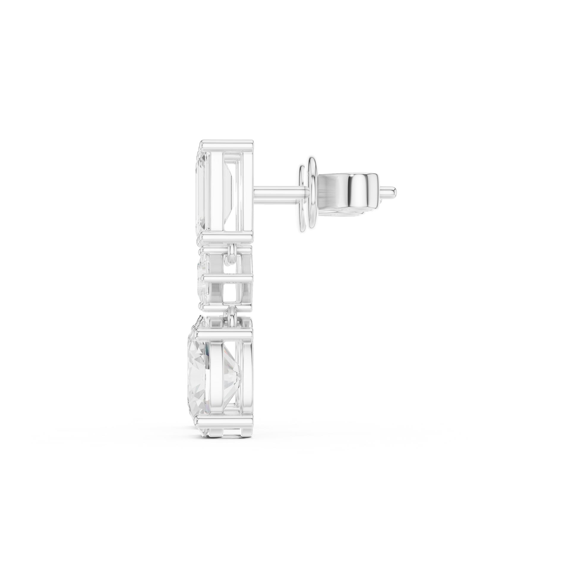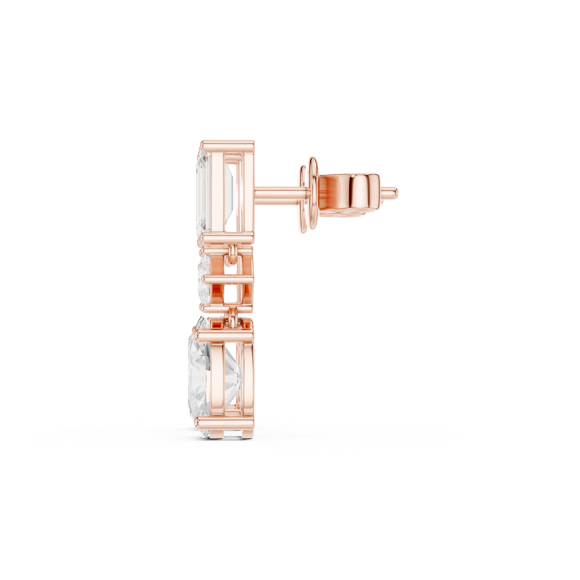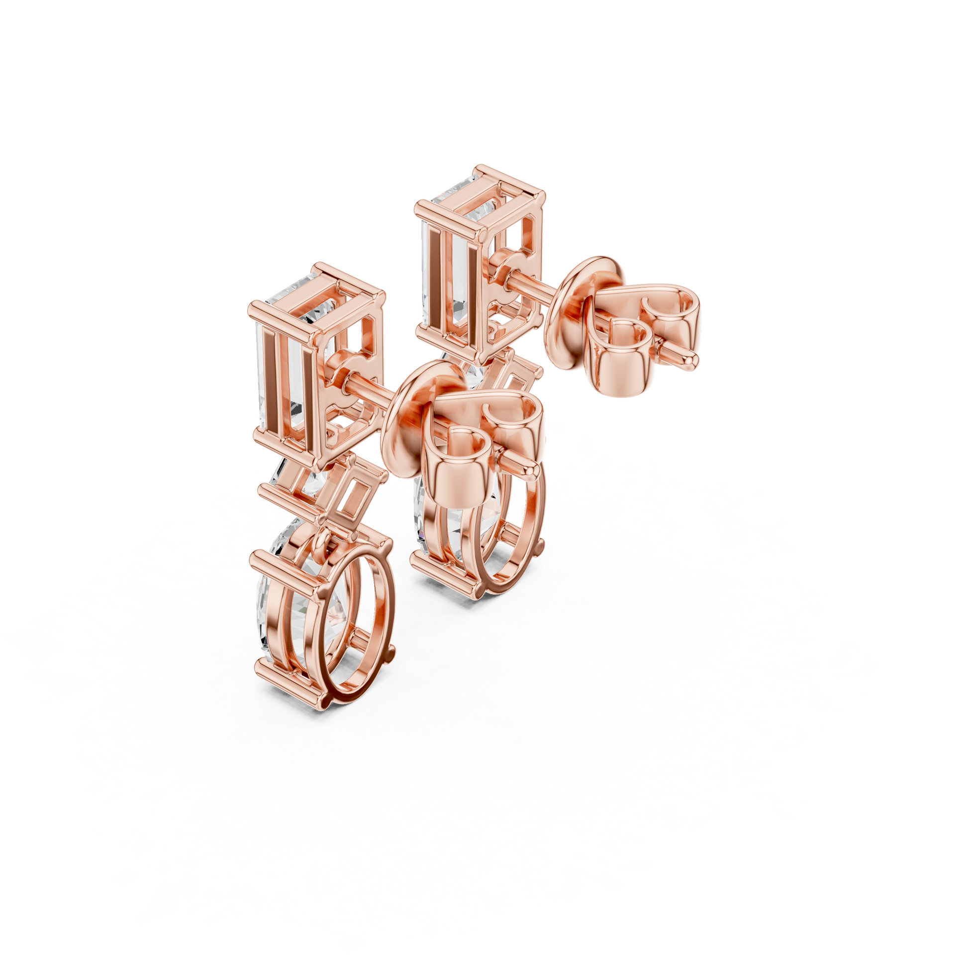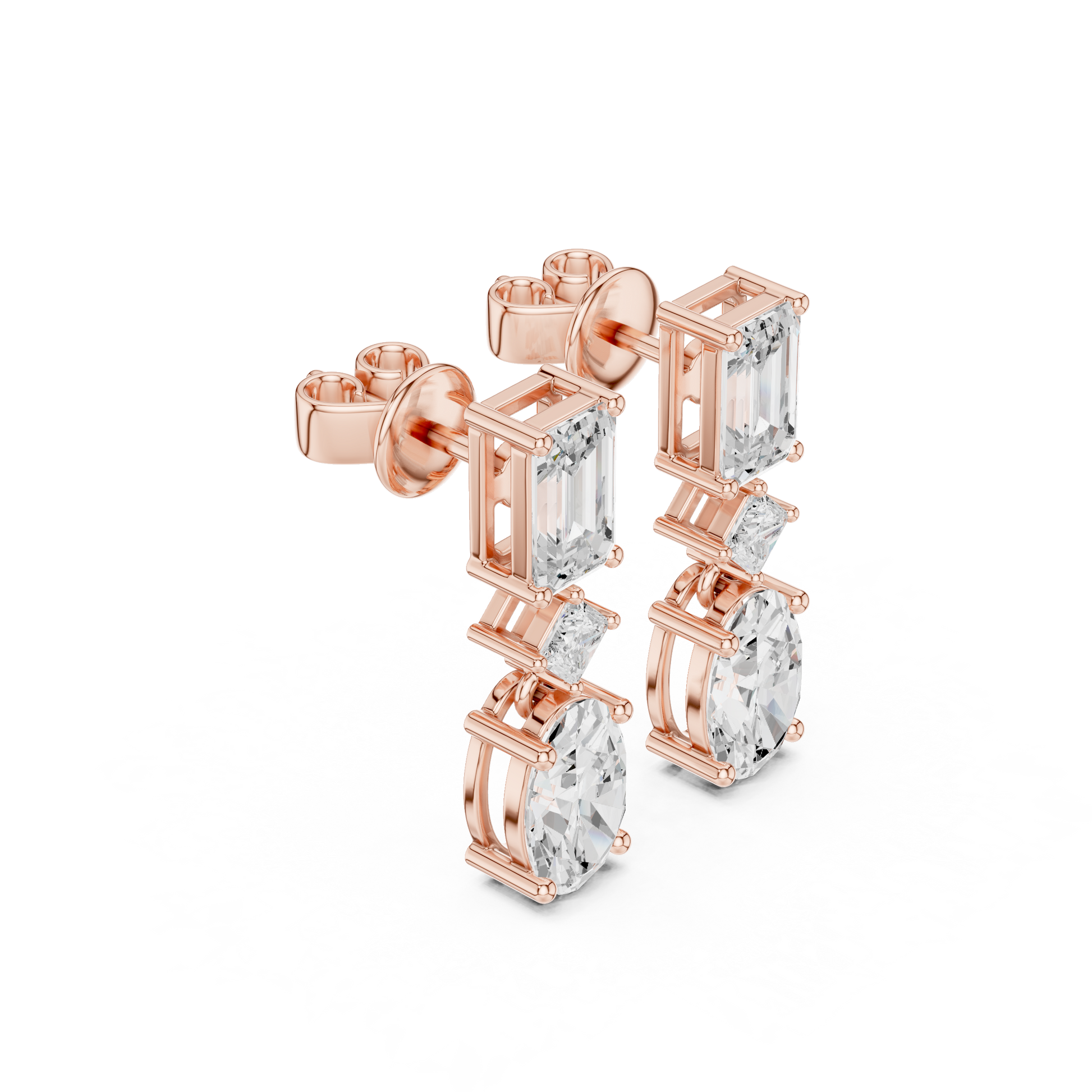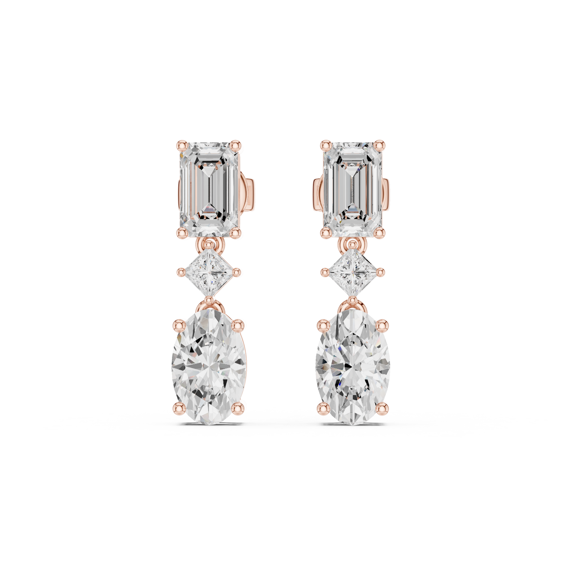 Moissanite Diamond Drop Earrings | Emerald Cut & Oval Cut Luxury Earrings | Emerald Cut Diamond Earrings | Anniversary Gift Silver Rose Plated Jewelry