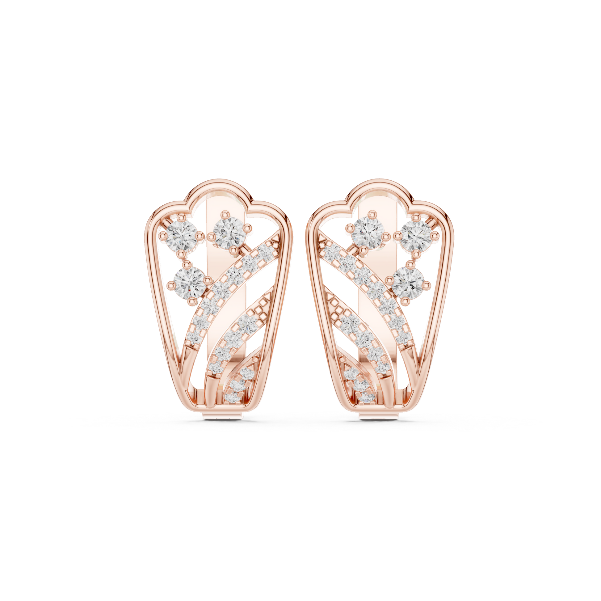 Capture the beauty of a blooming garden with these Floral Trellis Huggie Hoops. Unlike traditional plain hoops, this masterpiece features an intricate "open-work" design reminiscent of climbing ivy on a golden trellis. Three rows of sparkling pave-set stones are interwoven with diagonal gold ribbons and starburst floral clusters. The result is a wide, luxurious earring that allows light to dance through the gaps, creating a look that is both substantial in presence and delicate in detail.