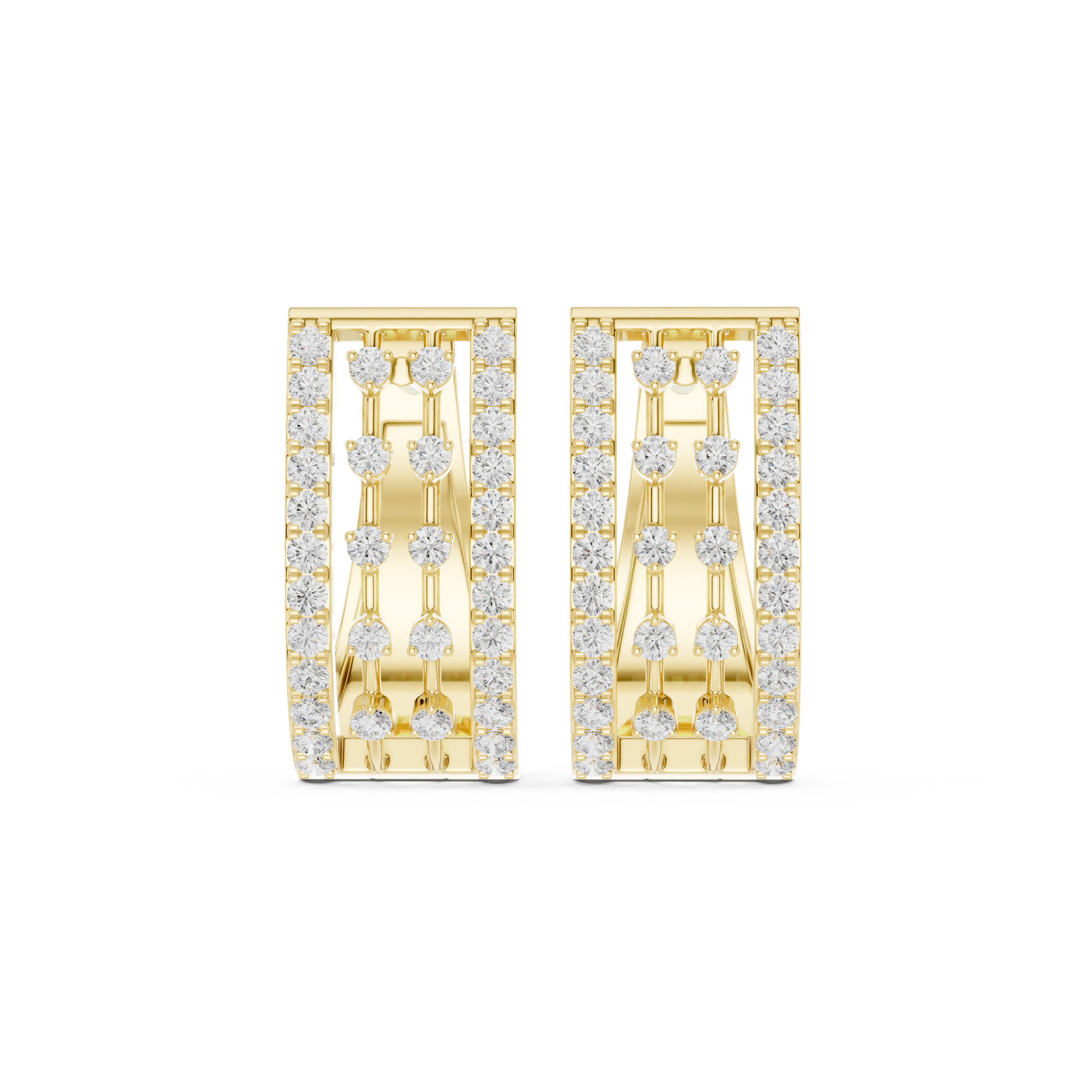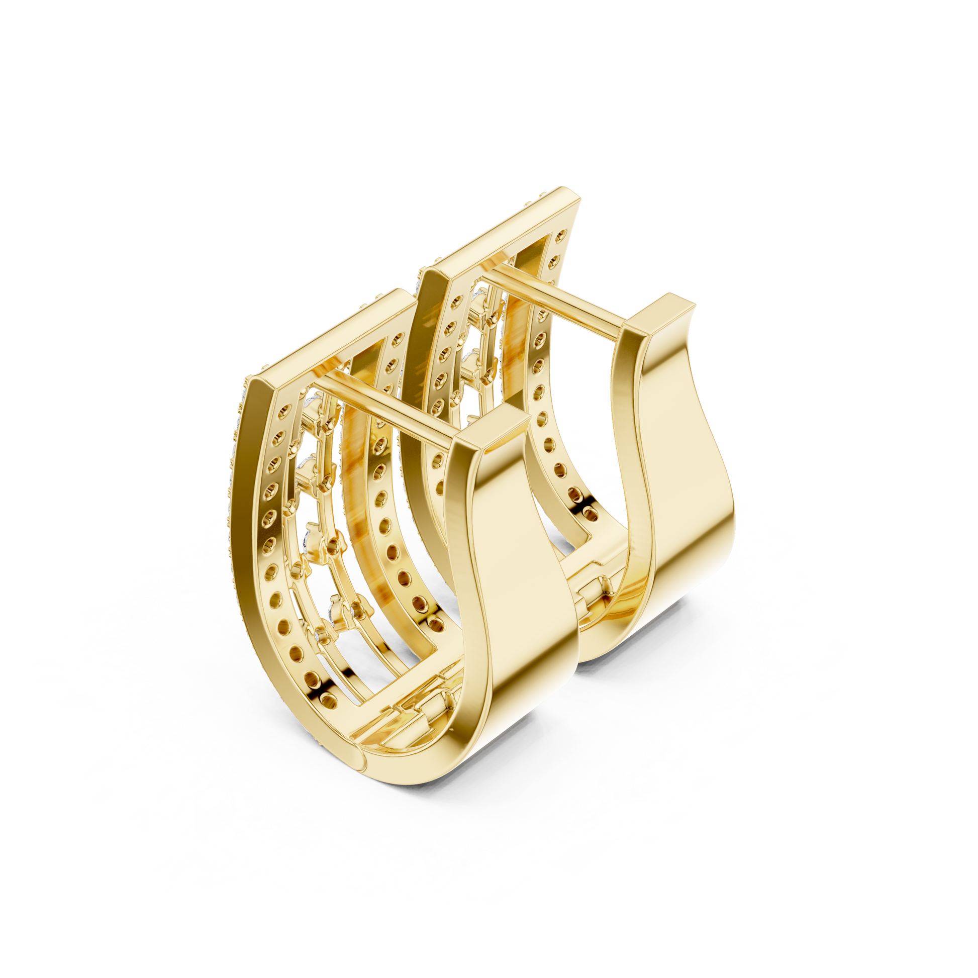 Why settle for one row of sparkle when you can have four? These architectural Wide Huggie Hoops are designed for the modern woman who loves a bold look. Featuring a unique "open-grid" lattice design, these earrings provide the luxurious look of a fully stacked ear with just a single piercing. Sleek, comfortable, and undeniably chic—these are your new everyday power earrings.