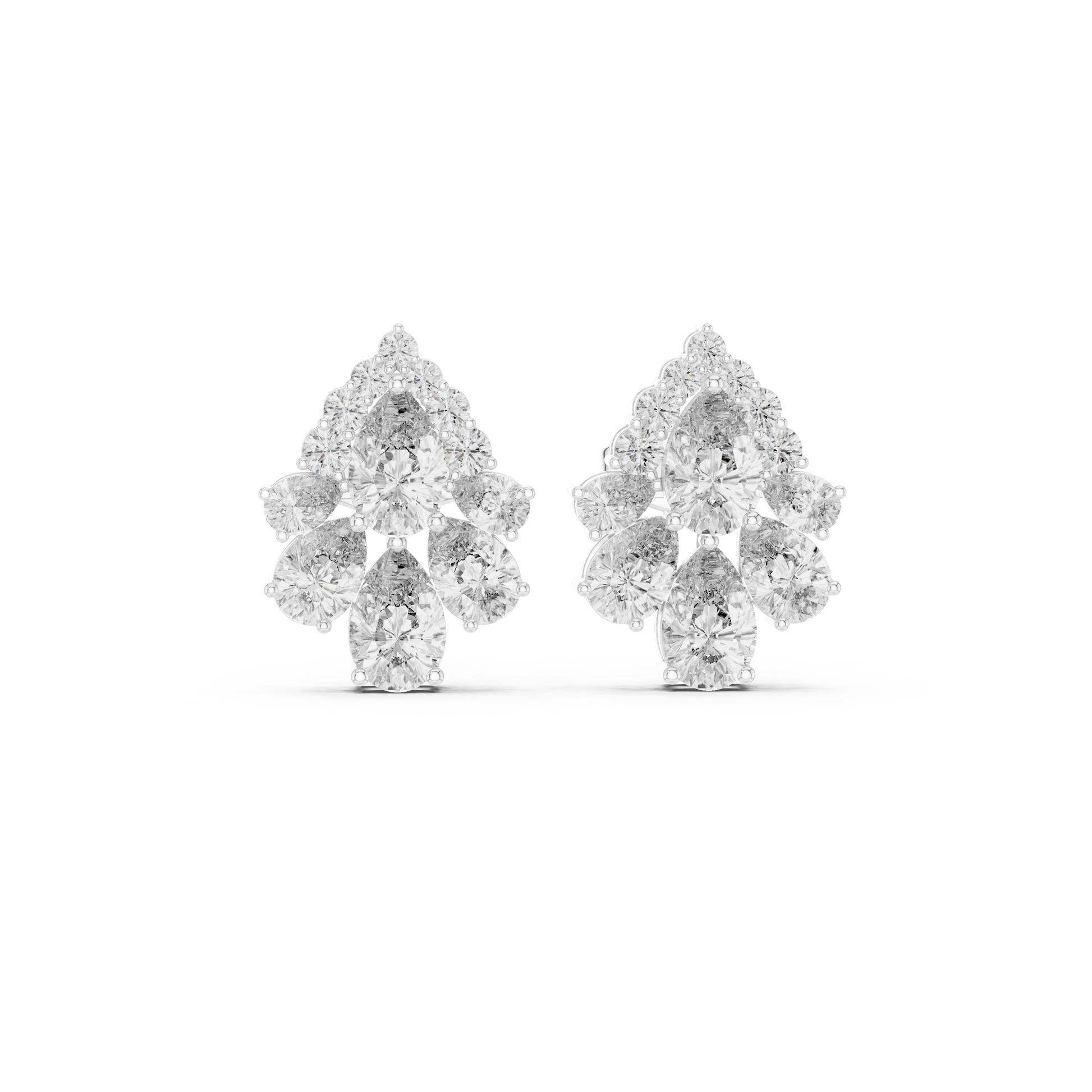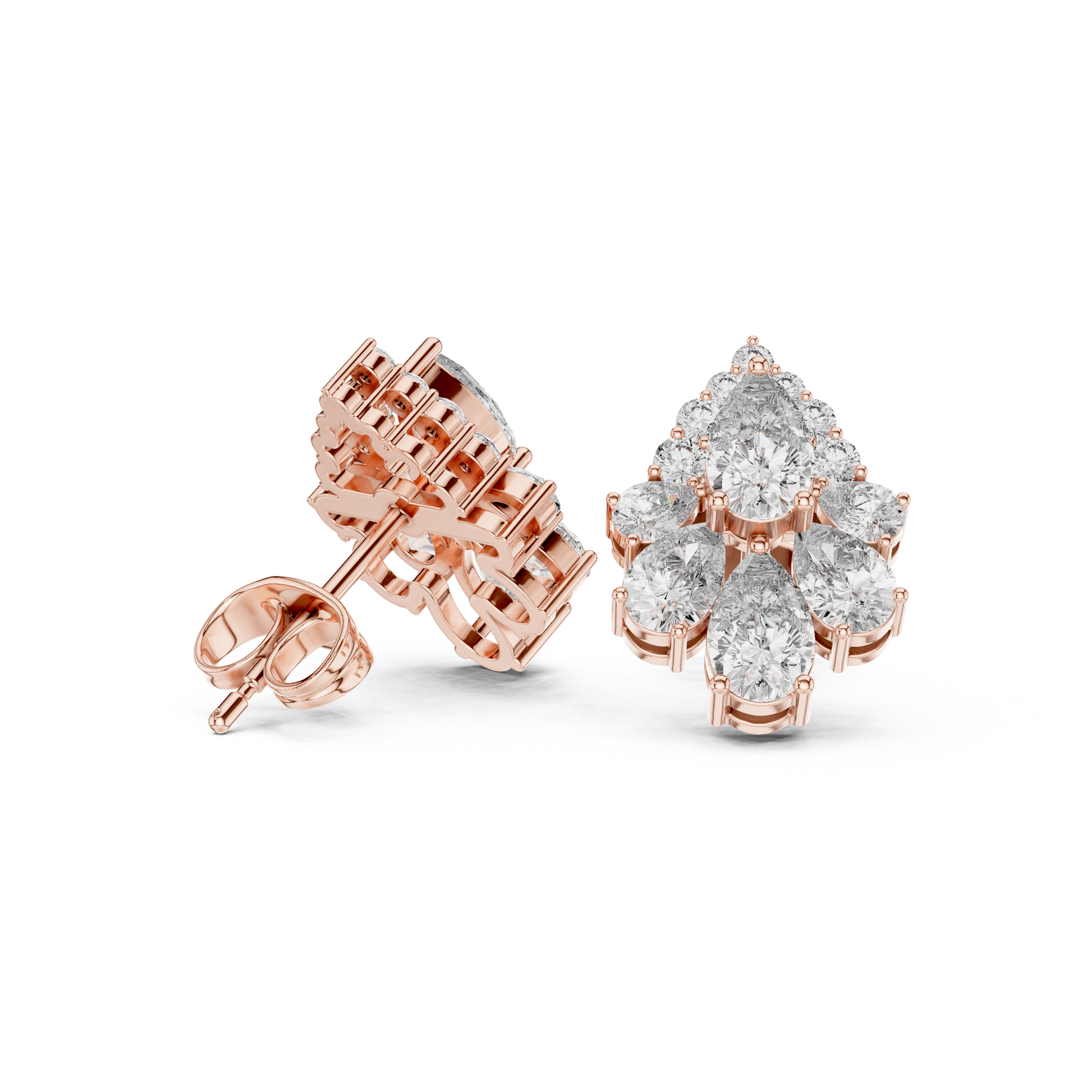 Lyrix Pear-Bloom Diamond Studs • Multi-Stone Radiant Cluster • Opulent Fine Gold Adornments