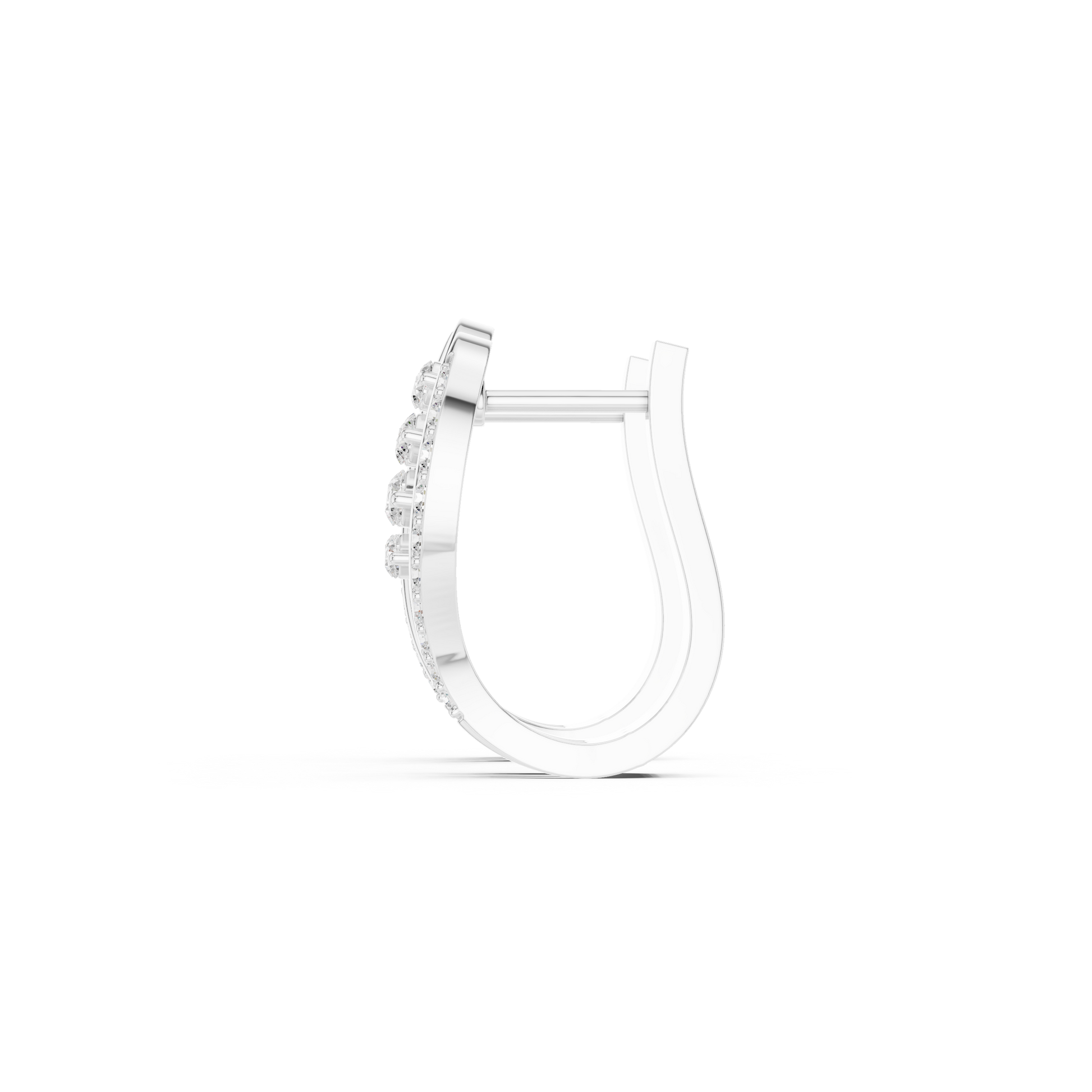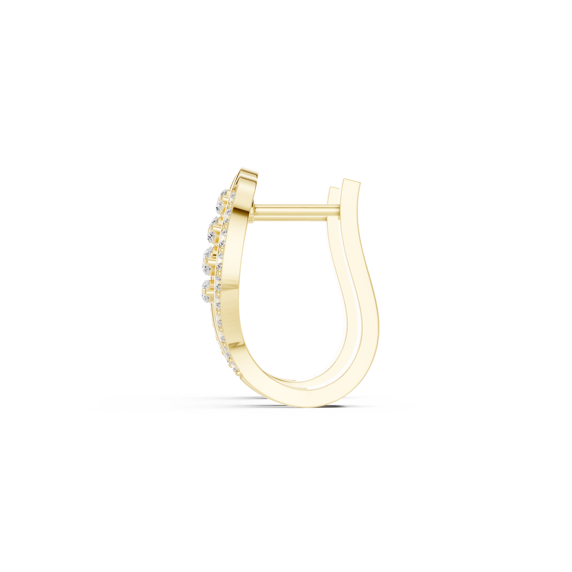 Frame your face with the delicate artistry of these Teardrop Openwork Huggie Hoops. Stepping away from solid, heavy designs, this pair embraces the beauty of "negative space." A glistening rim of diamonds outlines a graceful teardrop window, inside which a brilliant floral cluster appears to float in mid-air. The wide "U-shape" profile gives them a modern edge, while the intricate interior details offer a romantic, vintage charm. These are designed for the woman who wants her jewelry to feel as light as a breeze but look as substantial as a treasure.