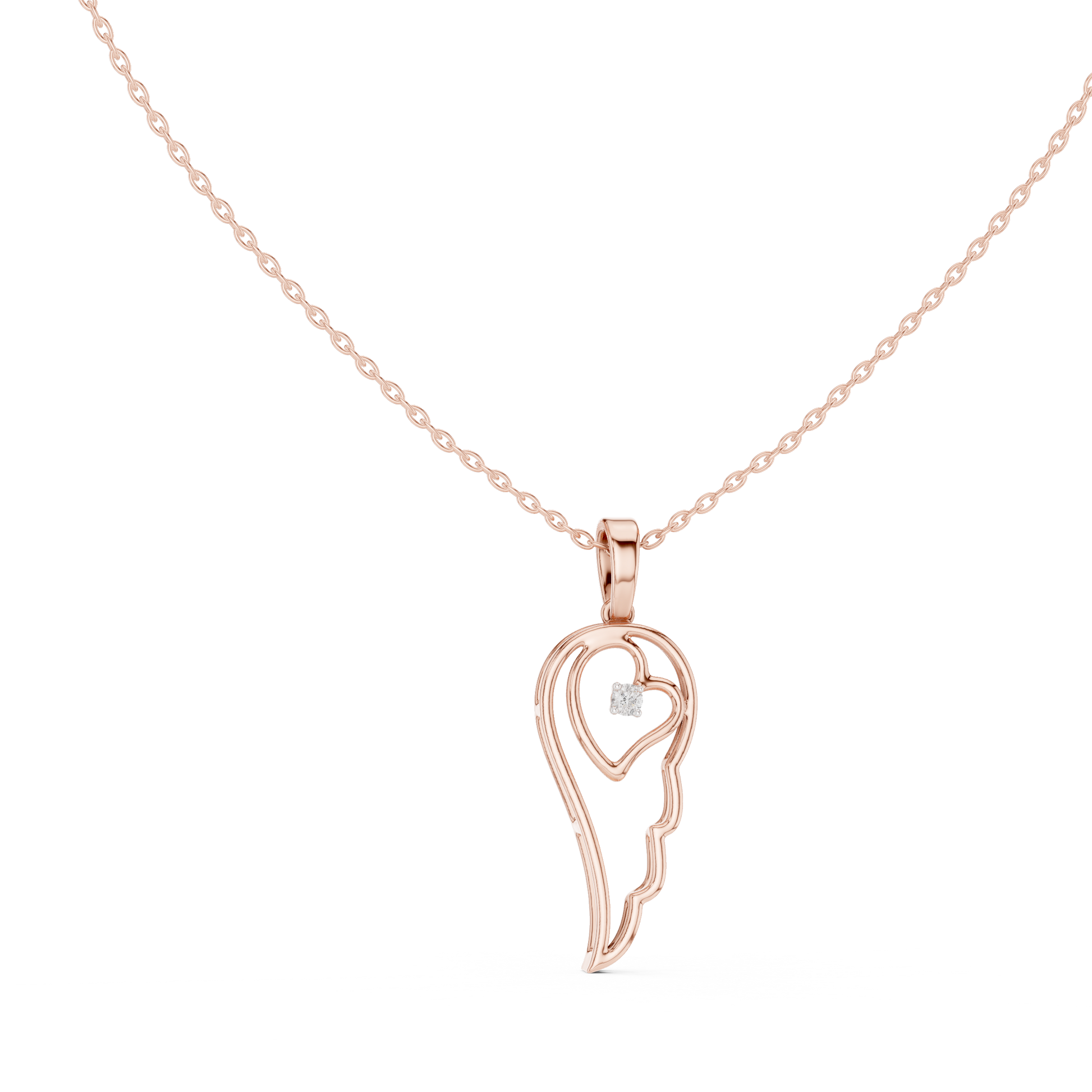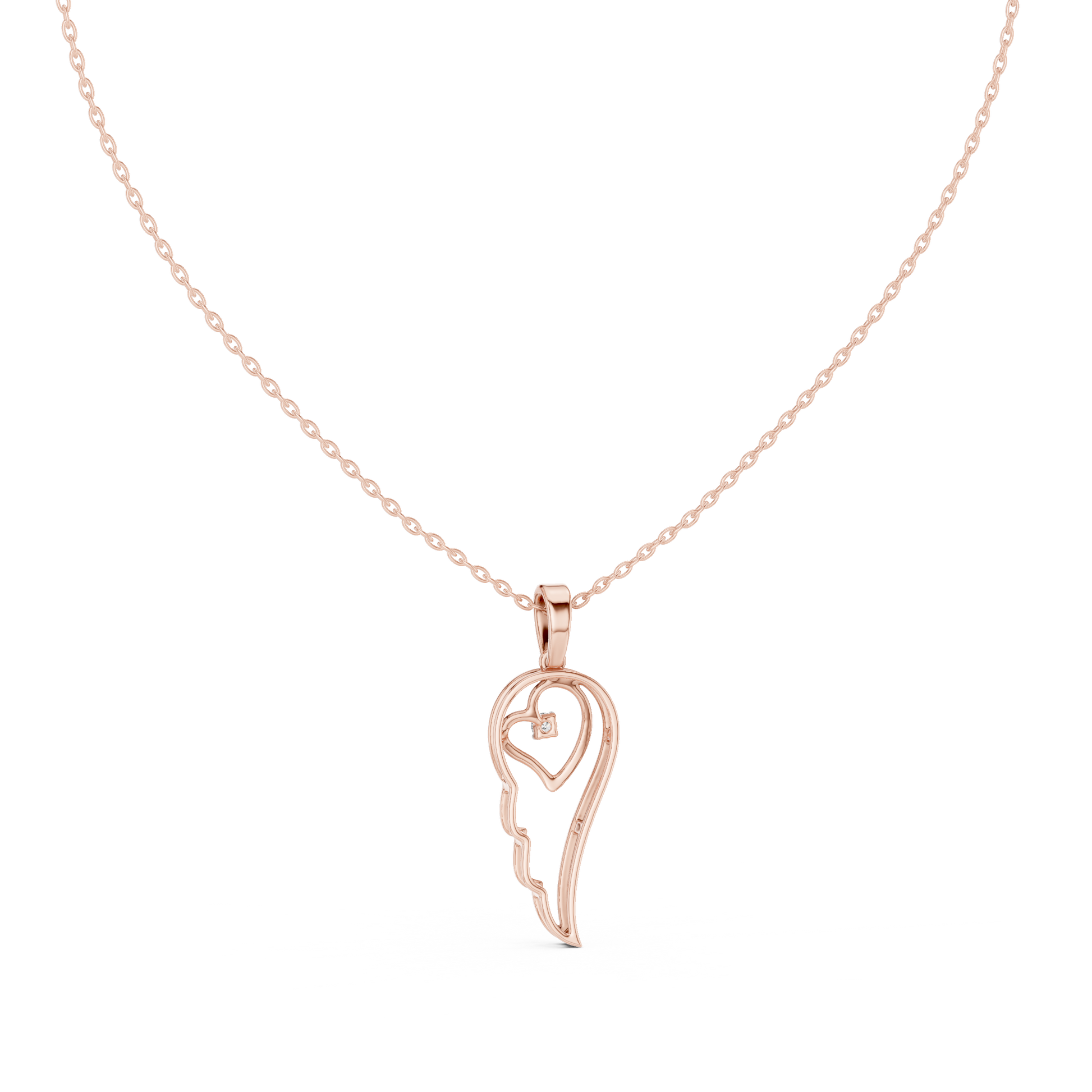 Heart Angel Wing - Diamond Gold Necklace - Romantic Meaningful Jewelry Gift