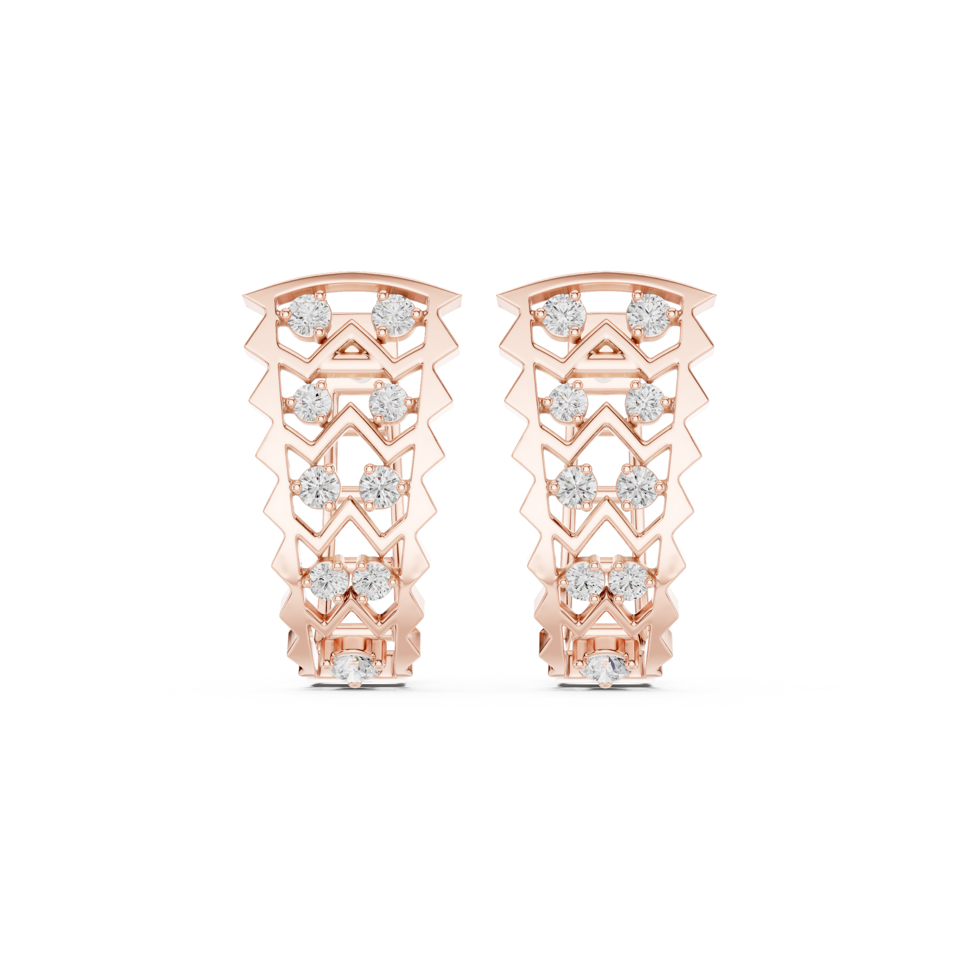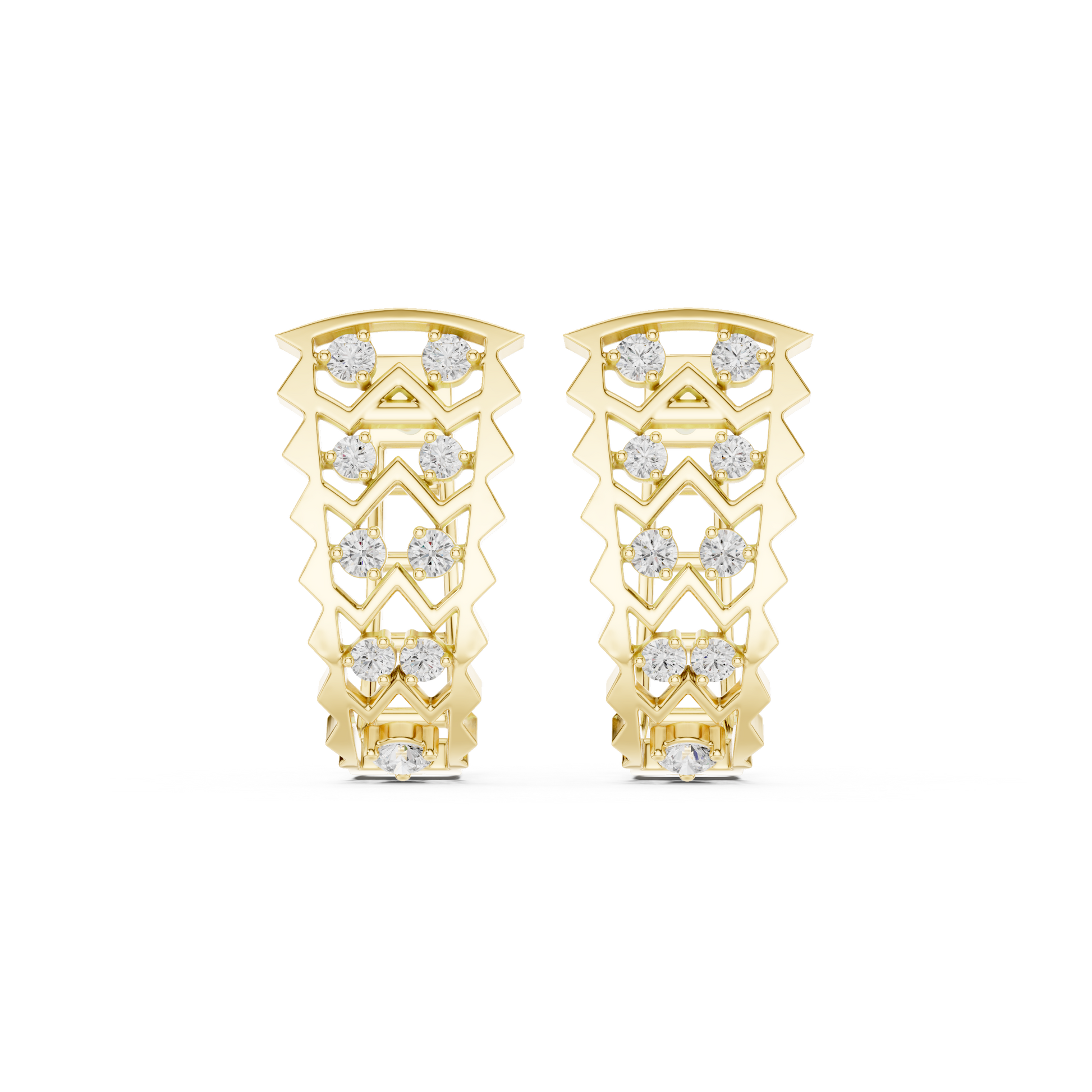 Modern Chevron Diamond Hoop Earrings in 14K Gold | Luxury Zigzag Stack Design