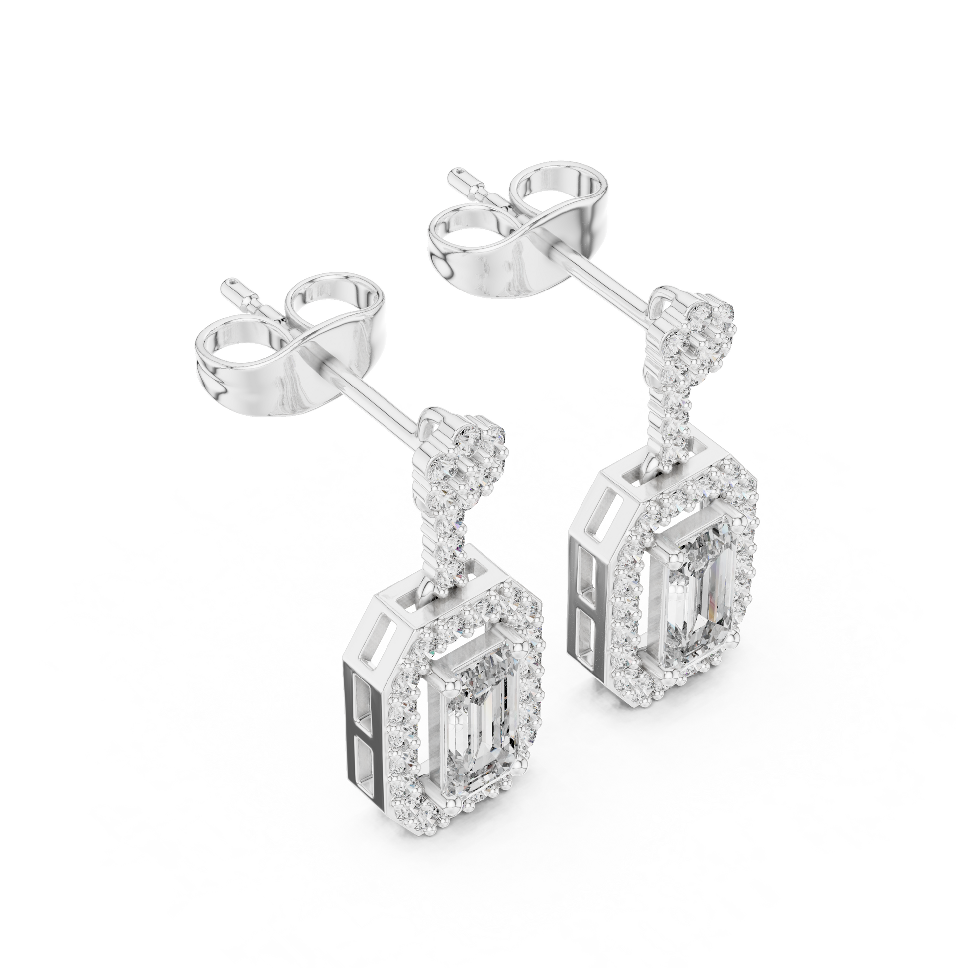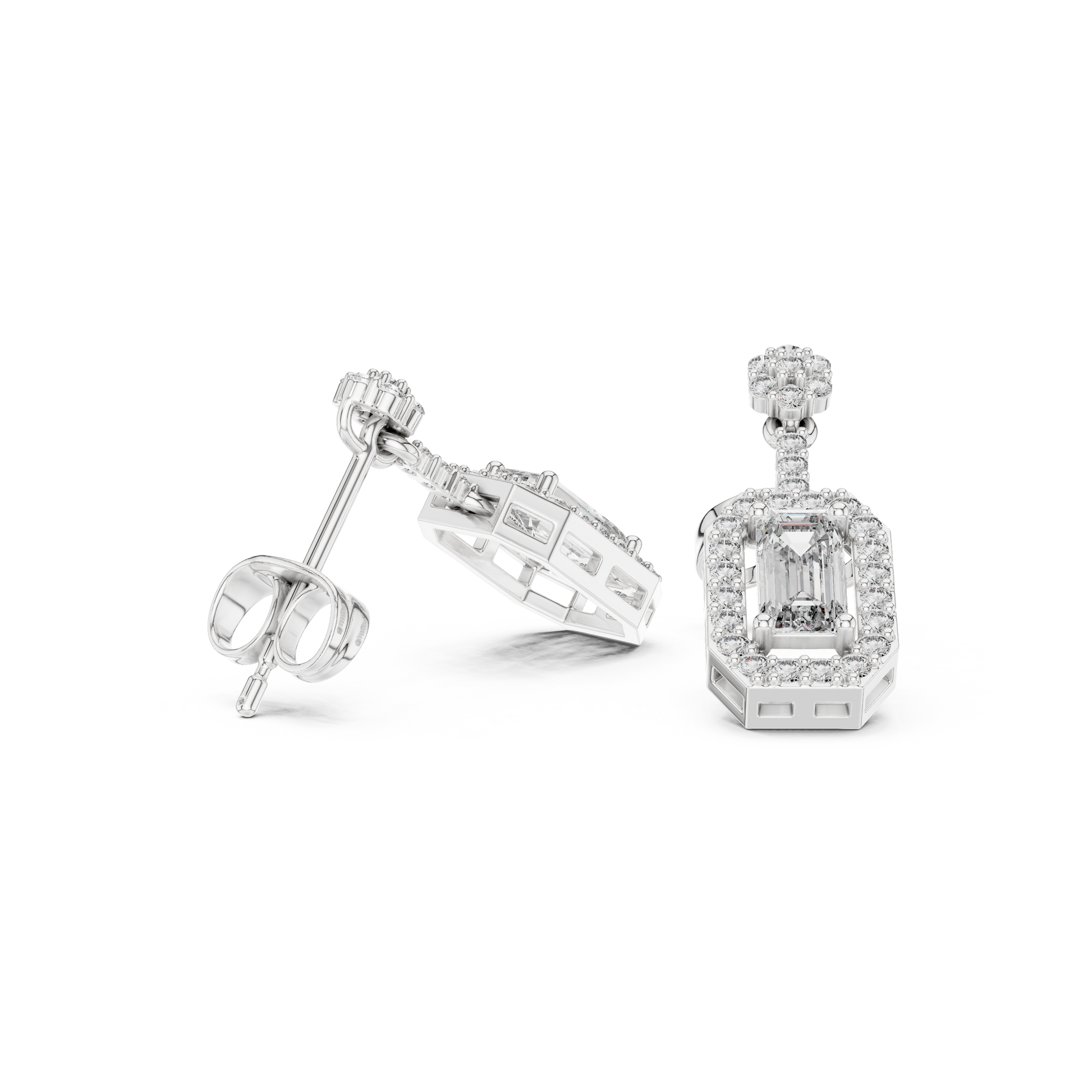 Octagon Halo Emerald Cut Earrings | Dainty Diamond Drop Stud Pair | Everyday Luxury Fine Jewelry