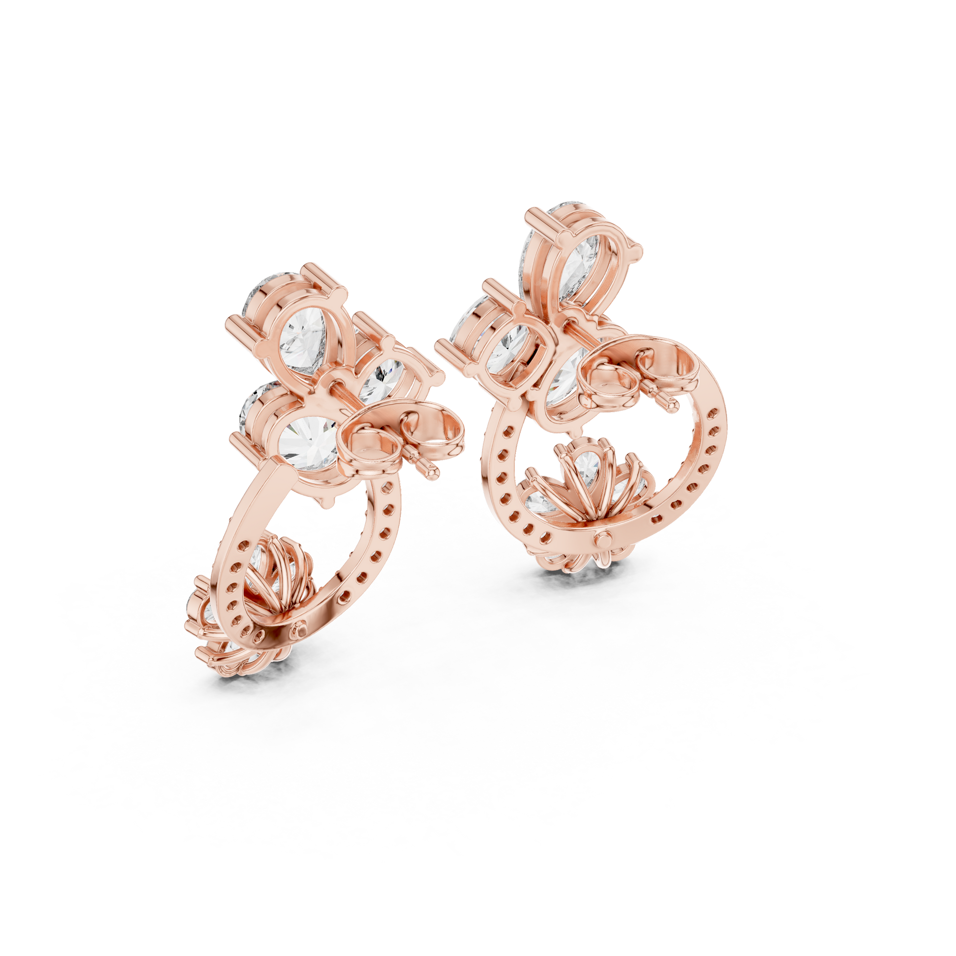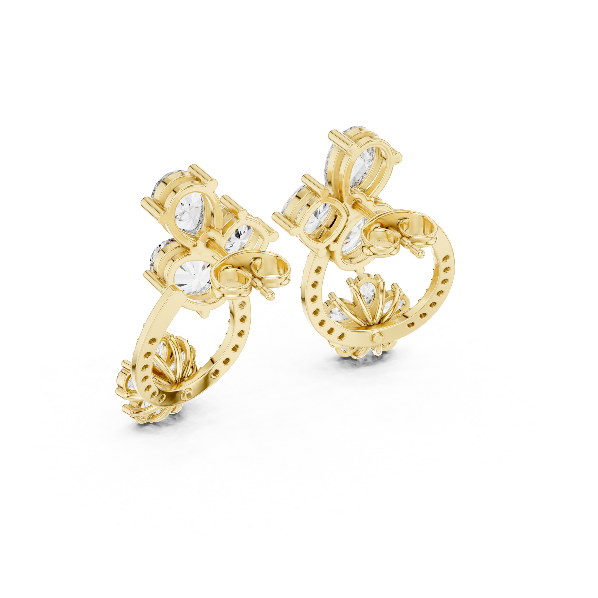 A: The cluster shape provides a wide base against the lobe, creating friction that keeps them upright better than solitaire studs.