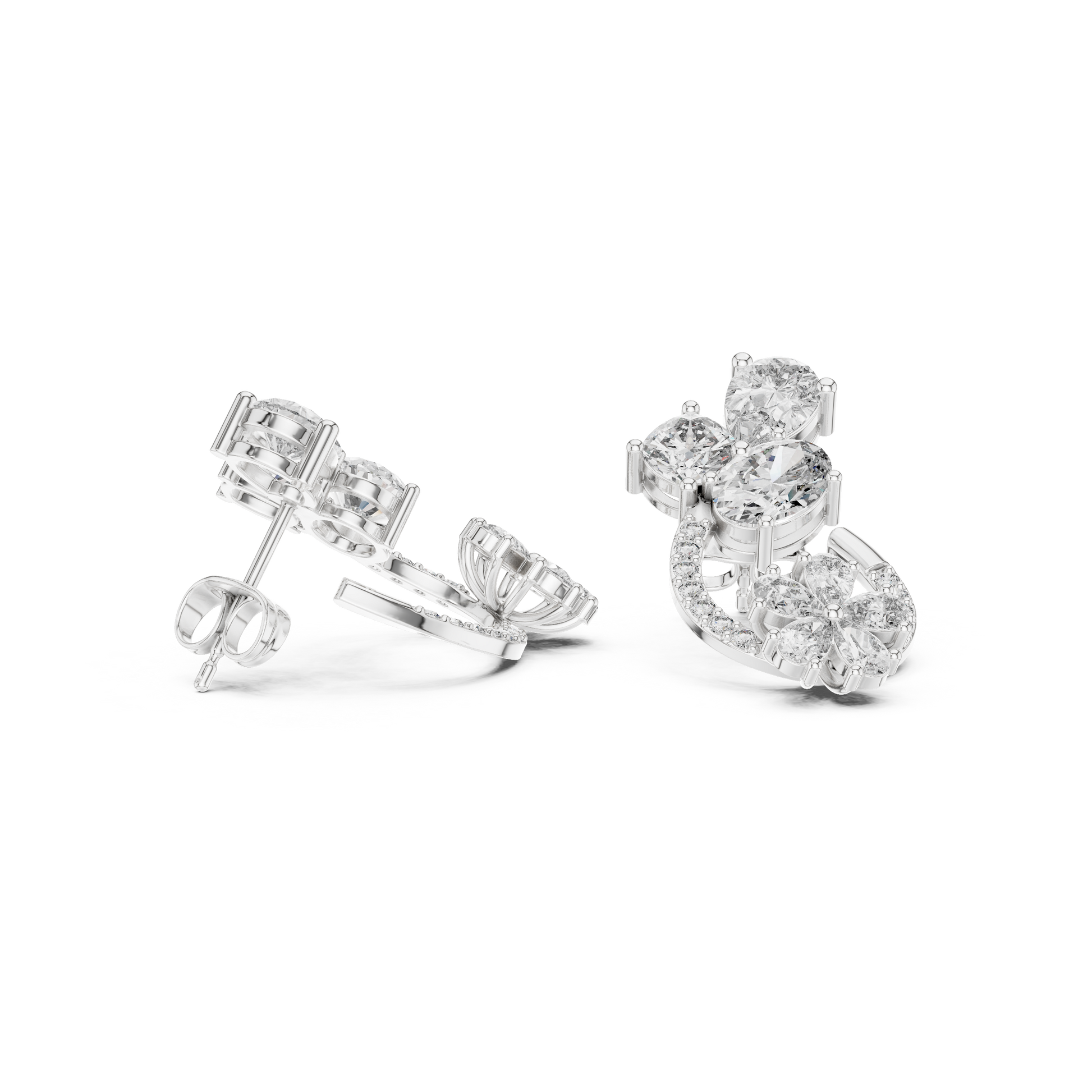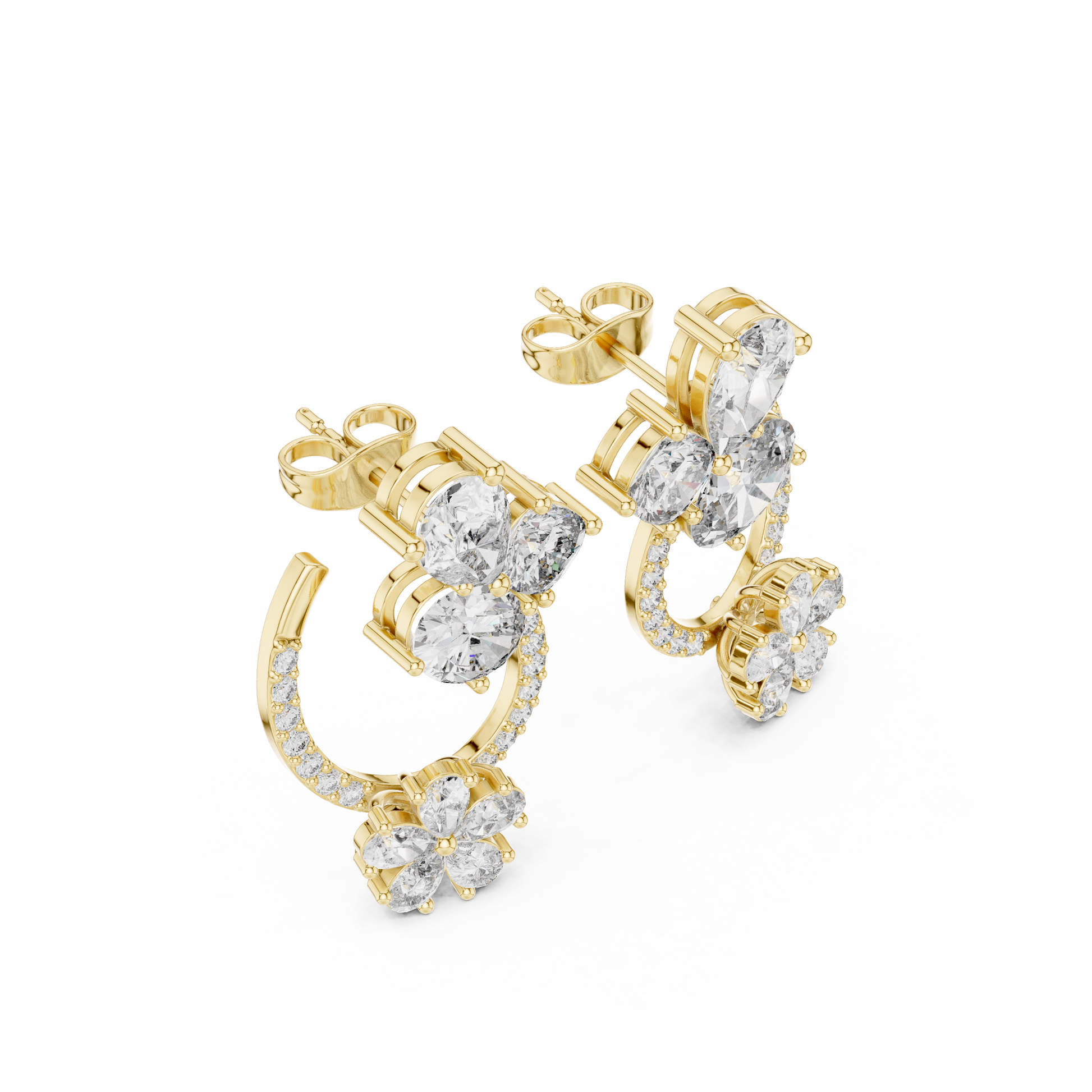 Opaline Bloom Cluster Hoops • Brilliant-Cut Diamond Floral Studs • Luxe Minimal Earrings