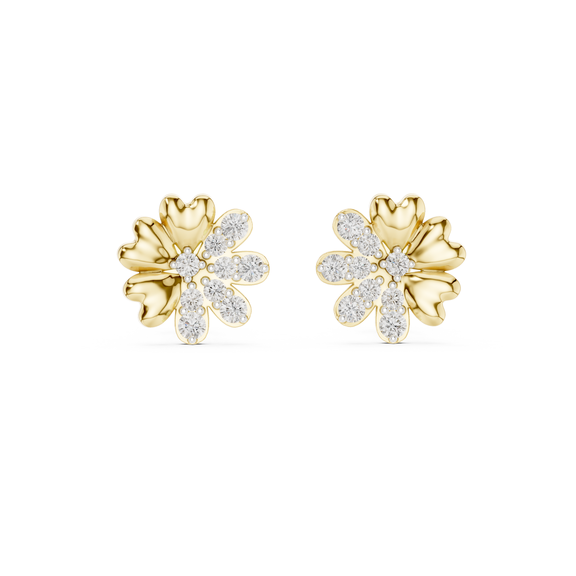✧ Earring Type: Sunlit Garden: Lucky Clover Diamond Earrings • Gold Heart Petal Flower Studs • Minimalist Pave Jewelry • Romantic Anniversary Gift • Good Luck Charm
