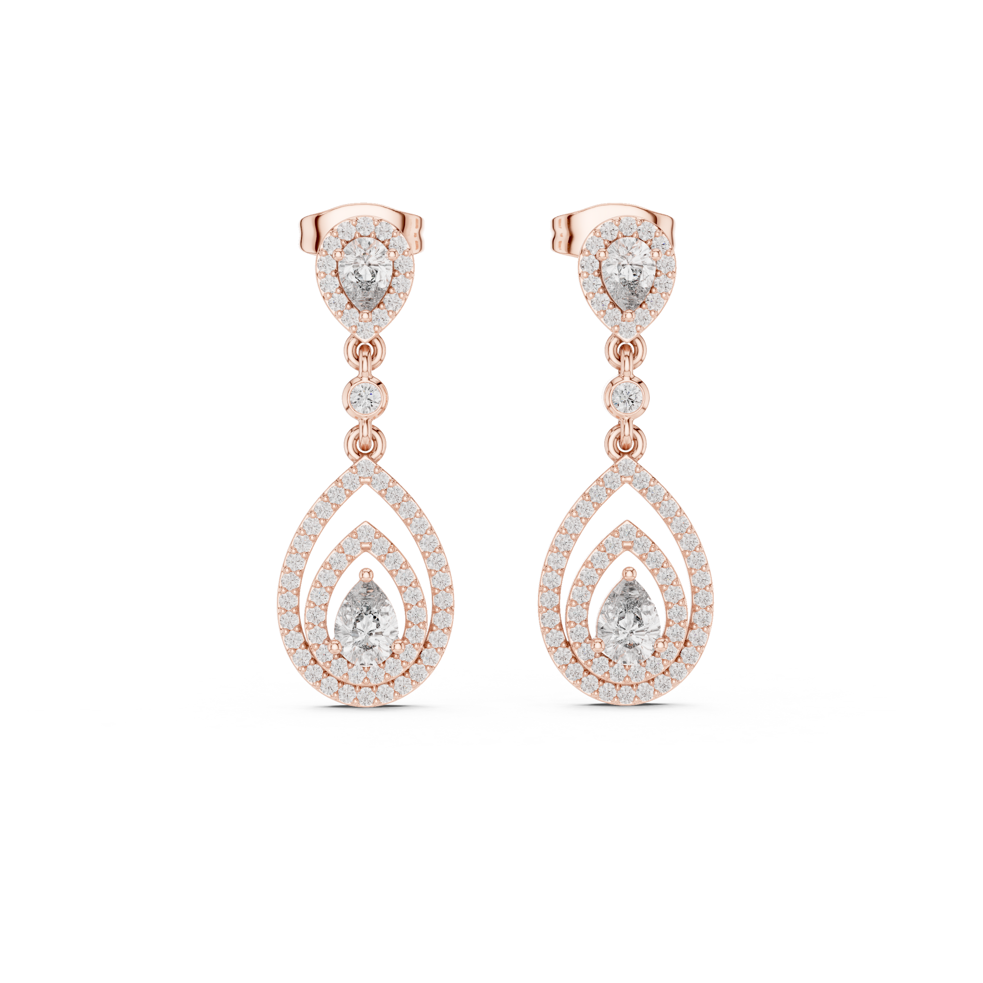 ✧ Earring Type: Pear Cut Diamond Drop Earrings • Art Deco Bridal Earrings • Rose Gold Dangle Earrings • Teardrop Halo Wedding Jewelry