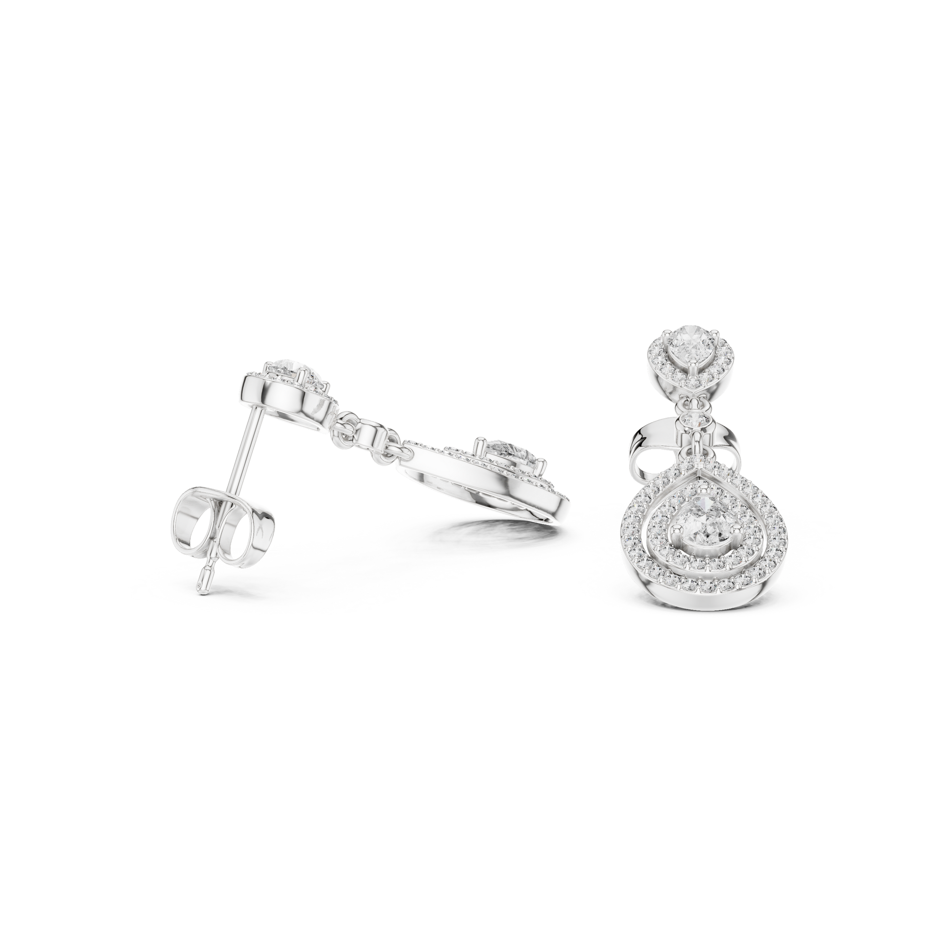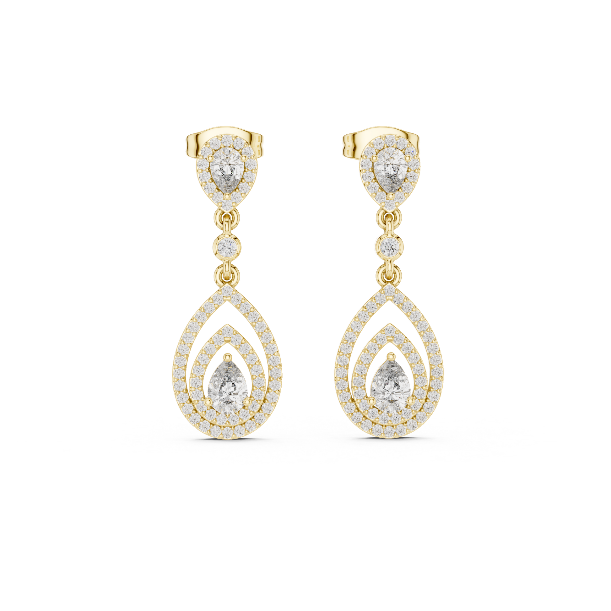 Opulent Halo-Framed Pear Diamond Dangles • Sculpted Luxury Earrings • Elegant Gift for Her