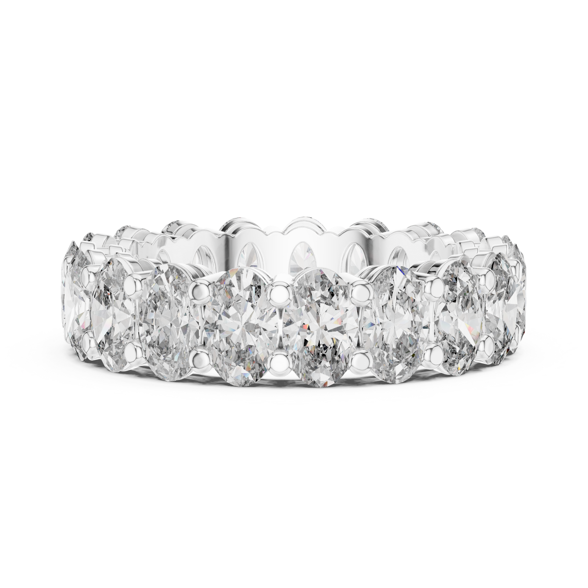 Wrap your finger in a ribbon of pure light. This Oval Cut Full Eternity Band is the definition of "show-stopper." Featuring hand-selected, premium oval-cut Moissanite stones that encircle the entire band, this ring offers 360 degrees of uninterrupted brilliance. There is no "back" to this ring—no matter how it spins, it sparkles.