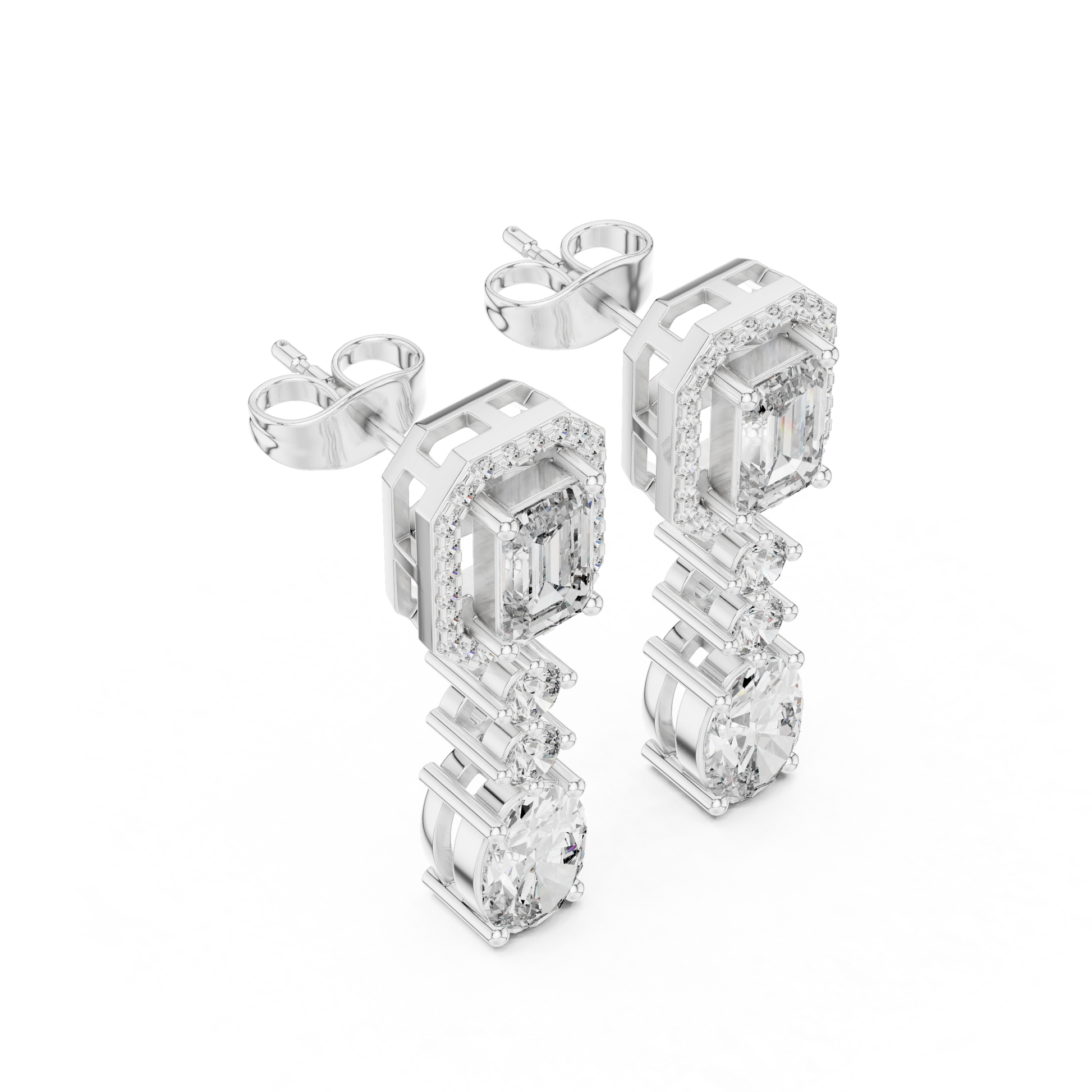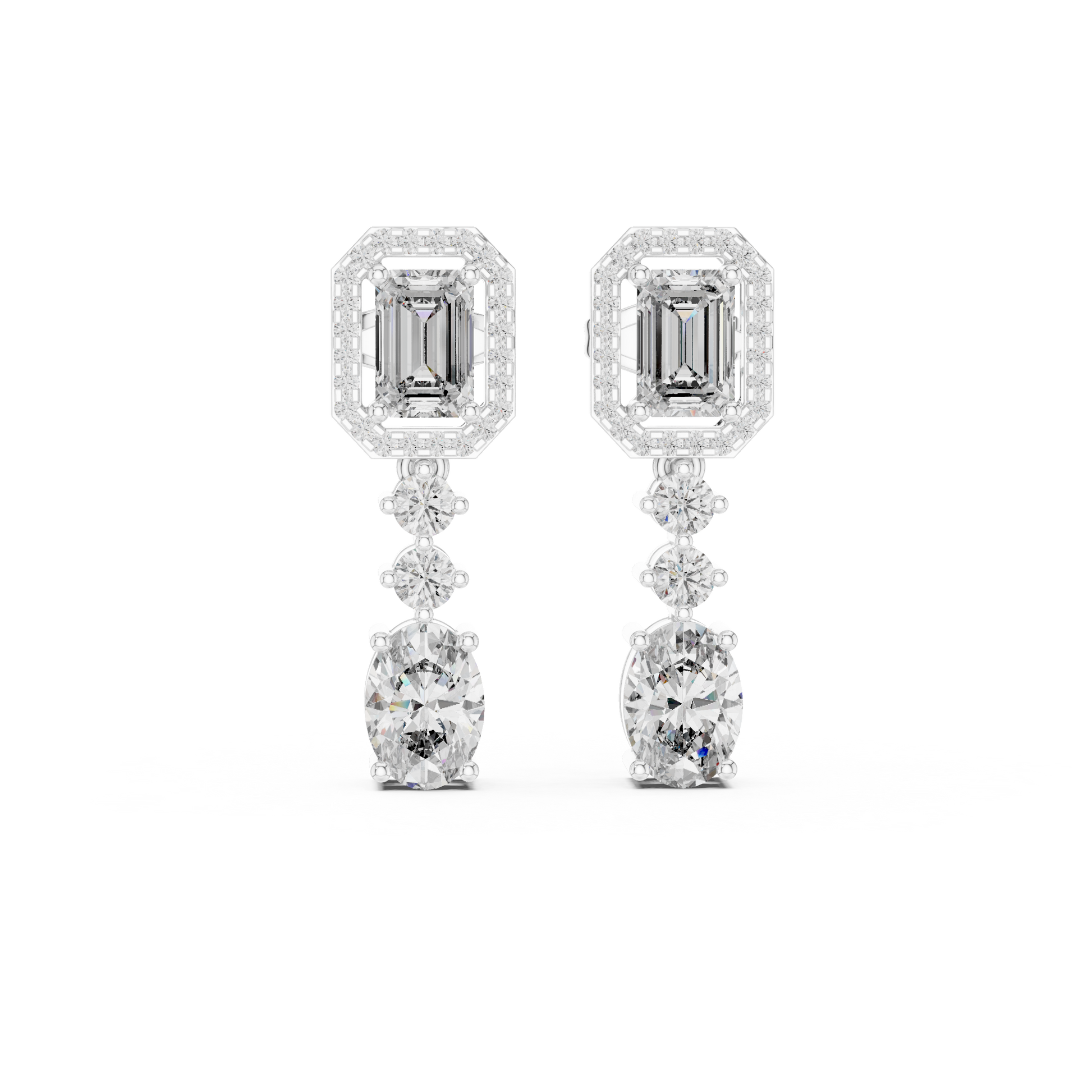 Singular Creation Emerald Cut Diamond Dangle Earrings - Finite Edition Emerald Cut Diamond Drop Earrings - Emerald Cut Diamond Drop Earrings with Oval Dangle – Luxury Bridal Statement Earrings
